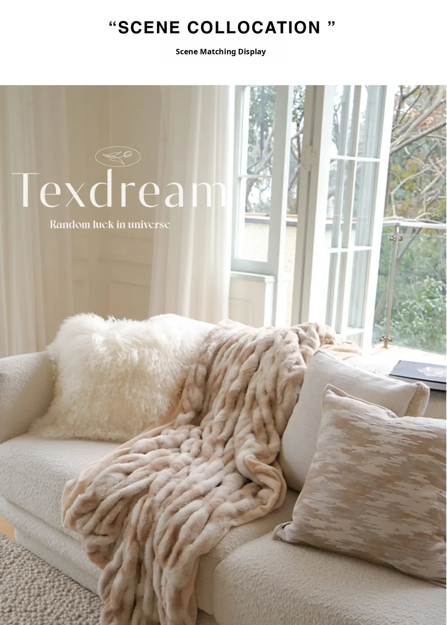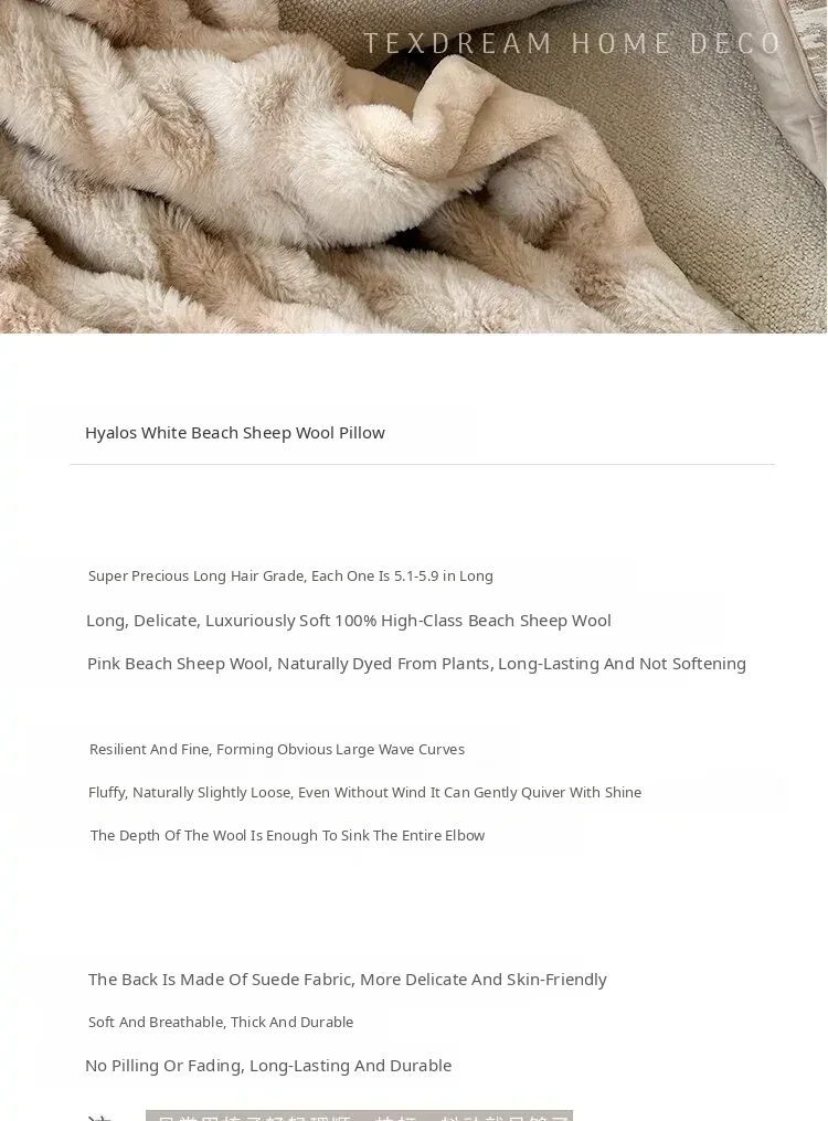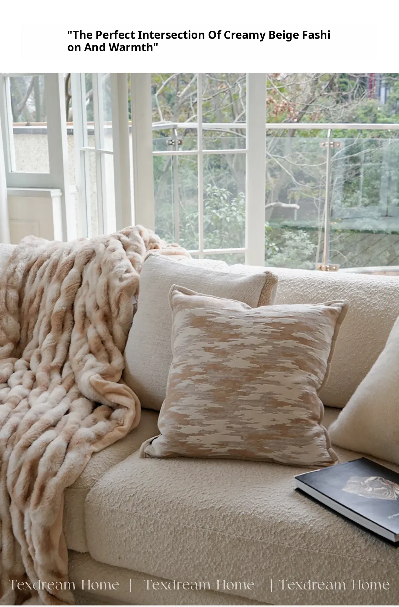 Texdream Attitude Cream Beige Faux Fur Throw Pillow – Modern Minimalist Luxury Accent Cushion for Sofa and Living Room