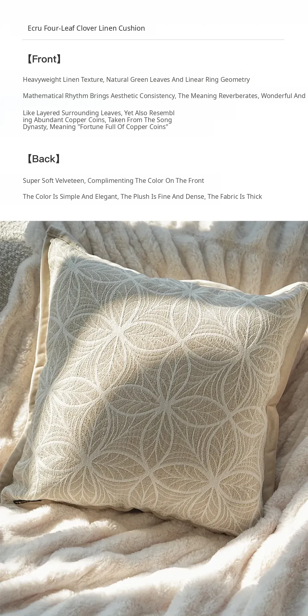 【Ecru L Four-Leaf Clover Linen Pillow】