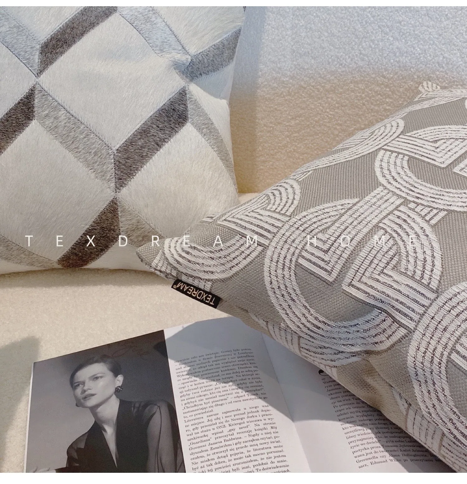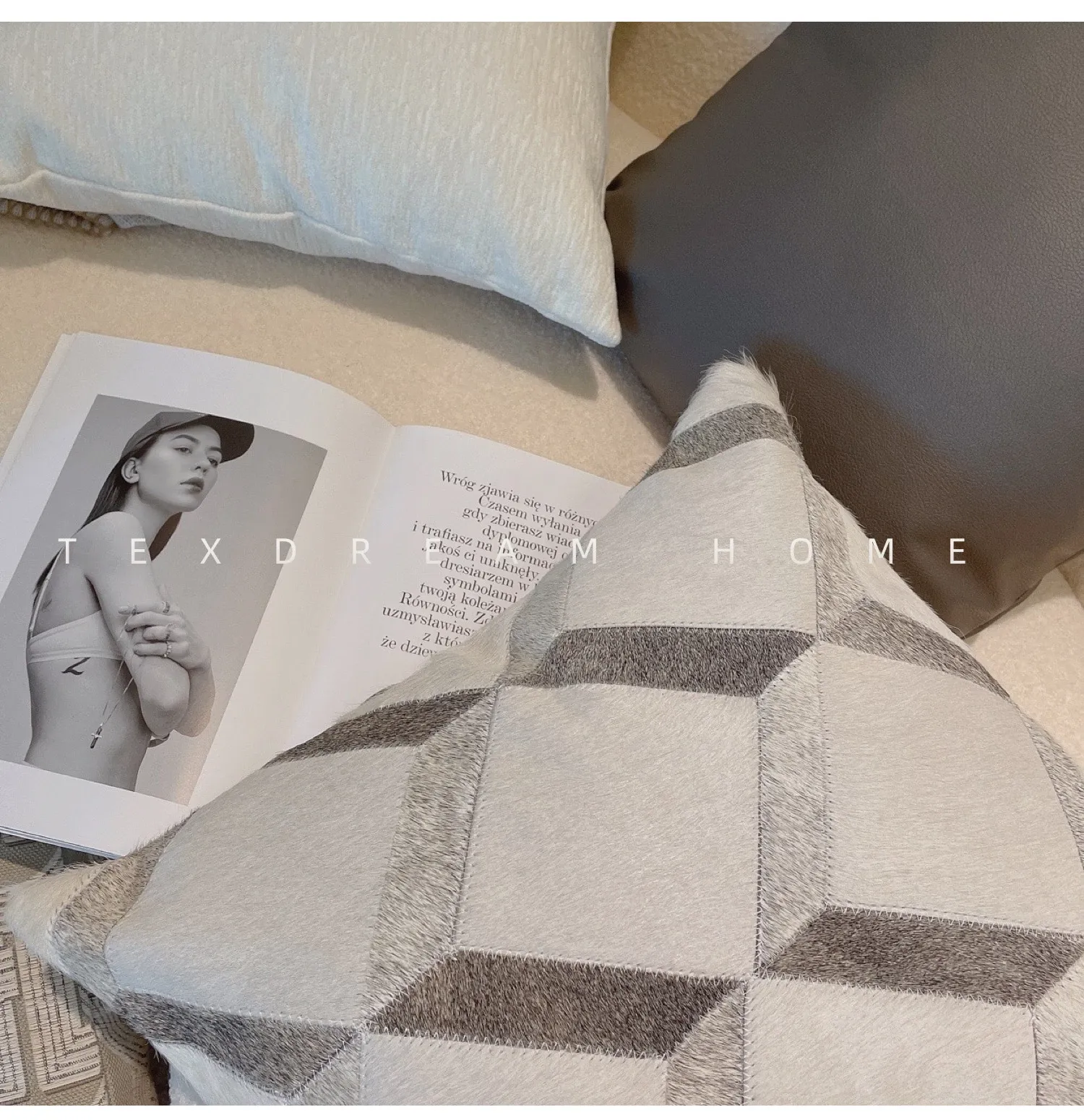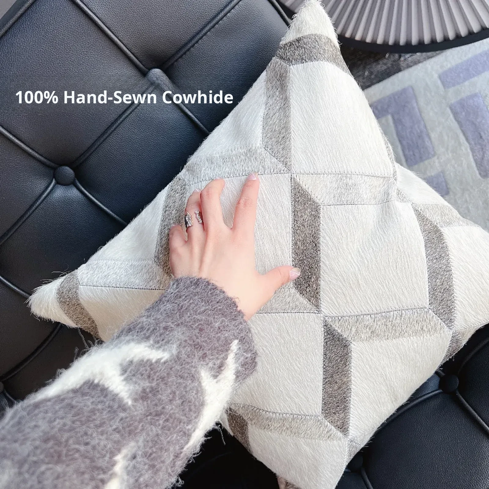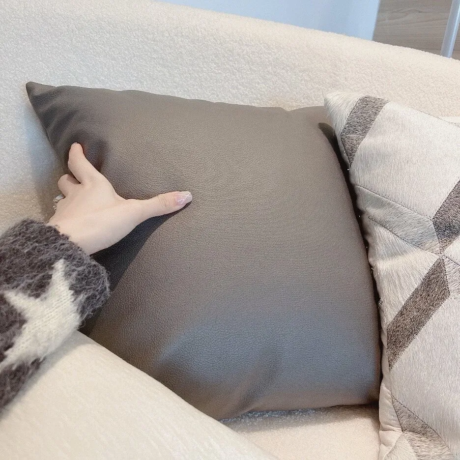 Texdream Attitude Creamy Snowtop Gray Luxury Genuine Leather Throw Pillow - Modern Sofa Cushion Cover for Stylish Living Rooms