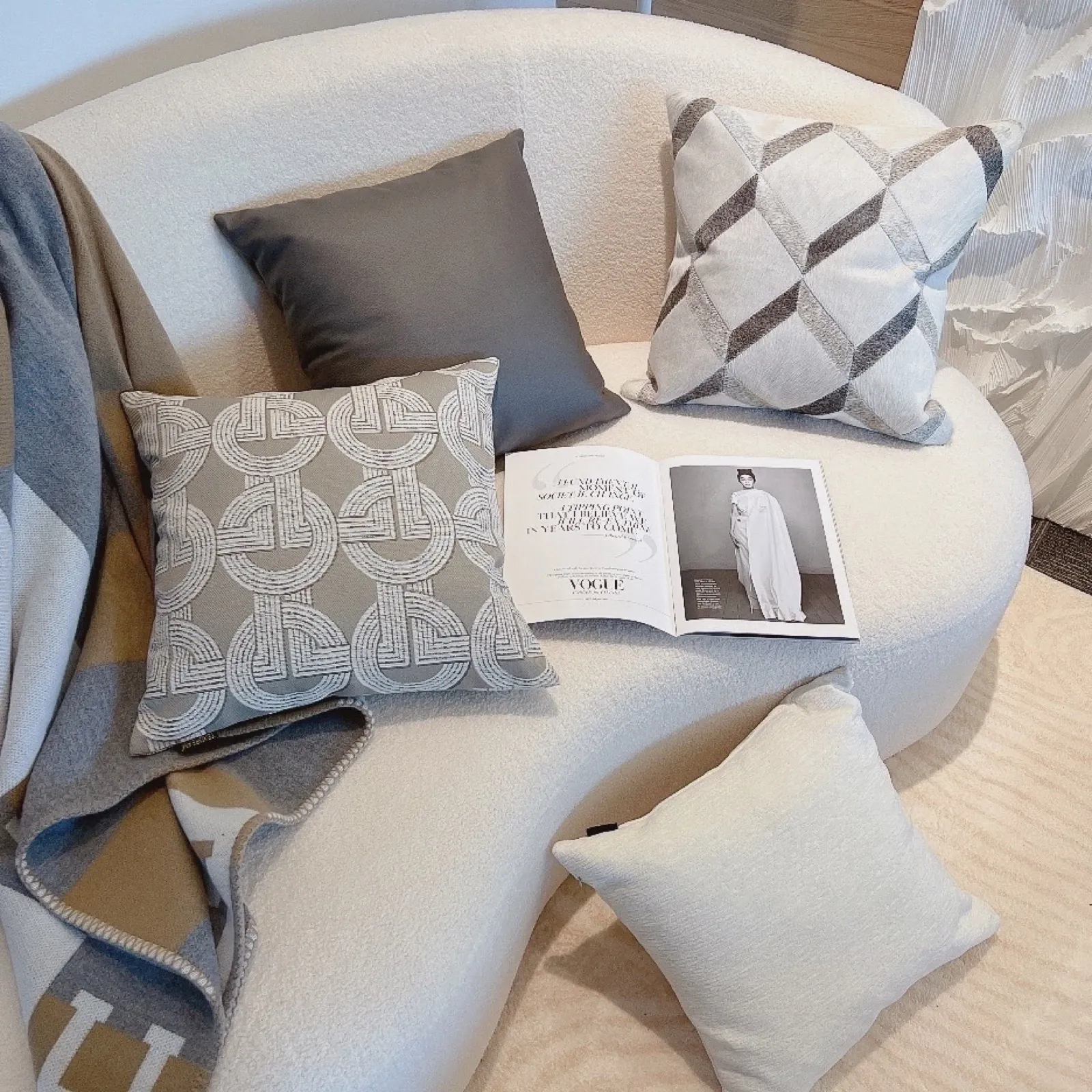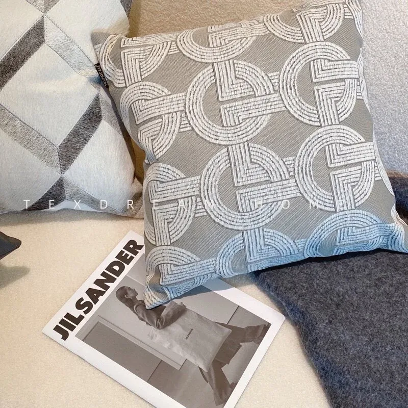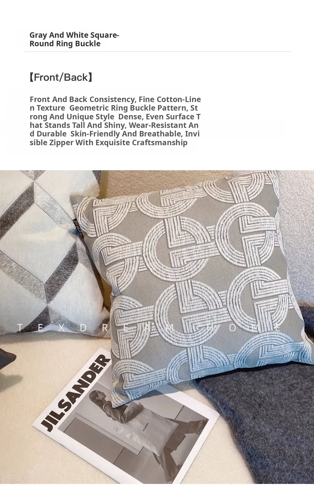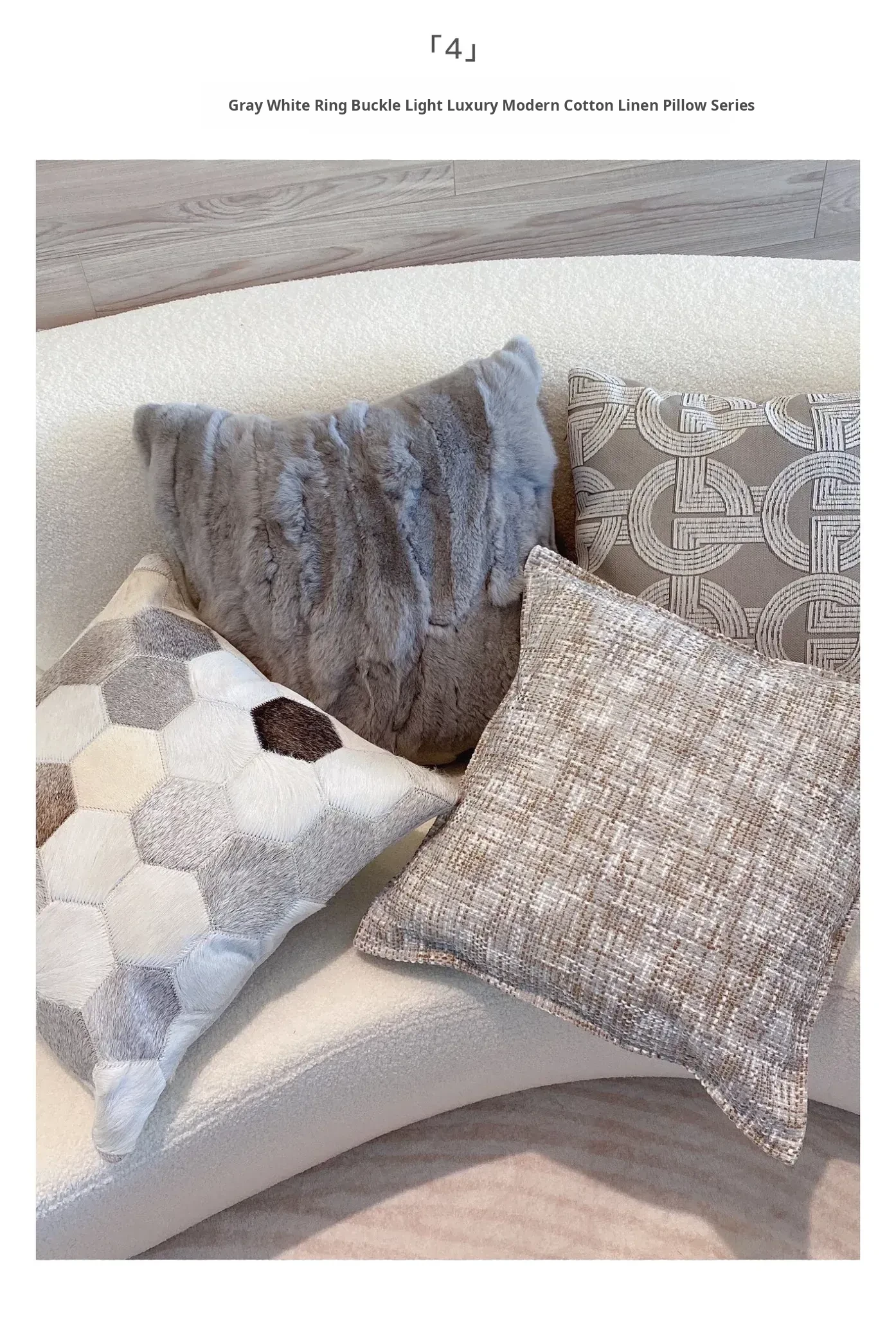 Texdream Attitude Creamy Snowtop Gray Luxury Genuine Leather Throw Pillow - Modern Sofa Cushion Cover for Stylish Living Rooms