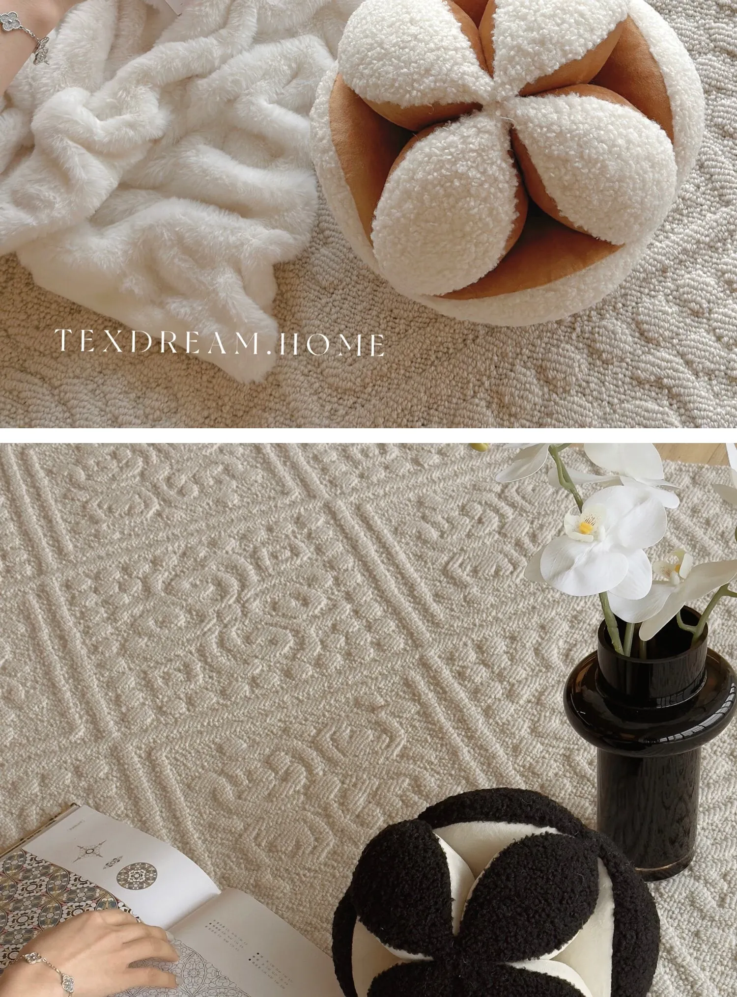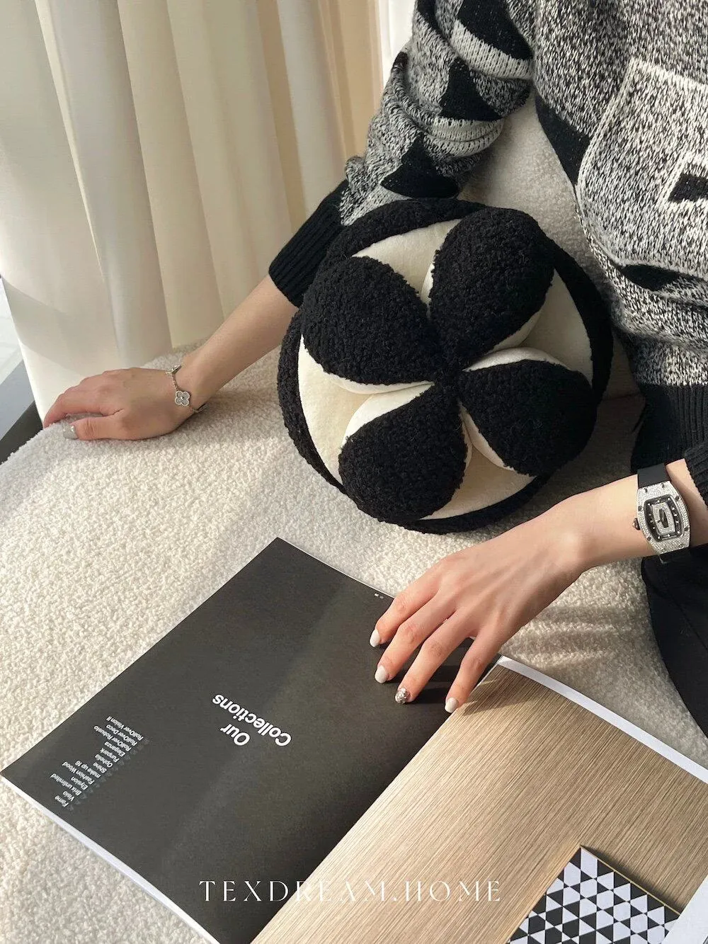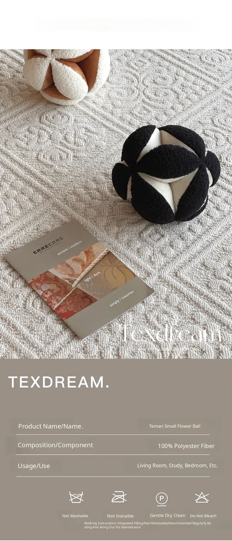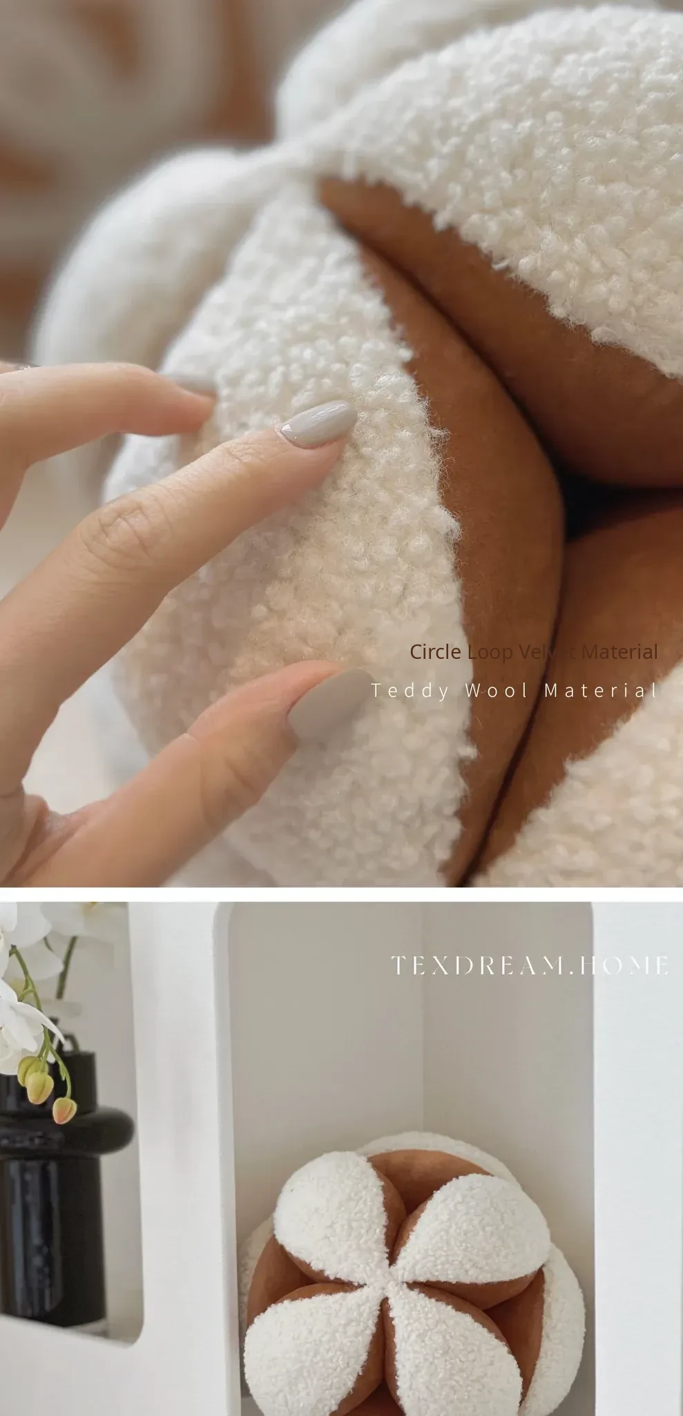 Texdream Attitude Cute Floral Ball Pillow - Modern Chinese Style Unique Shaped Cushion for a Chic and Minimalist Touch in Your Home Decor