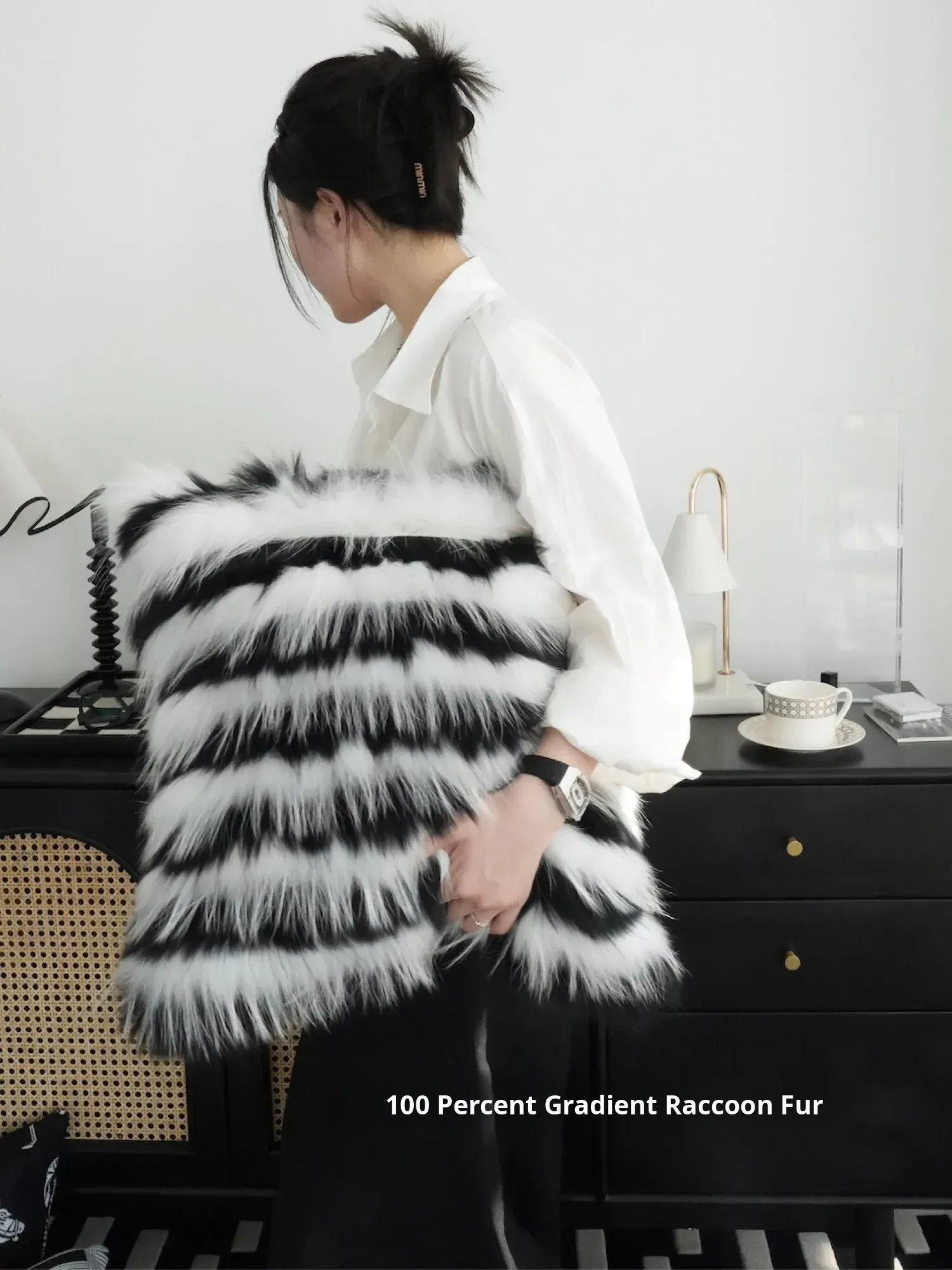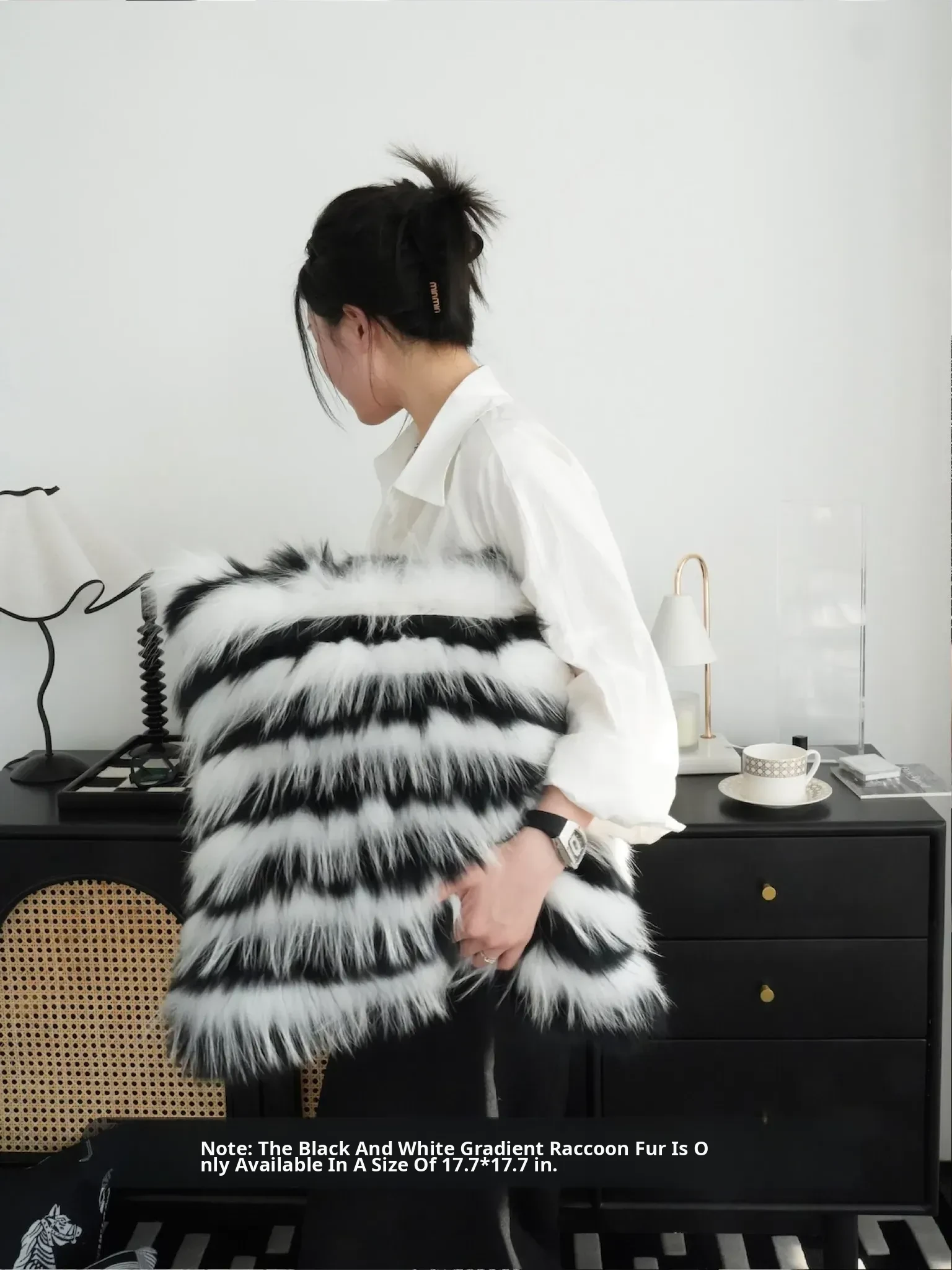[45 * 17.72in black and white gradient raccoon fur]]