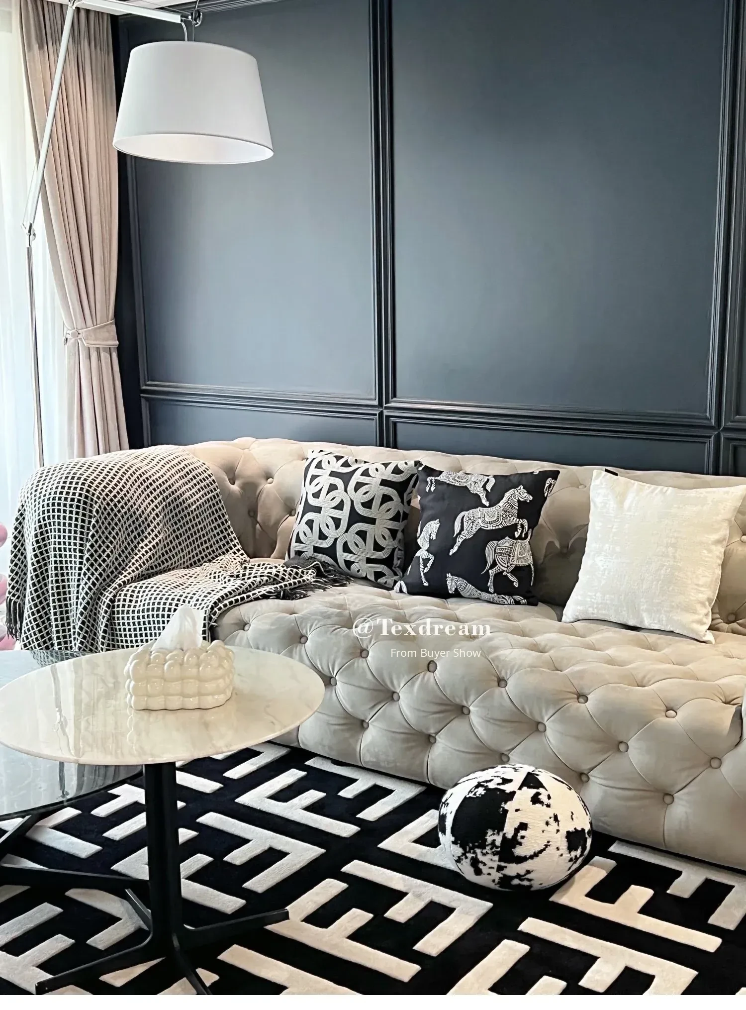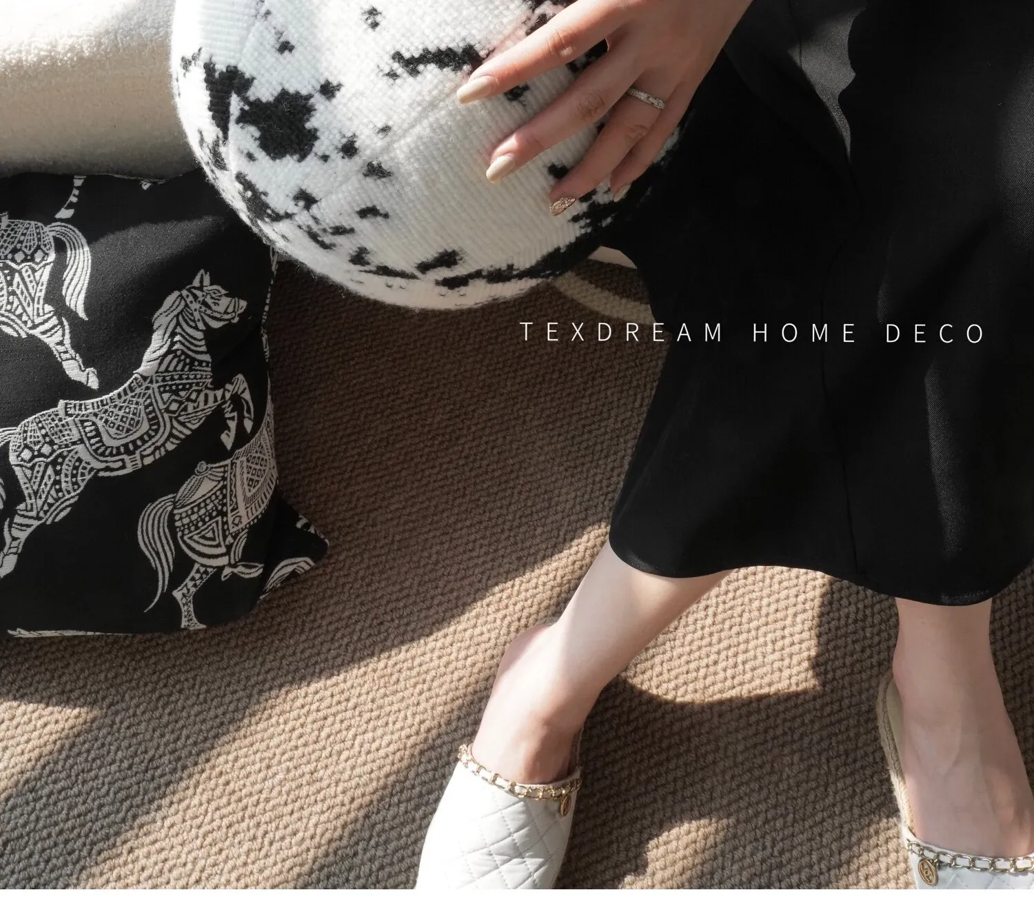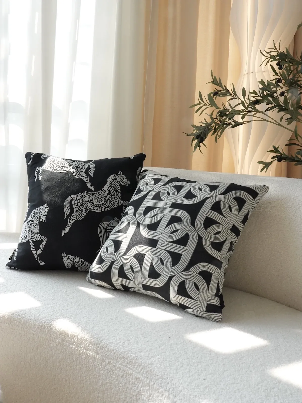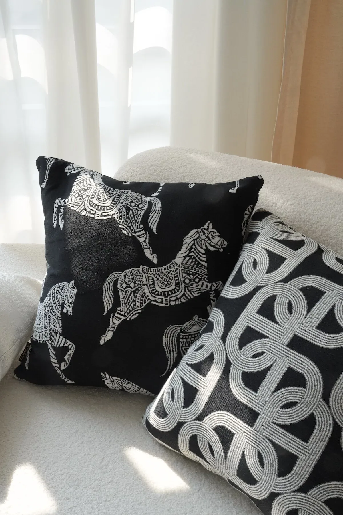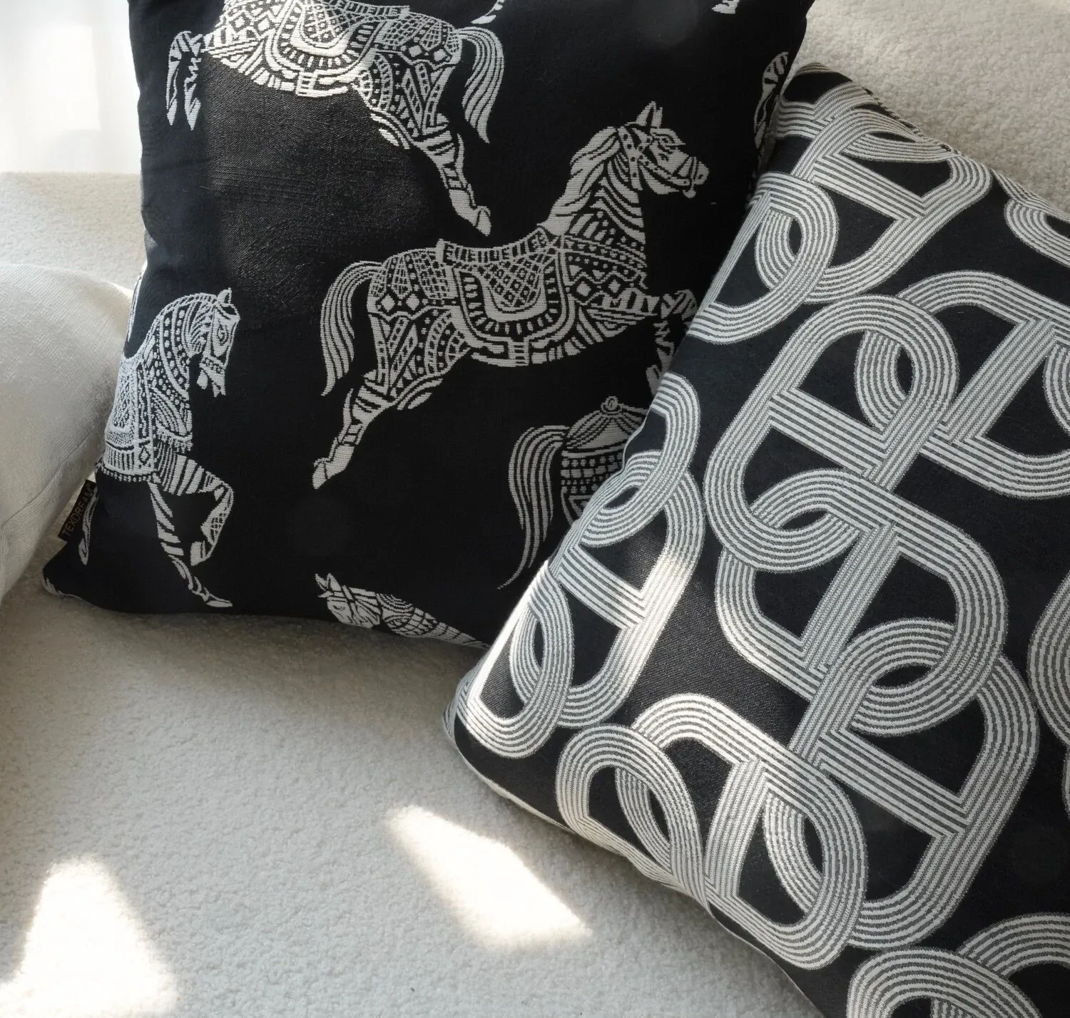 Texdream Attitude Earl Black Royal Horse Throw Pillow – Modern Luxury Sofa Cushion for Living Room, Premium Pillow Cover for a Touch of Elegance.
