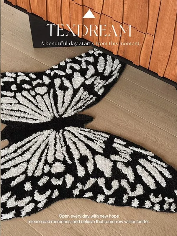 TEXDREAM Attitude Elegant Butterfly Area Rug - French Vintage Style Luxury Carpet for Living Room, Bedroom, and Chic Entryway Mat
