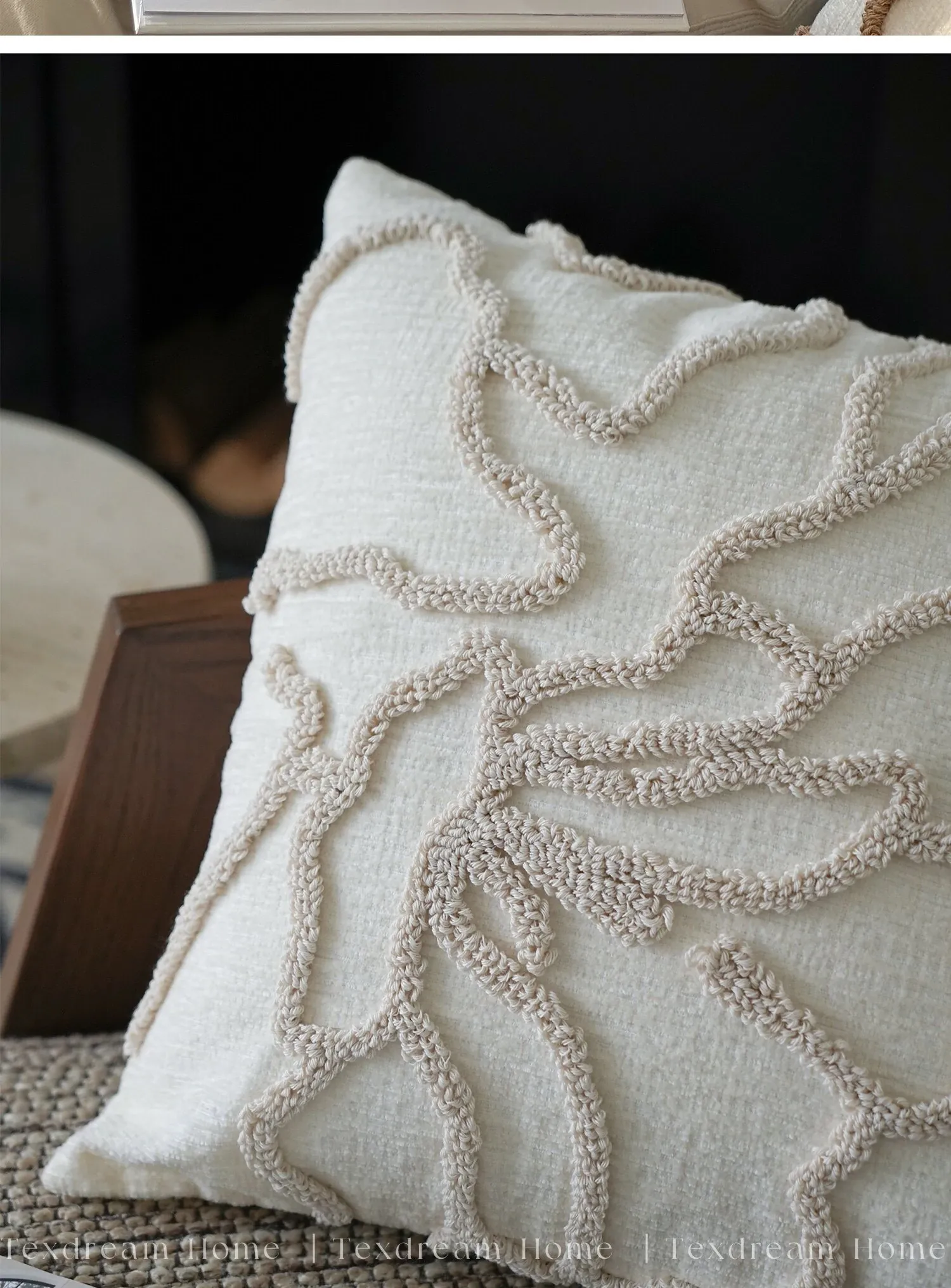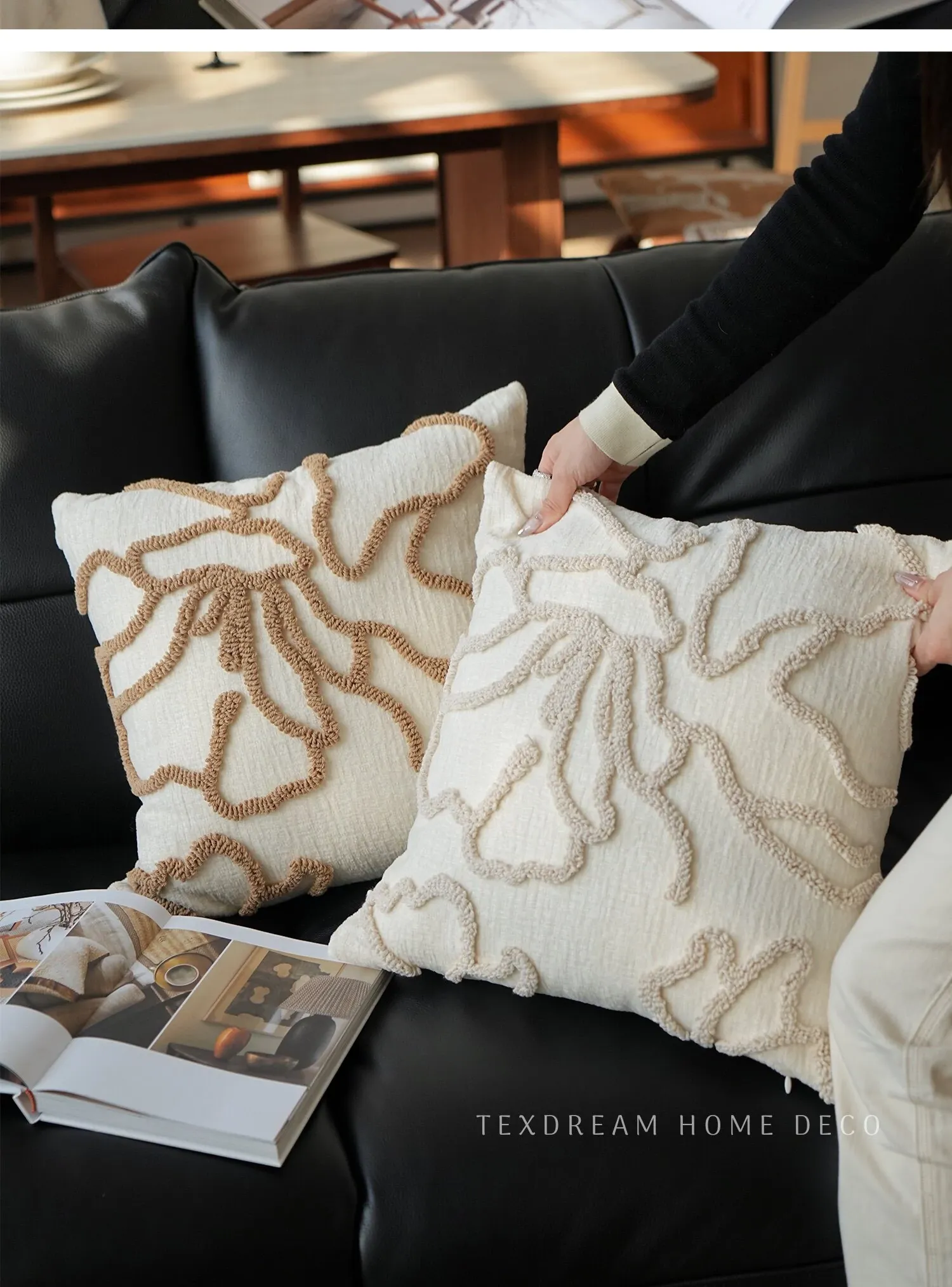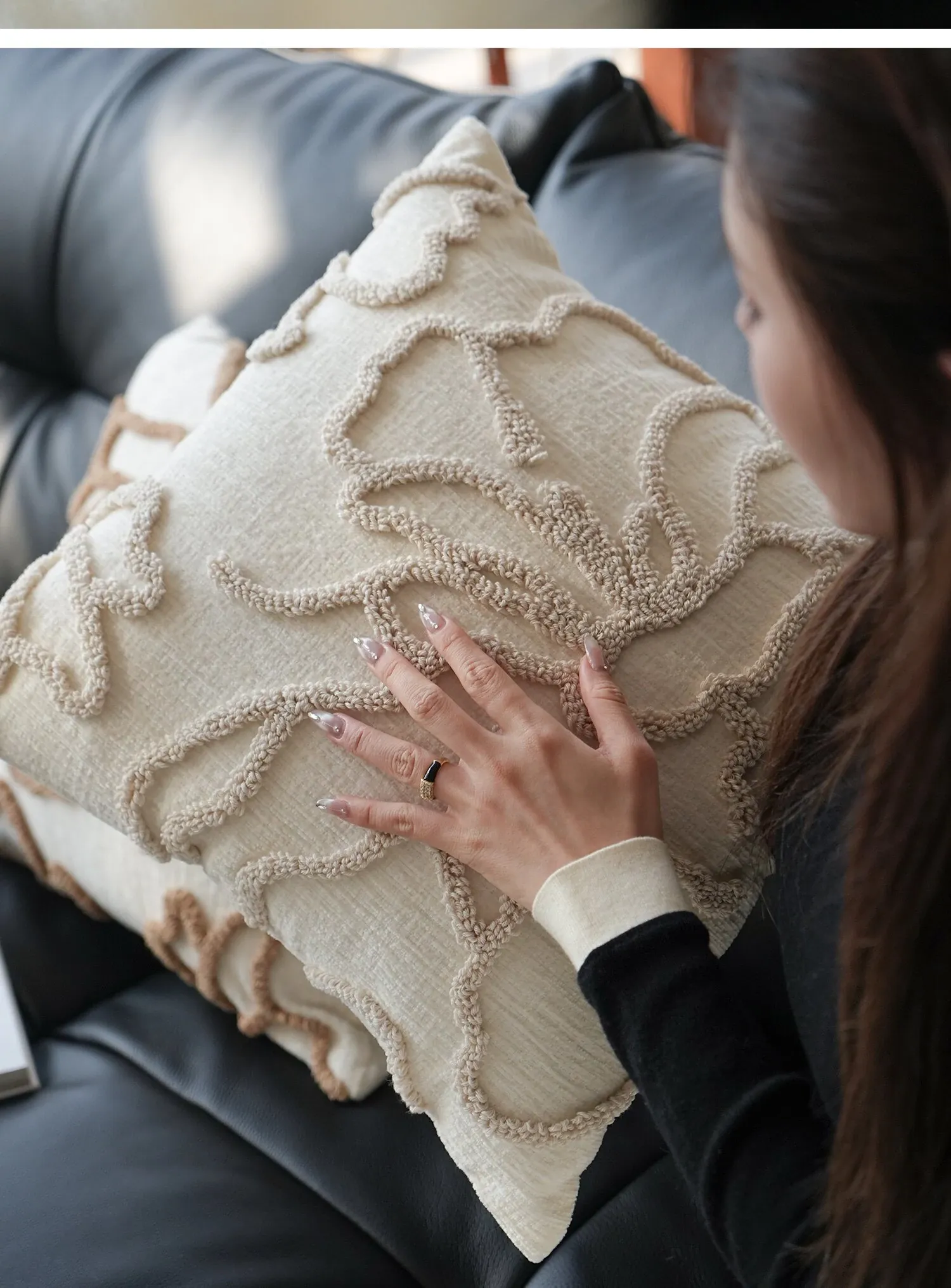 Texdream Attitude Embroidered 3D Decorative Throw Pillow - Beige Abstract Texture Luxury Sofa Cushion for Living Room