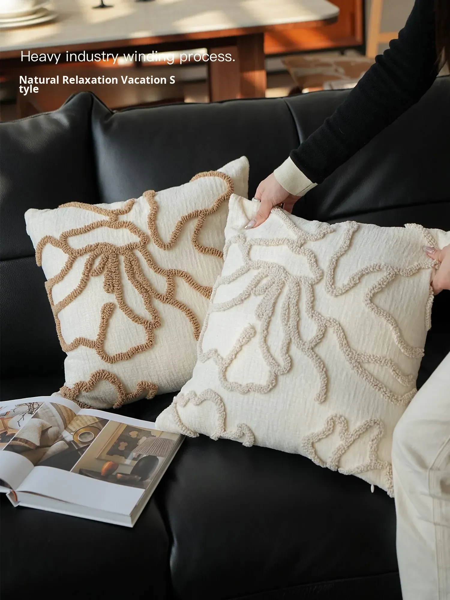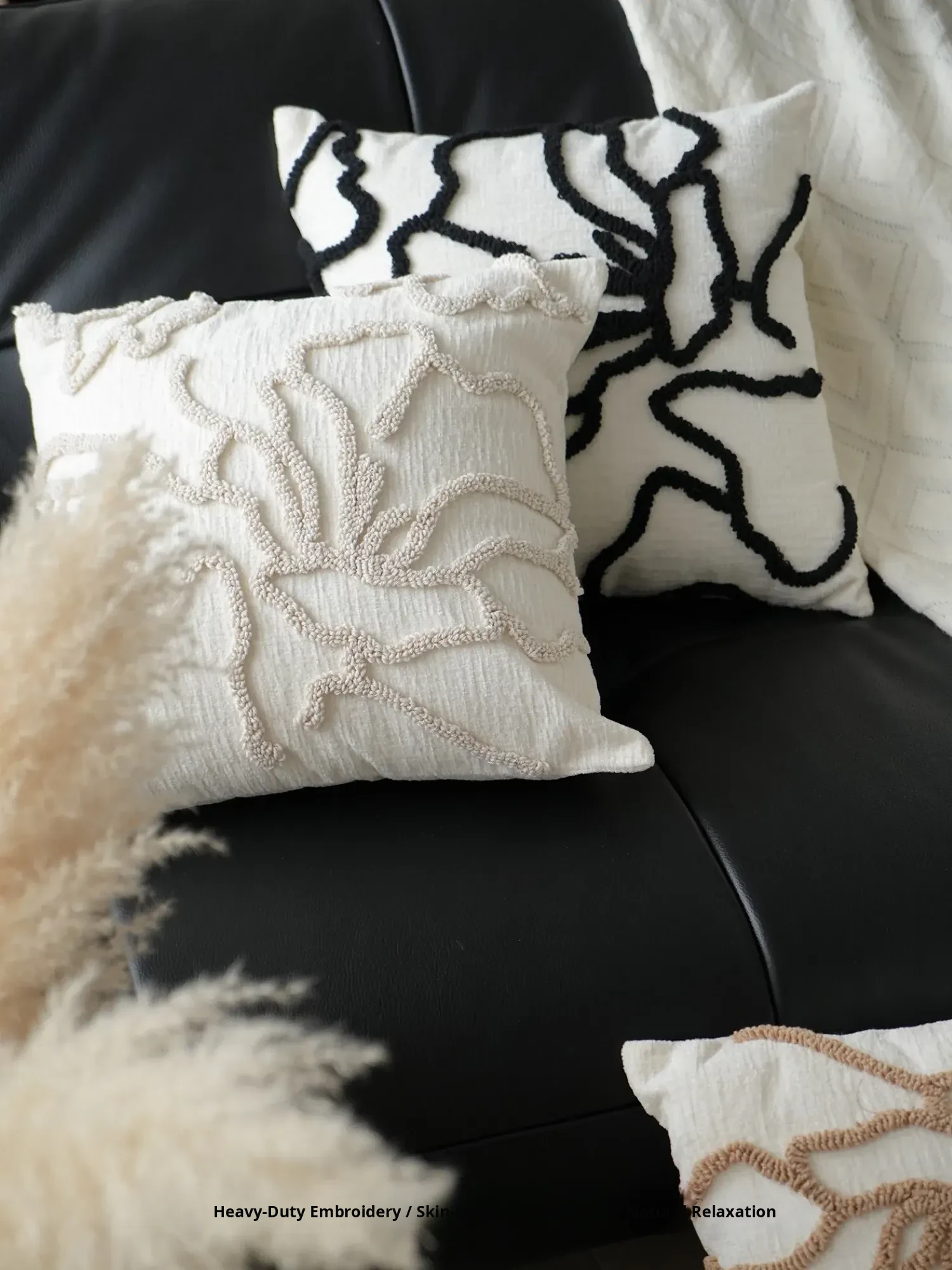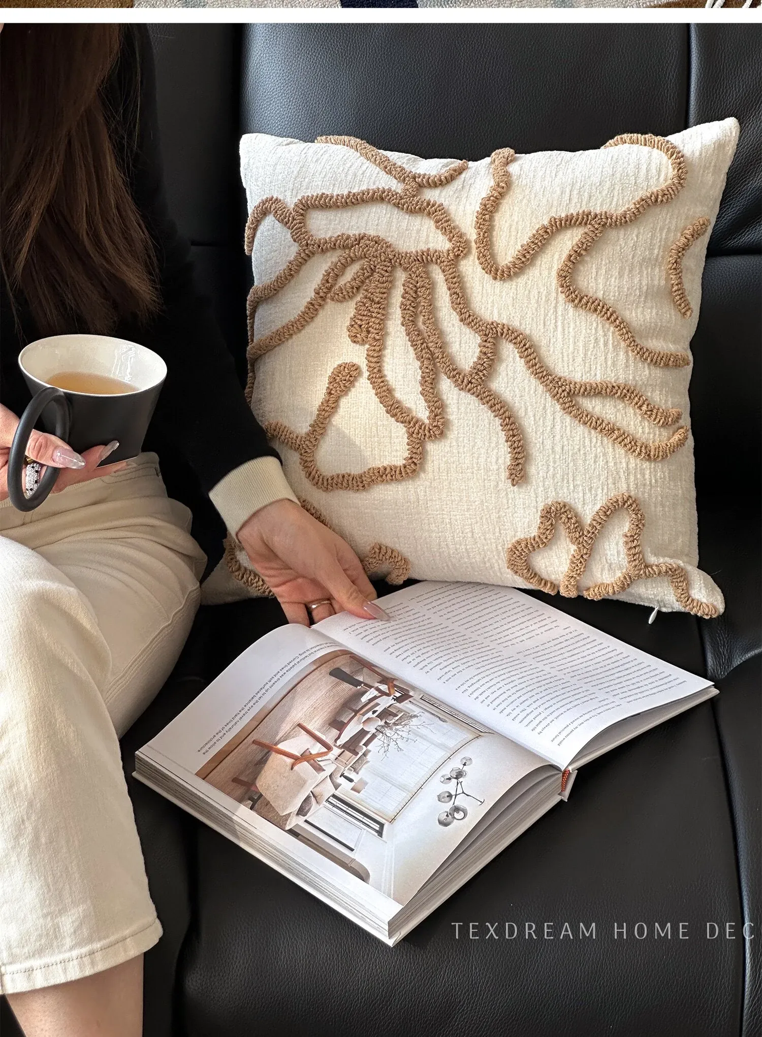 Texdream Attitude Embroidered 3D Decorative Throw Pillow - Beige Abstract Texture Luxury Sofa Cushion for Living Room