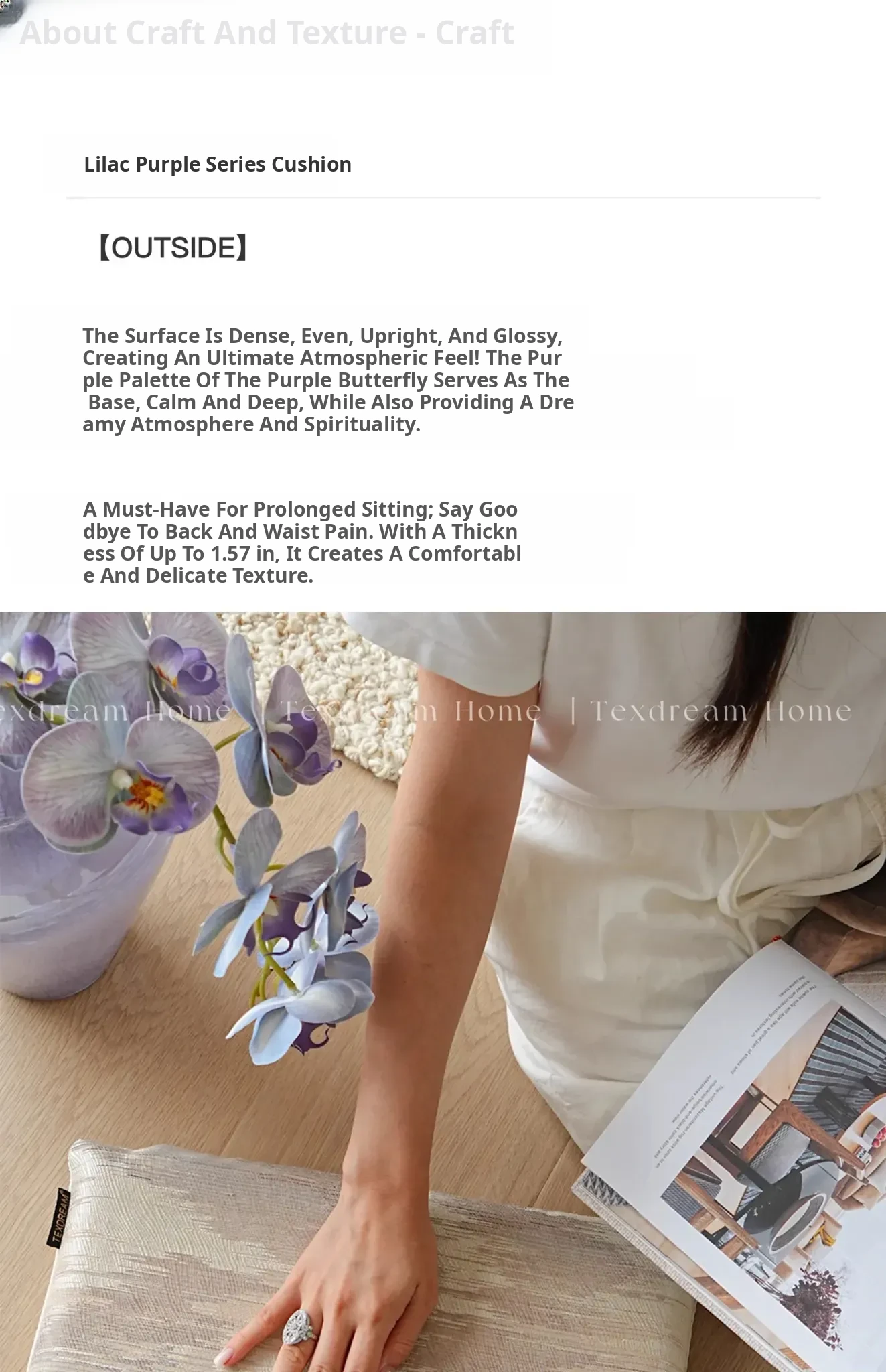 Texdream Attitude Fog Purple Gray Cushion - French Elegance Tufted Luxury Cream-Style Memory Foam Window Seat Pad for Ultimate Comfort