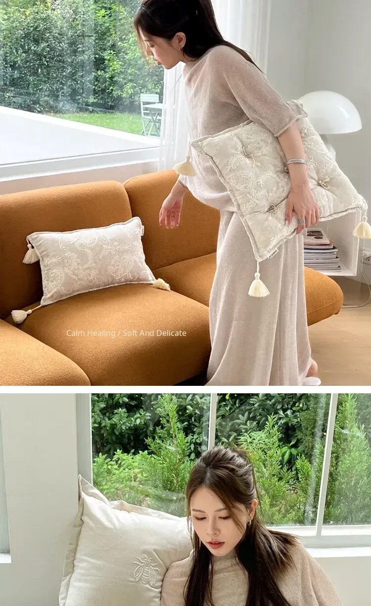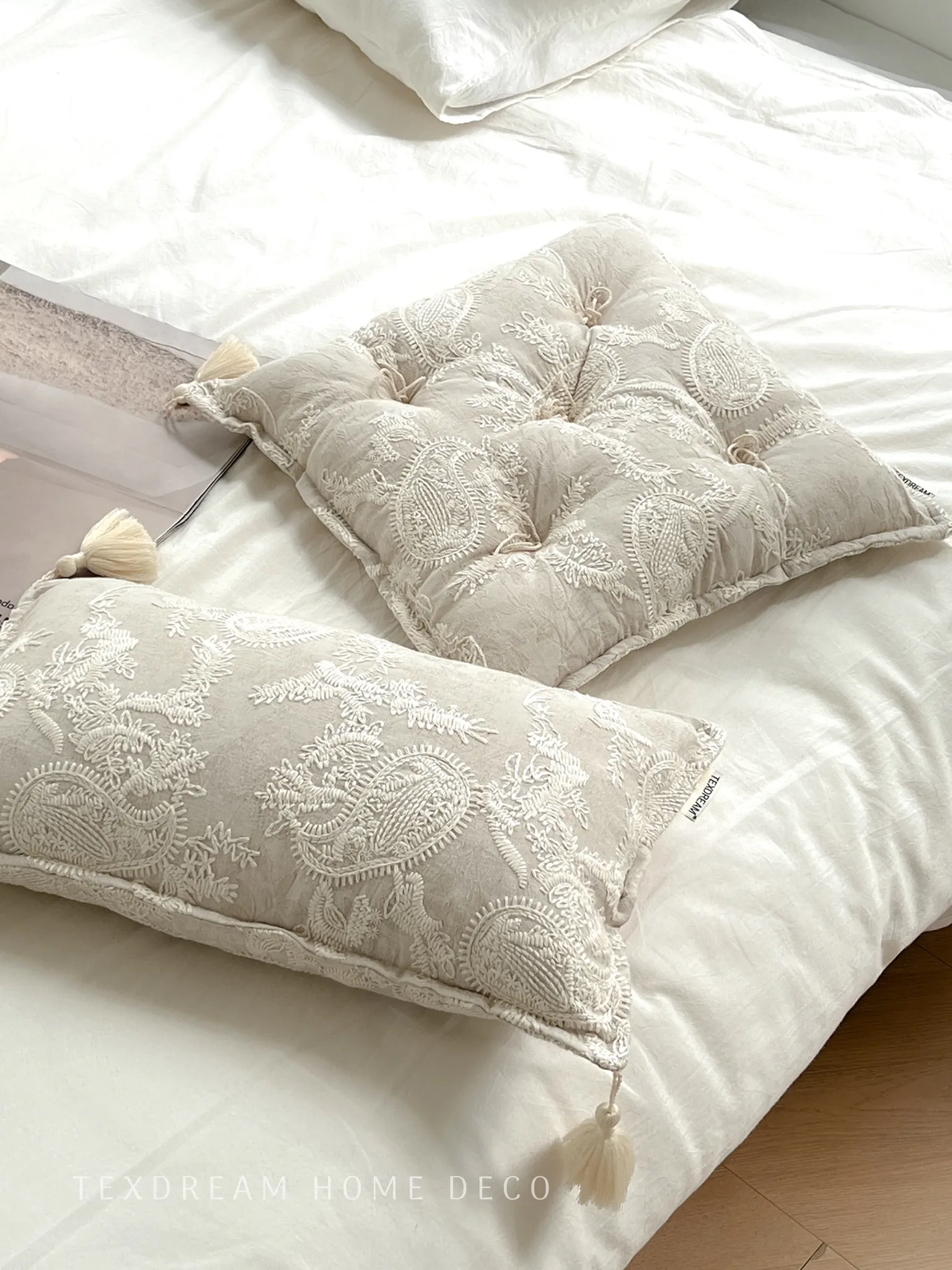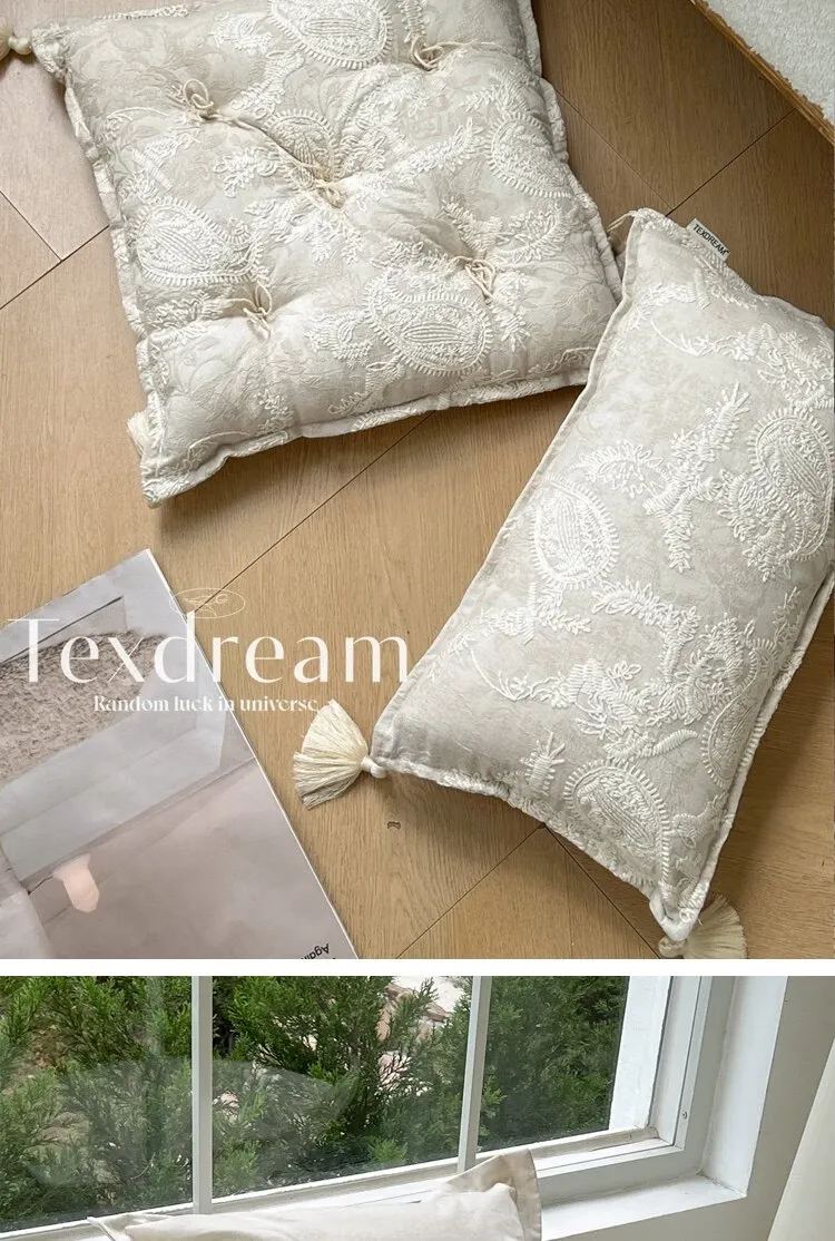 【Flower Mirror| Tassel Embroidered Waist Pillow]
