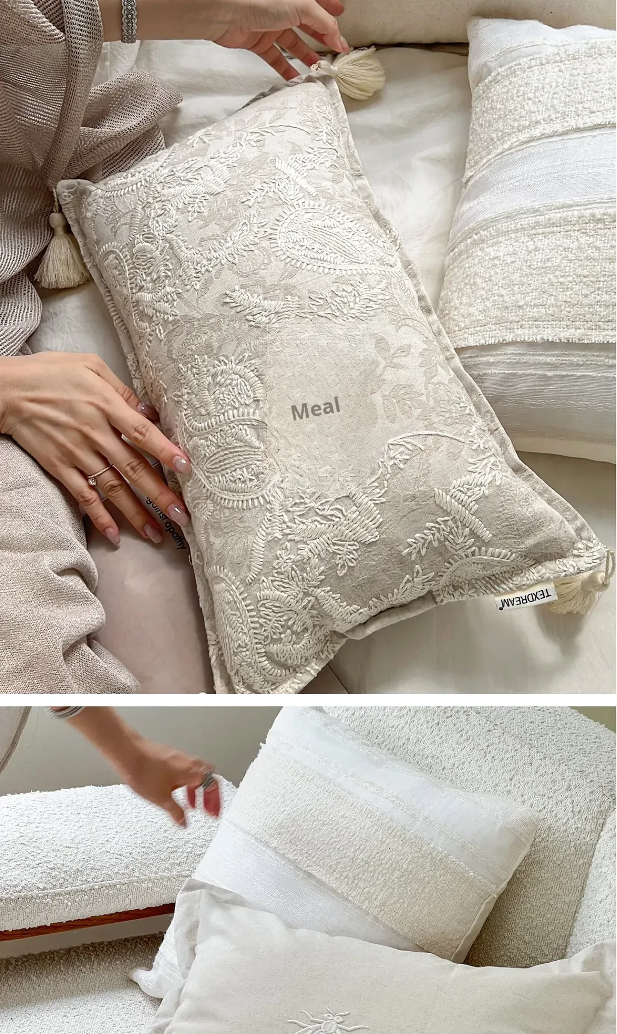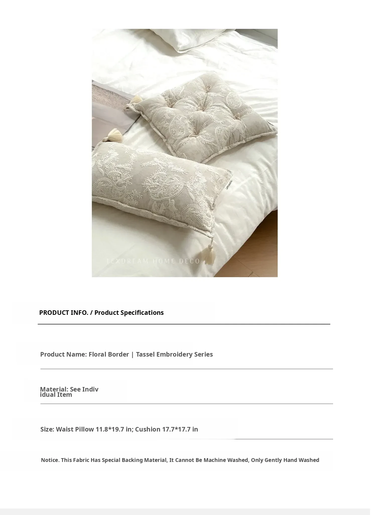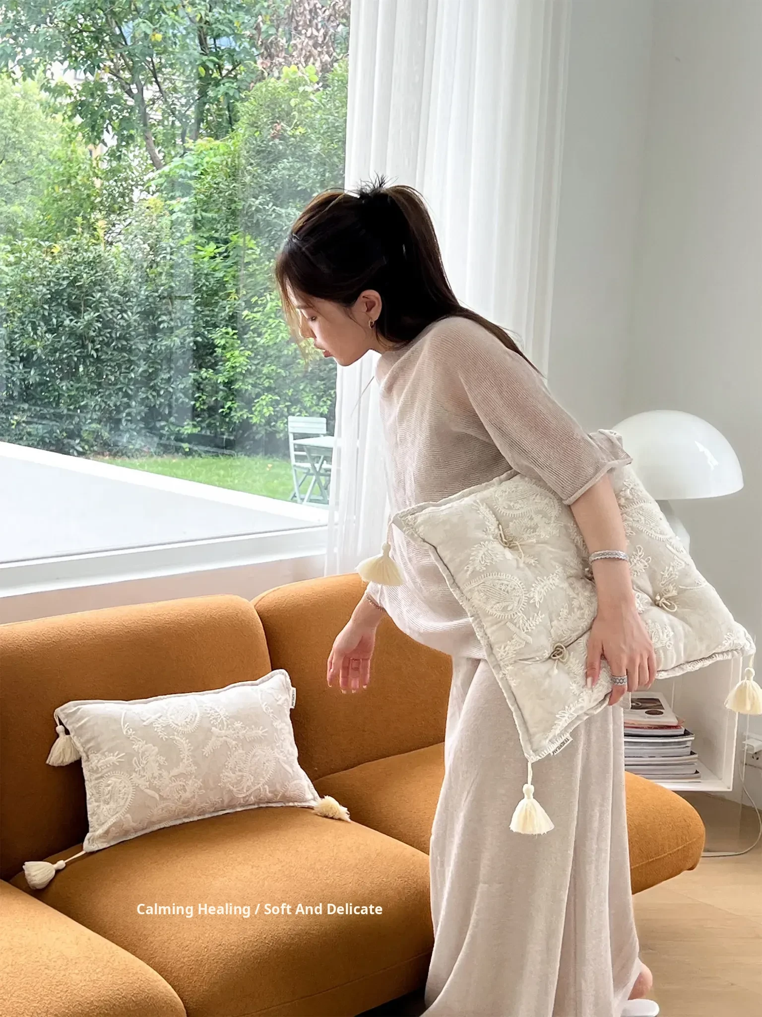 【Flower Mirror| Tassel Embroidered Waist Pillow]