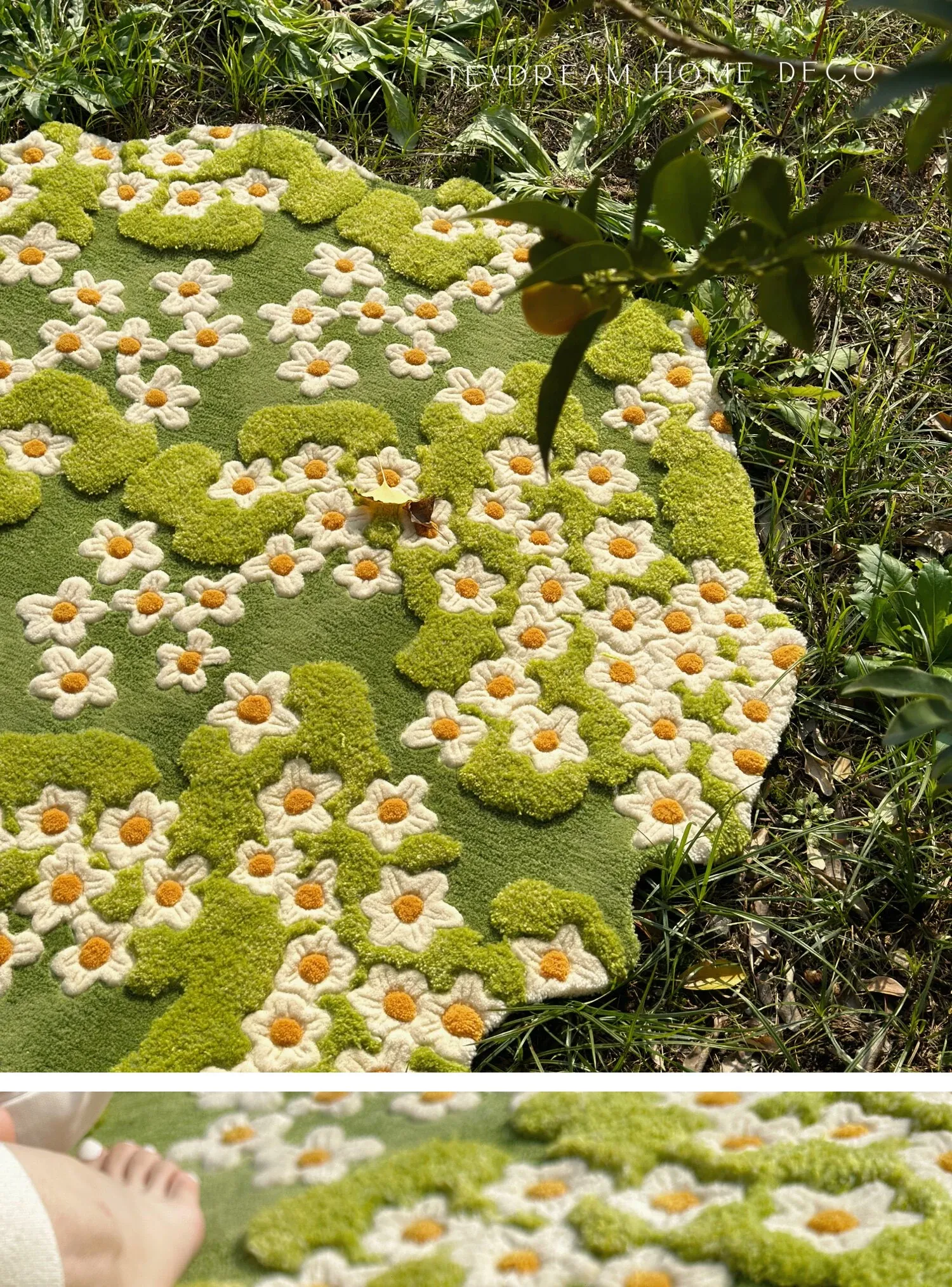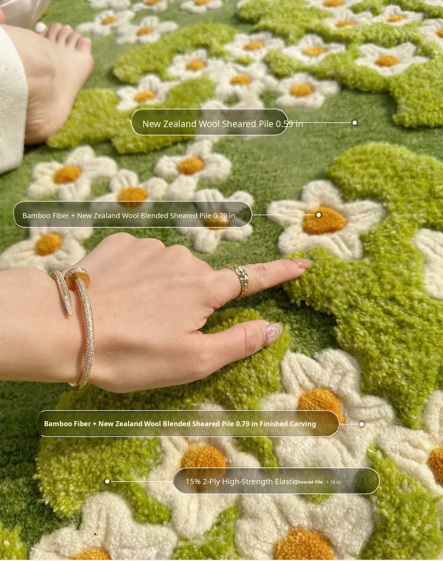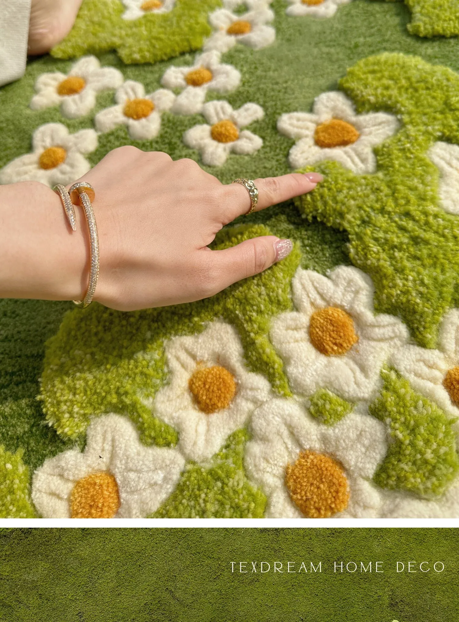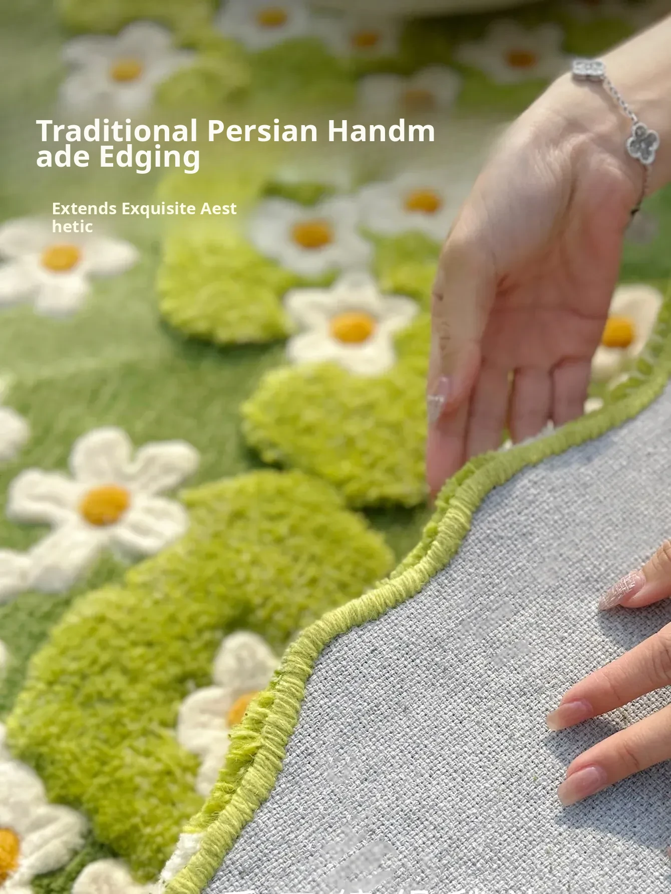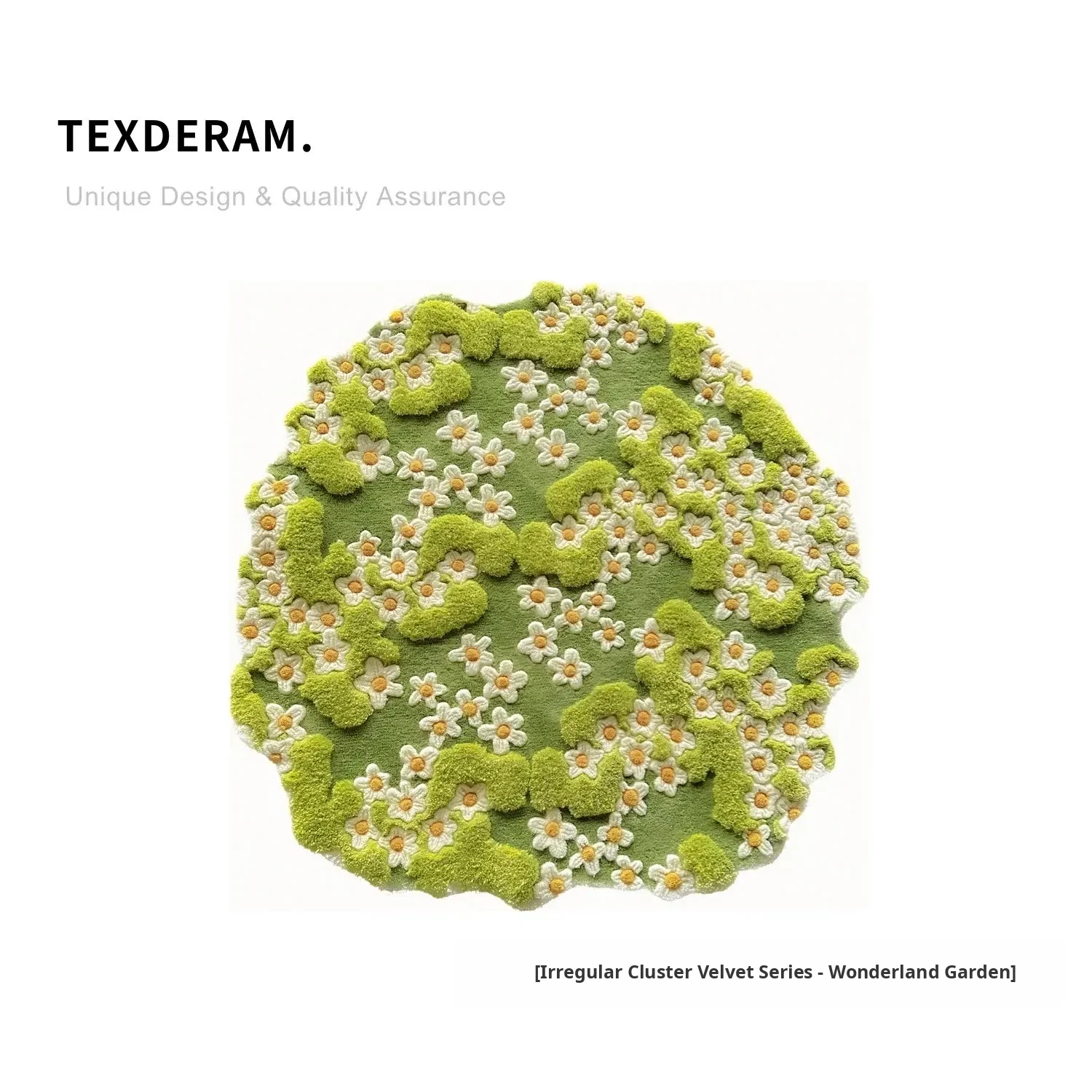Texdream Attitude - French Handmade Wool Rug: Artistic Freshness for Your Sofa, Cushion, and Coffee Table Decor in a Whimsical Garden Design