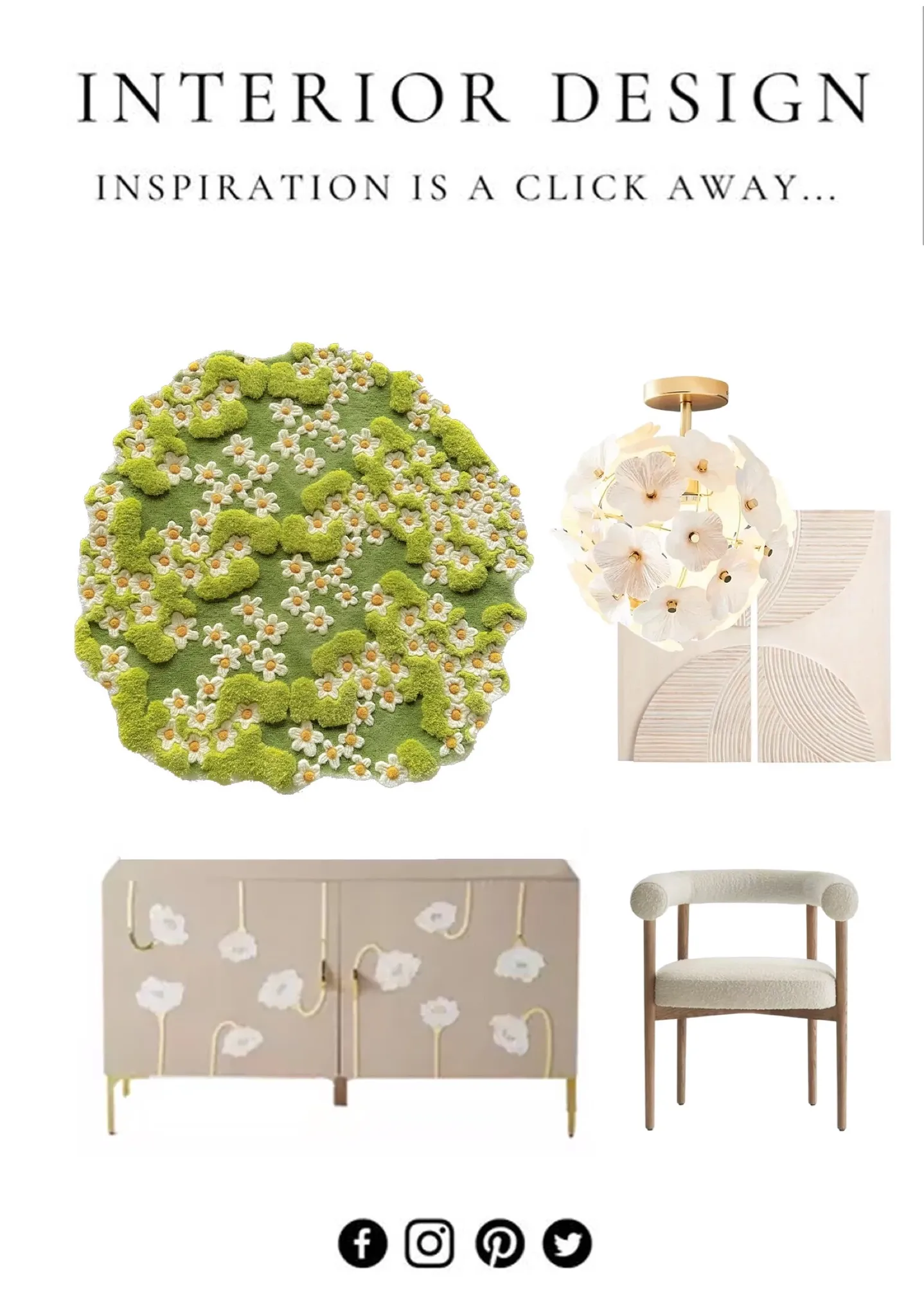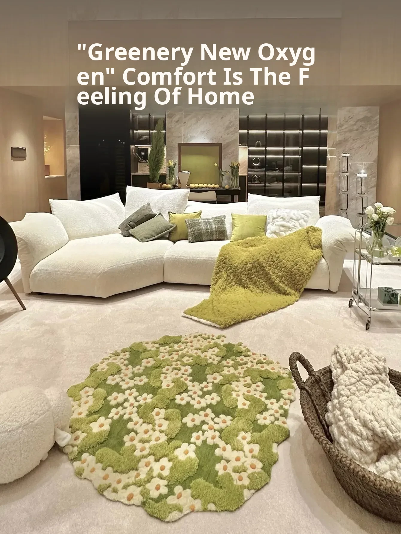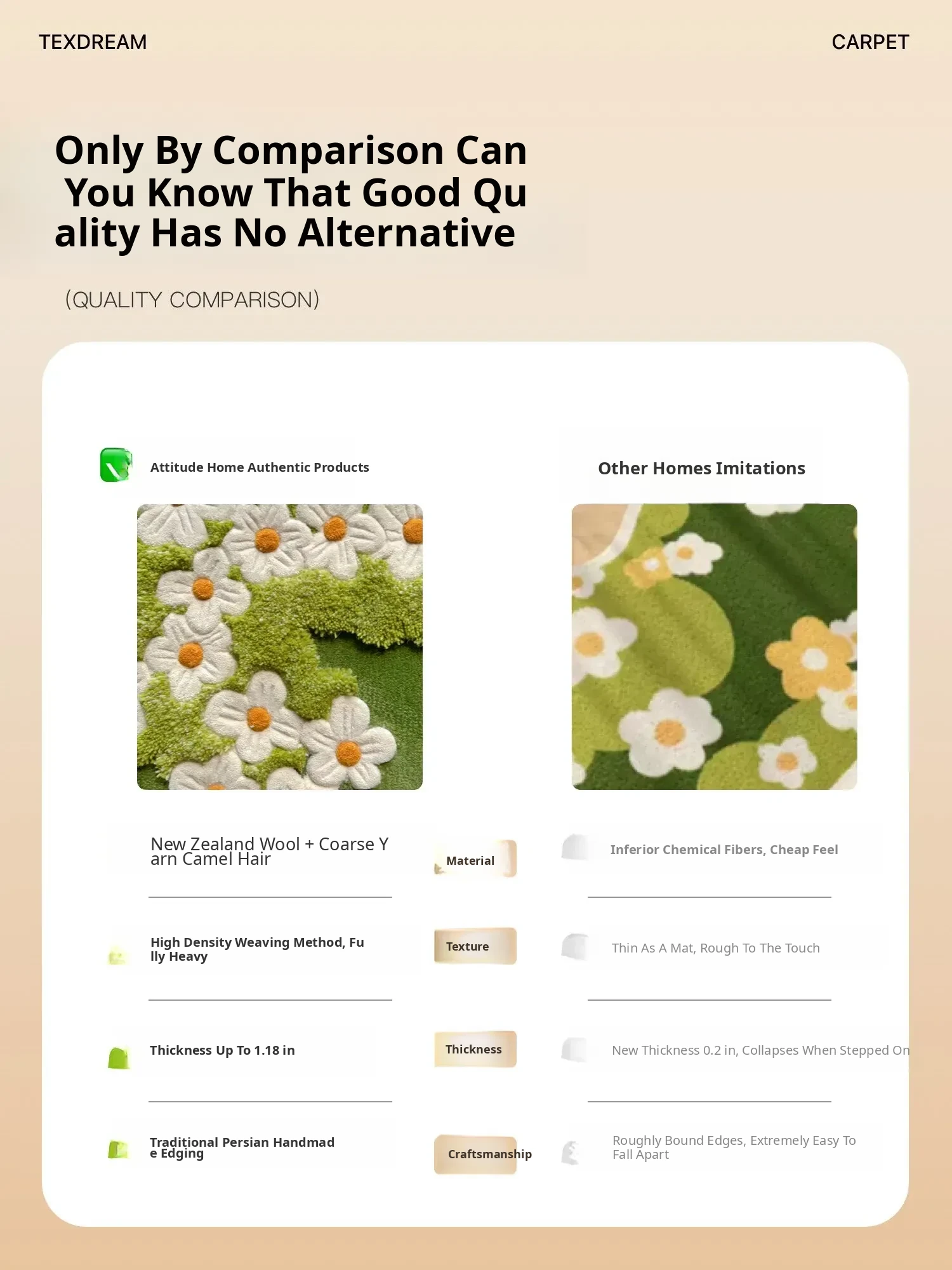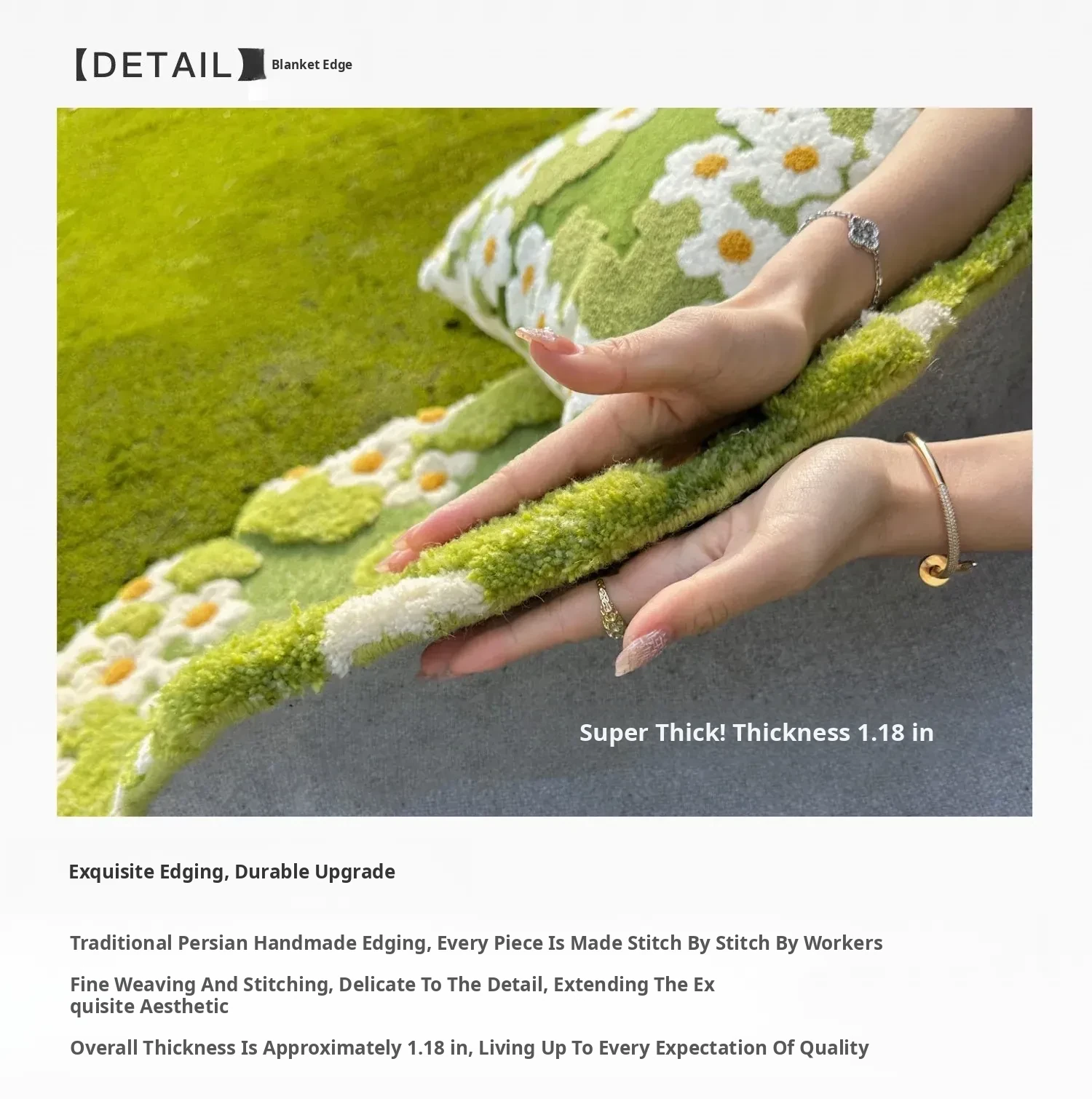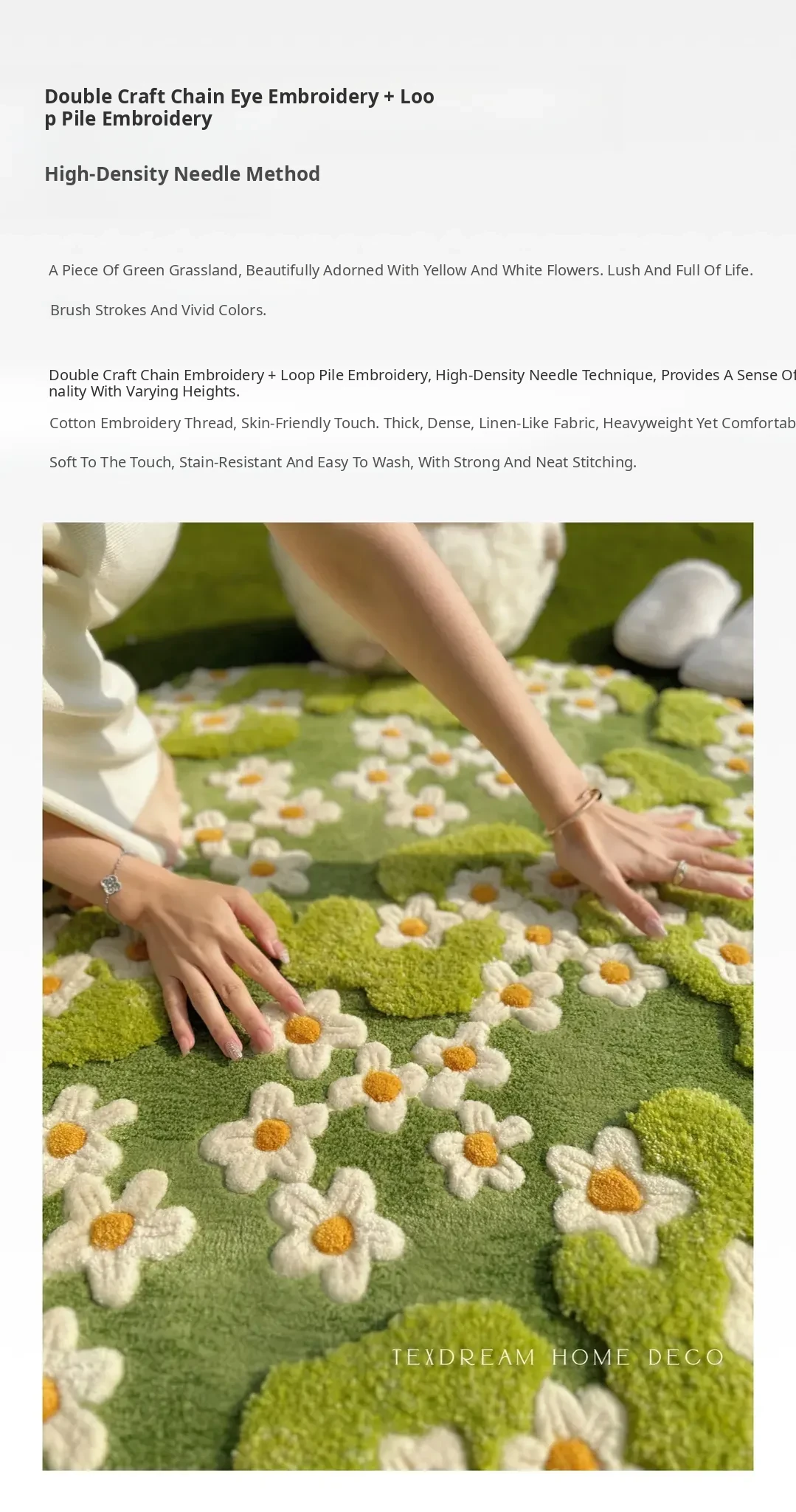 Texdream Attitude - French Handmade Wool Rug: Artistic Freshness for Your Sofa, Cushion, and Coffee Table Decor in a Whimsical Garden Design