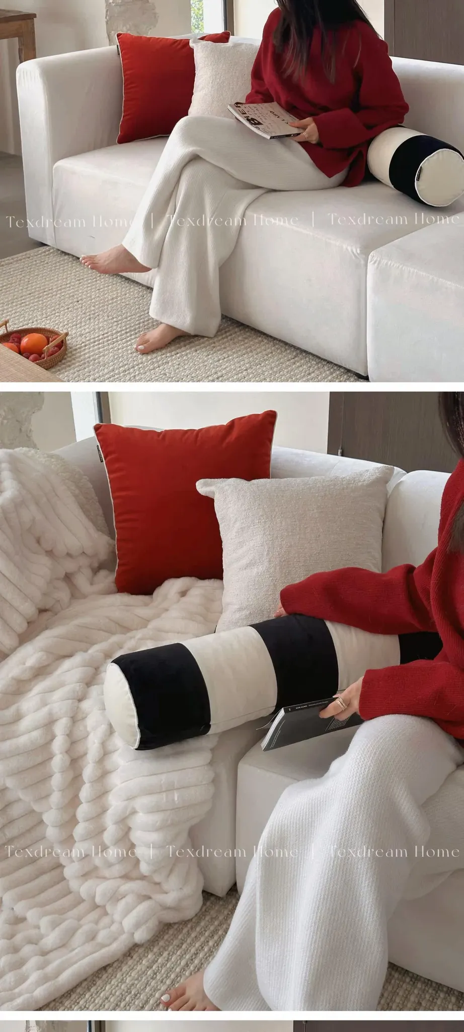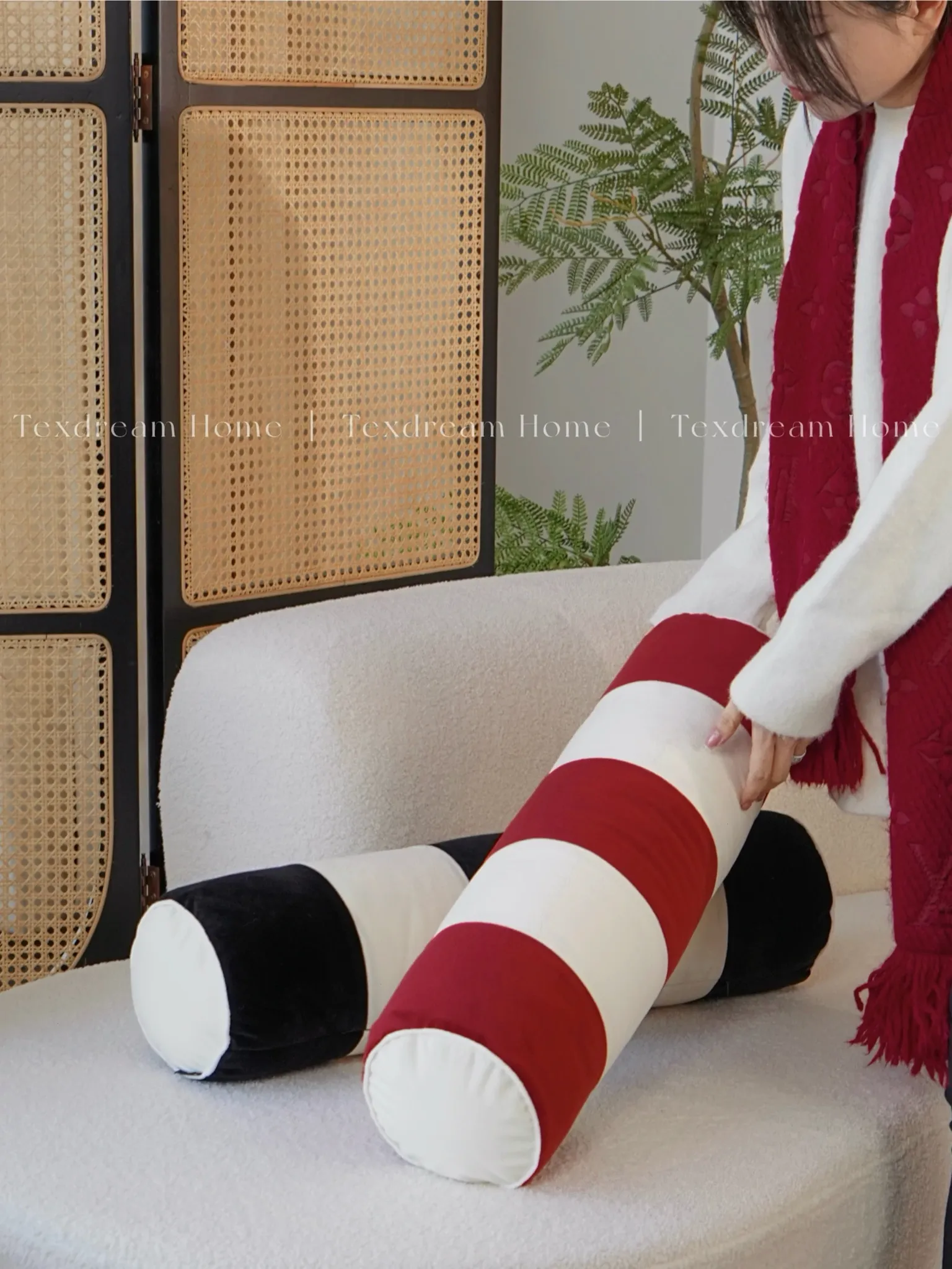 Chloe|French Red and White Velvet Cylinder