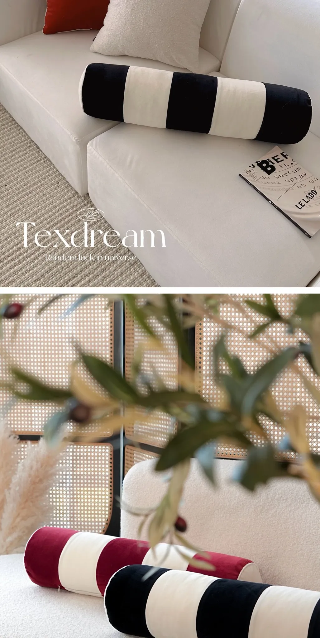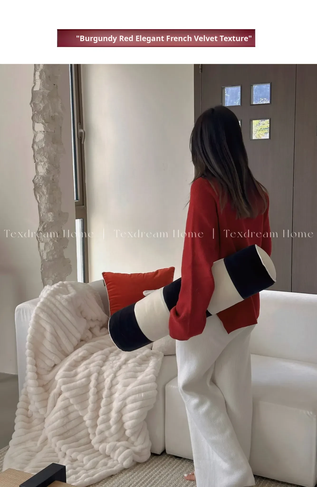 Texdream Attitude French Velvet Round Cylinder Pillow - Stylish Office Lumbar Support Cushion, Unique Sofa Accent for New Year Decor