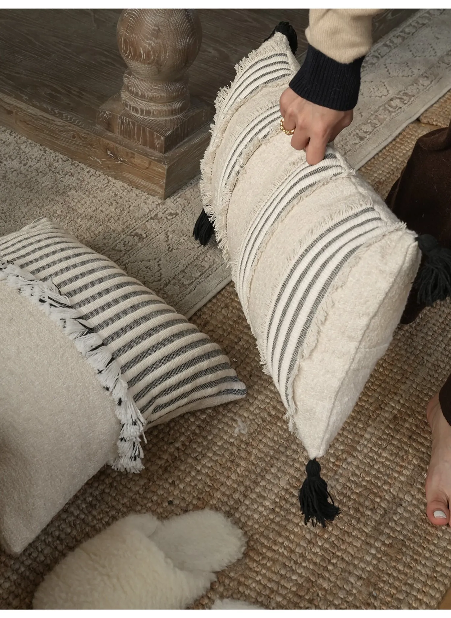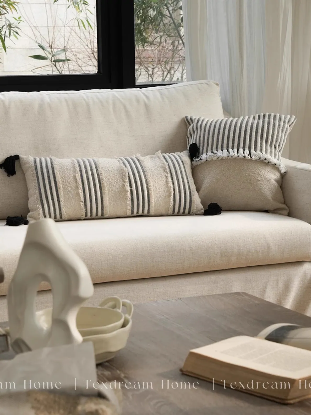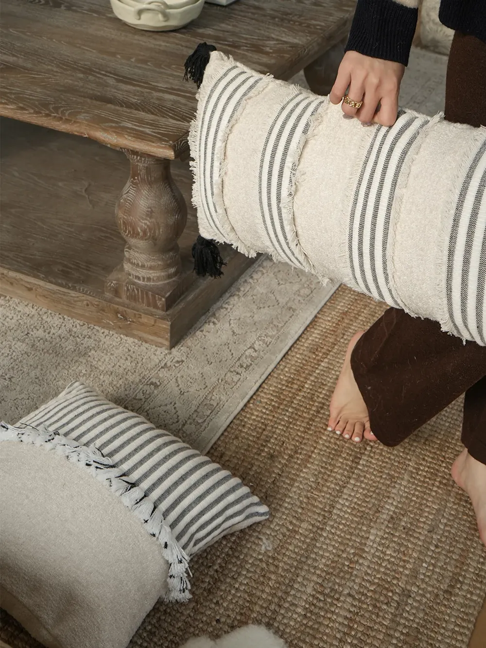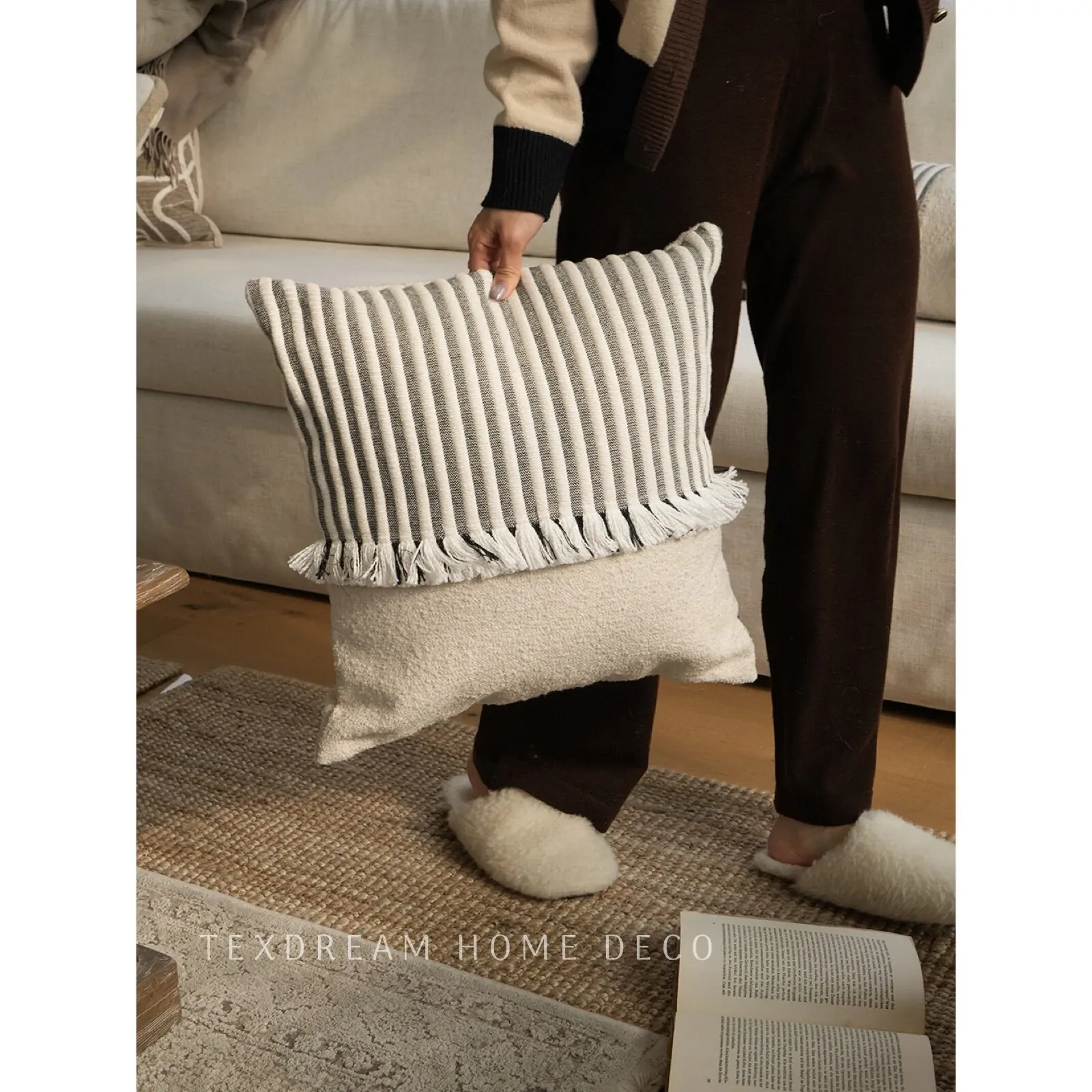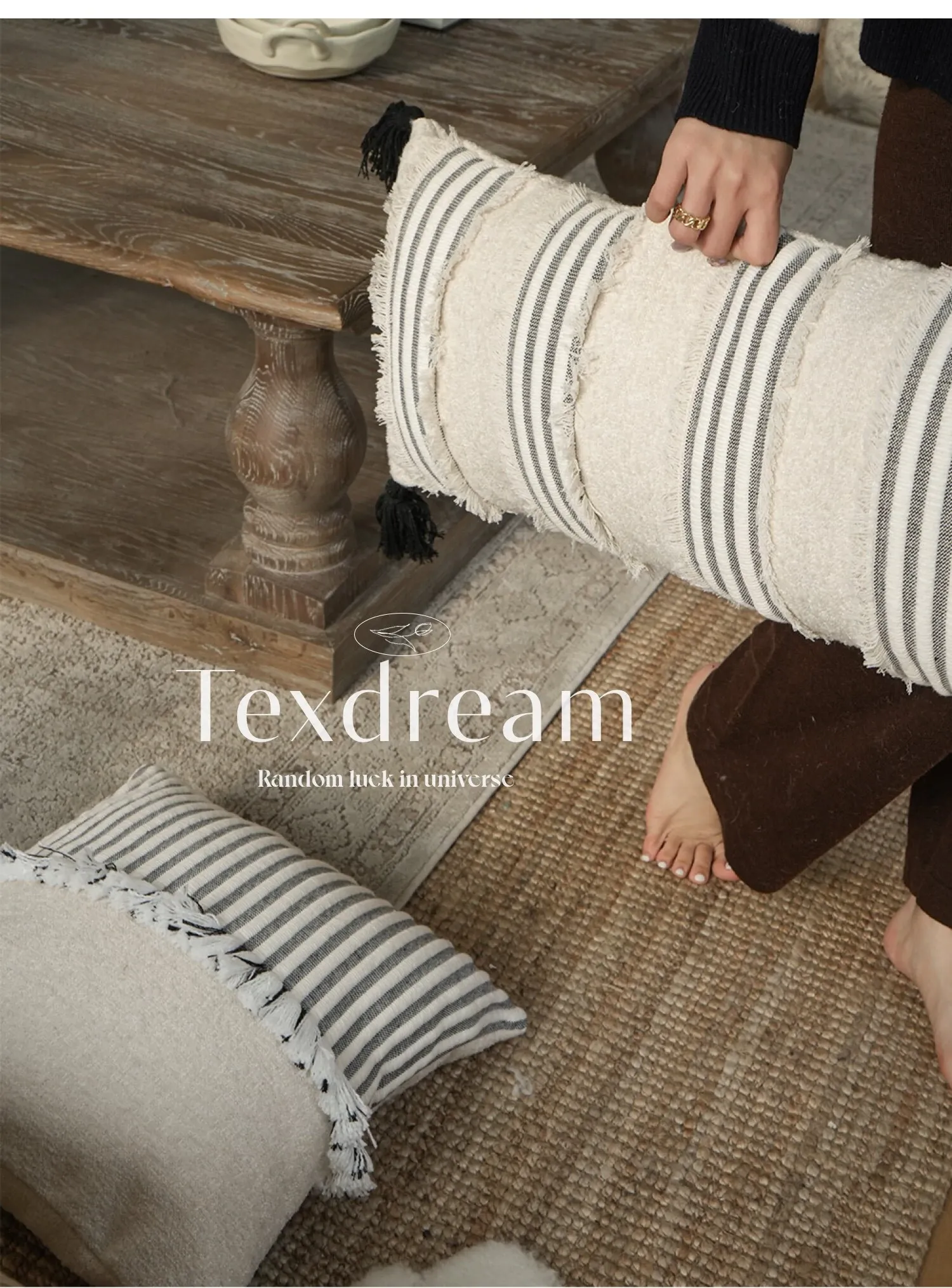 Texdream Attitude French Vintage Woven Fringe Throw Pillow Cover – A Chic and Sophisticated Addition to Your Living Room Sofa, Perfect for Embracing Wabi-Sabi Aesthetics.