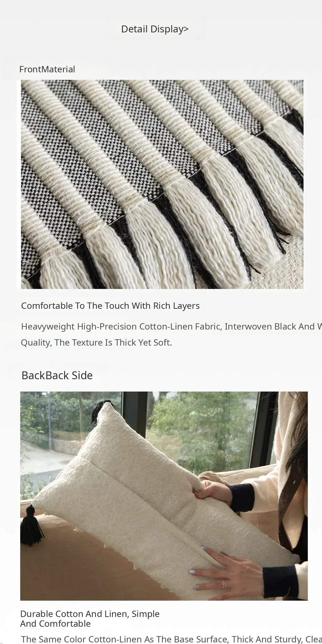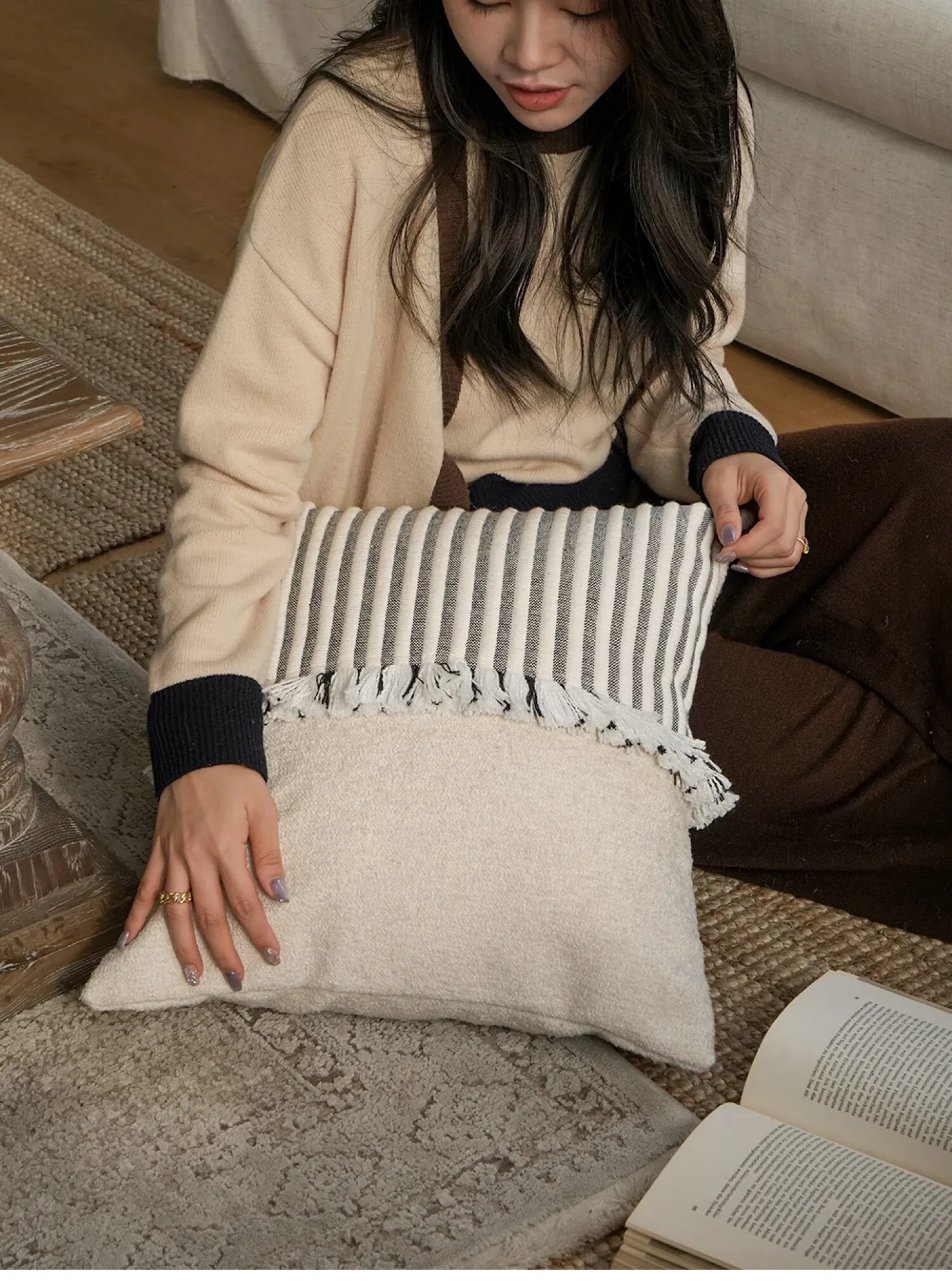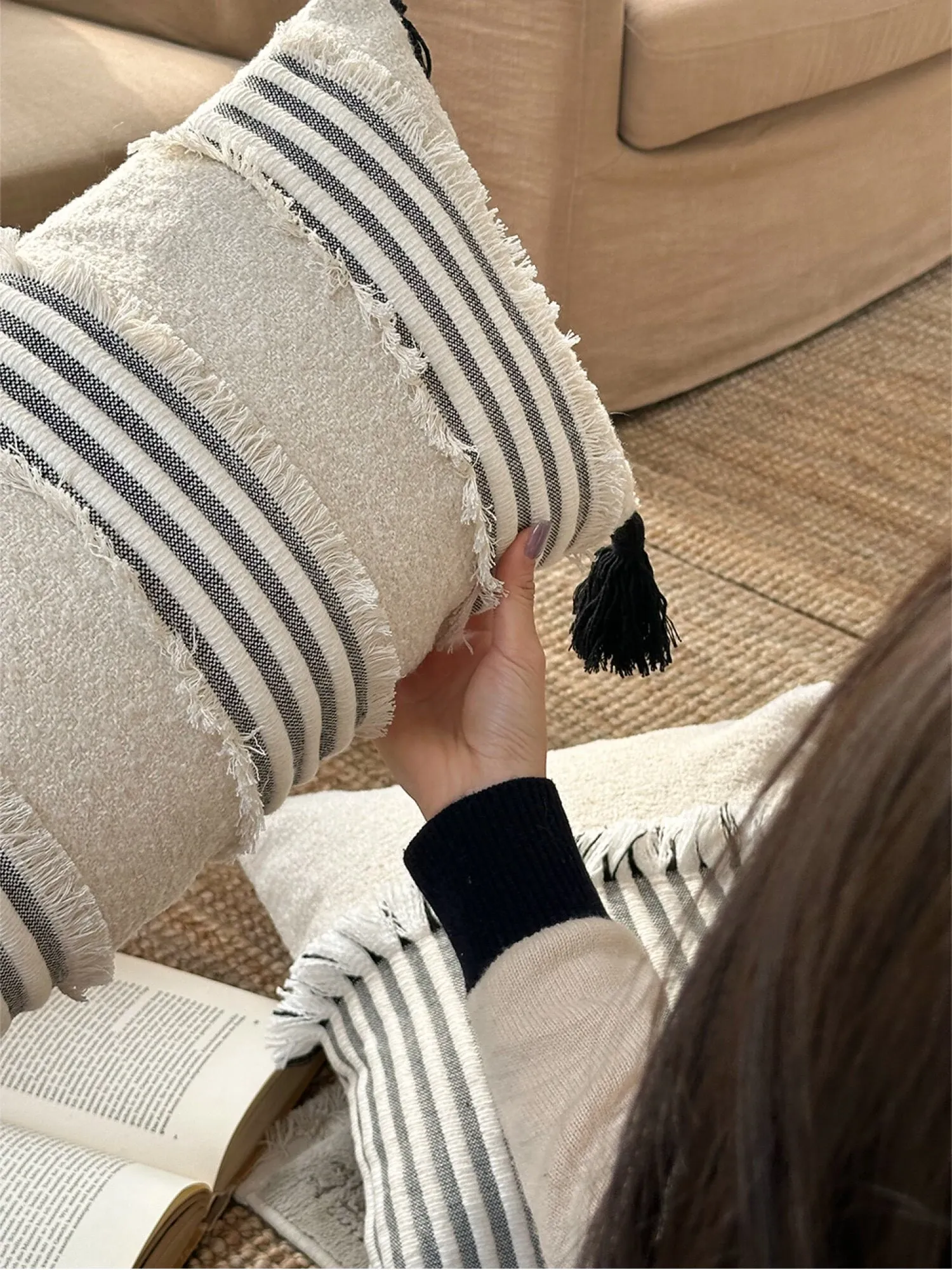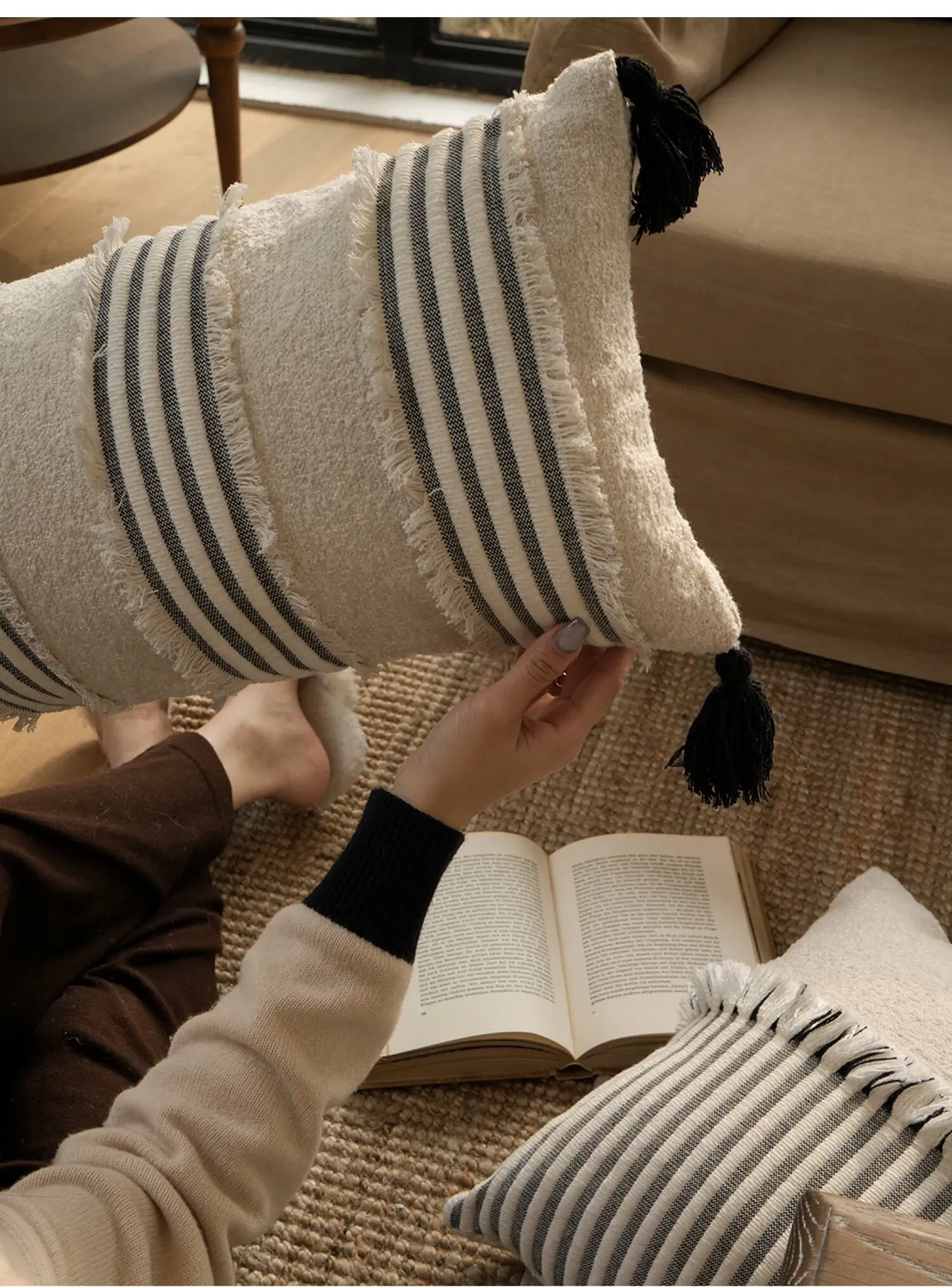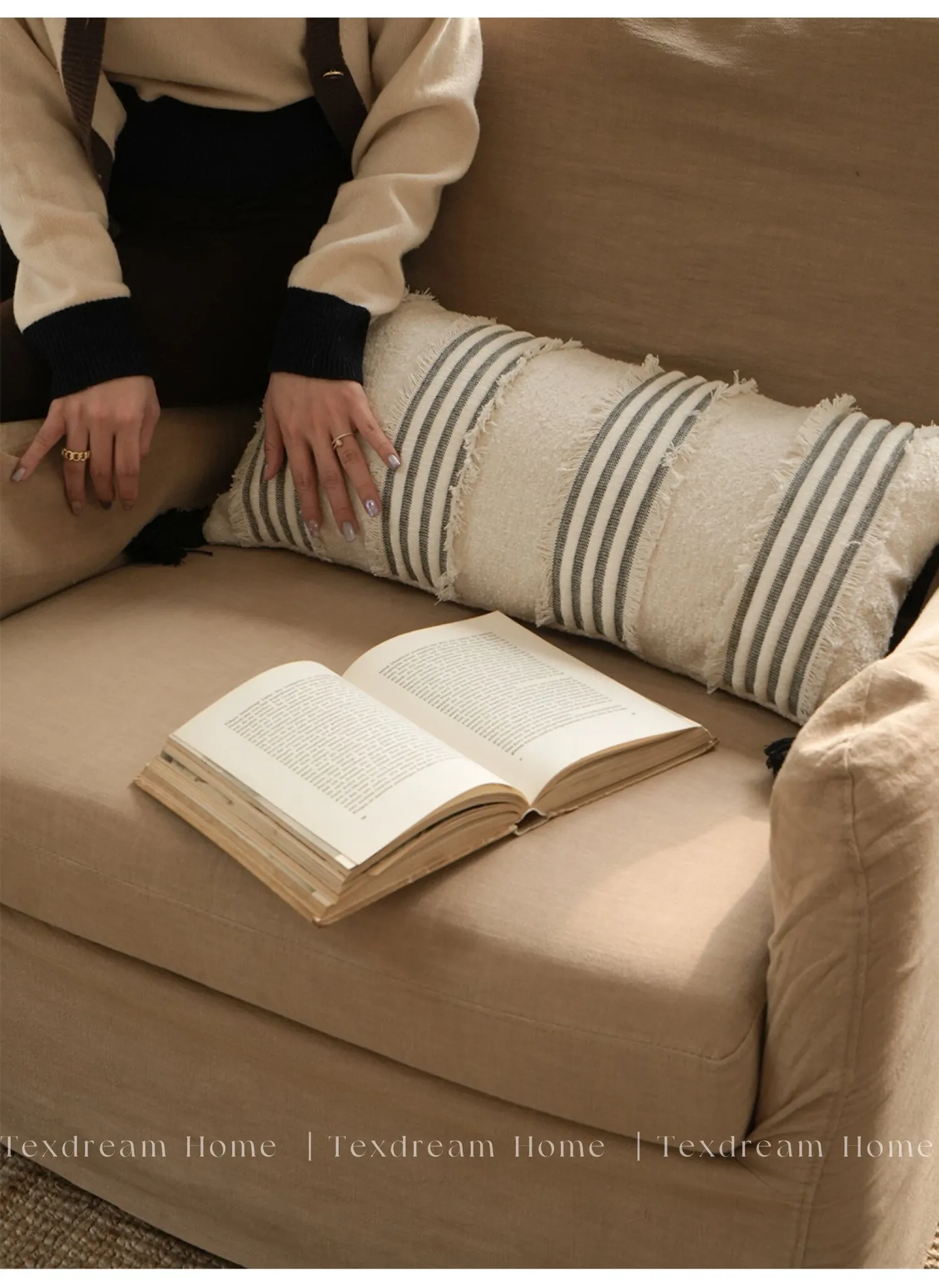 Texdream Attitude French Vintage Woven Fringe Throw Pillow Cover – A Chic and Sophisticated Addition to Your Living Room Sofa, Perfect for Embracing Wabi-Sabi Aesthetics.