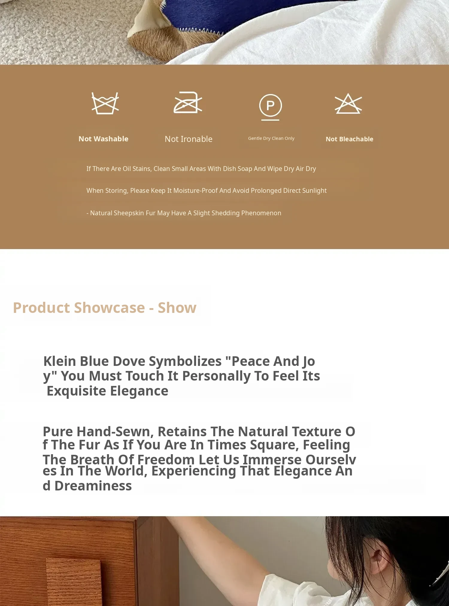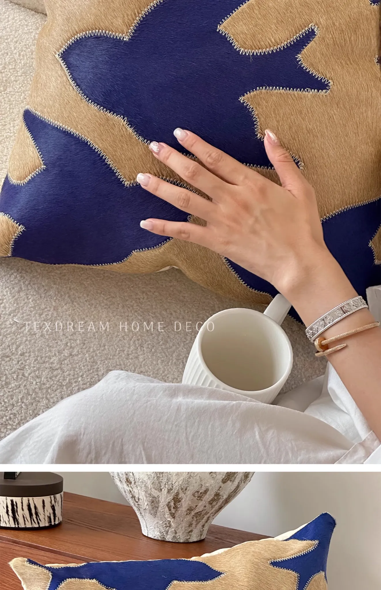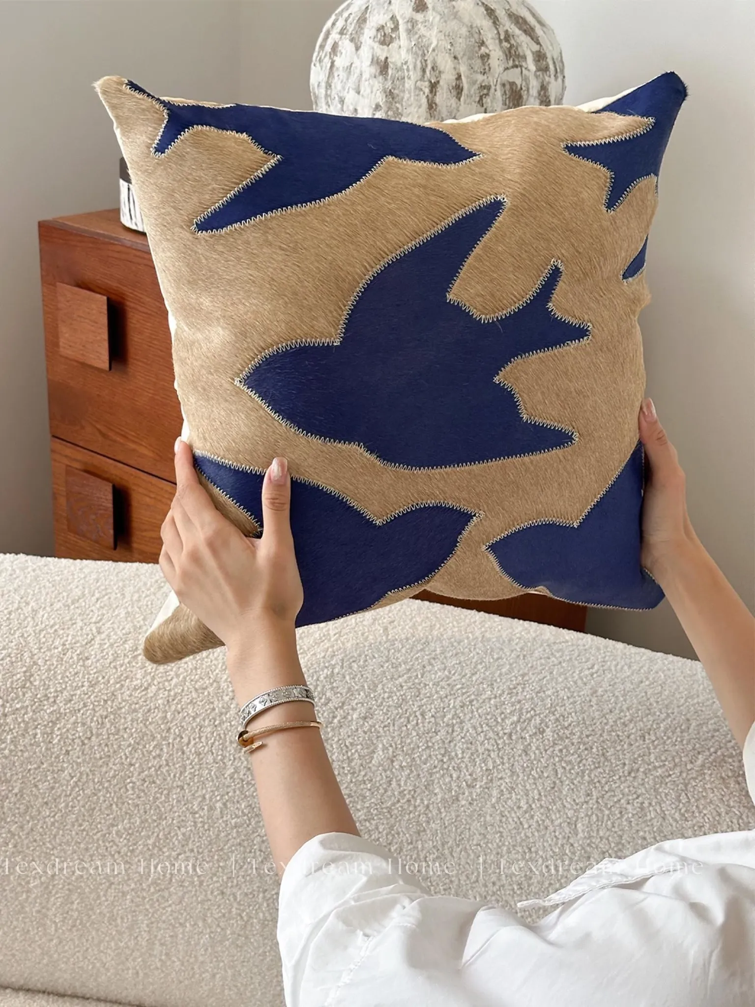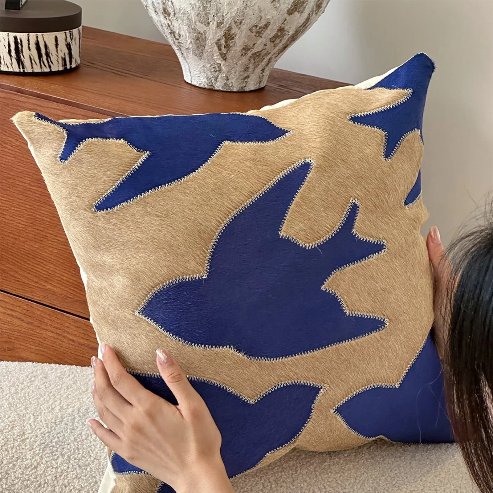 Texdream Attitude Handmade Pillow in Klein Blue with Real Cowhide - Peace Dove Design and Exquisite External Stitching for Ultimate Comfort