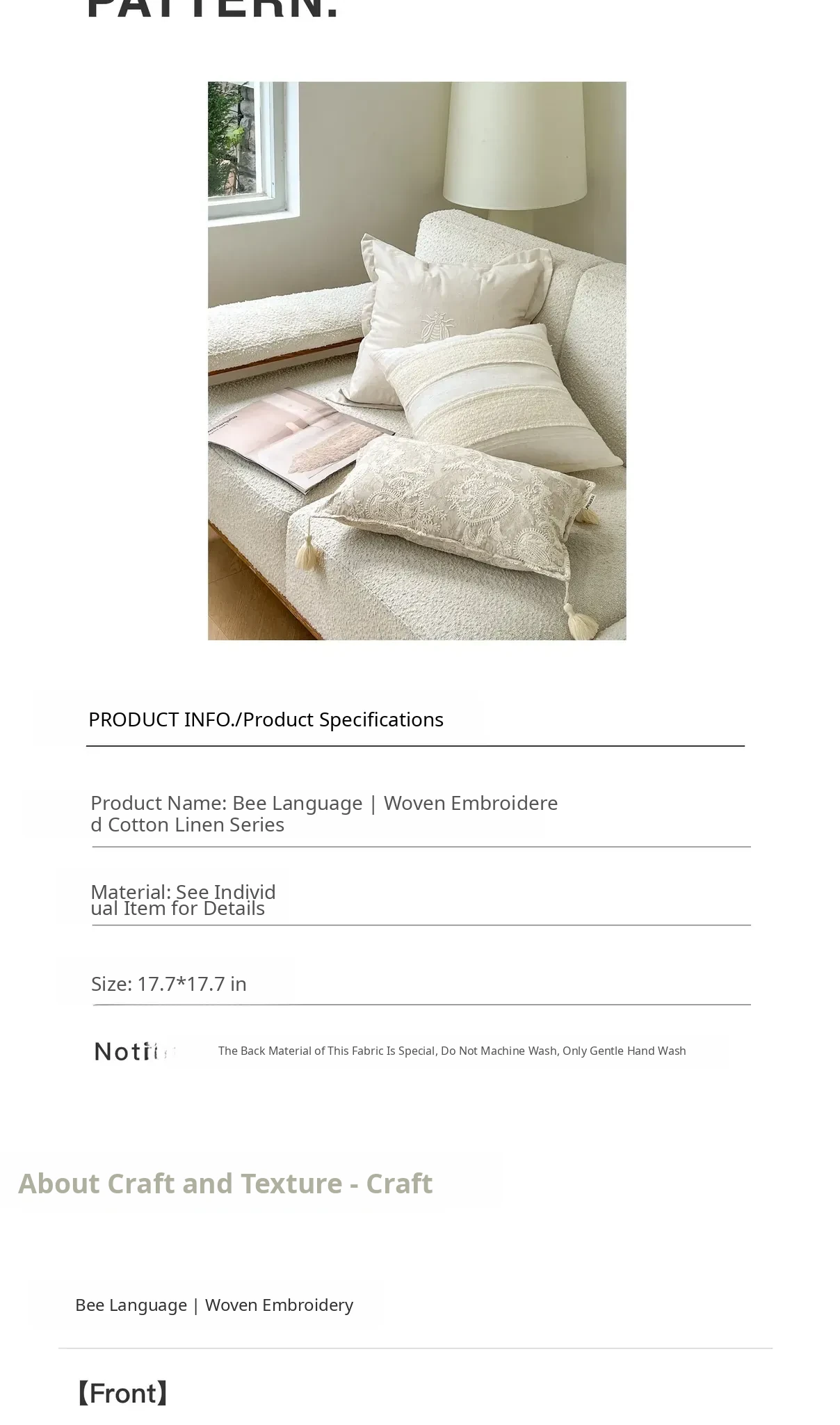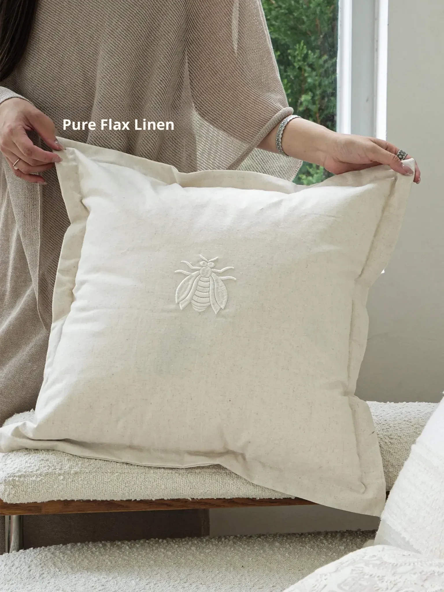 [Total Length 21.65in*21.65in| Bee Linen Pillow]
