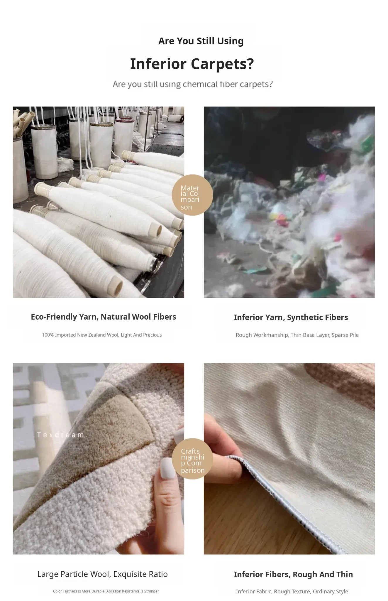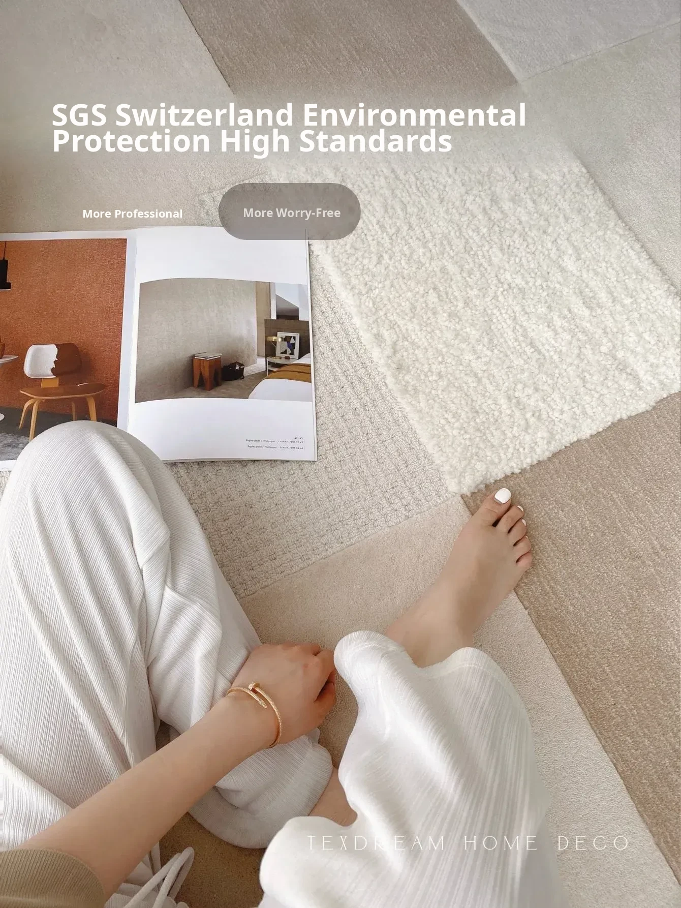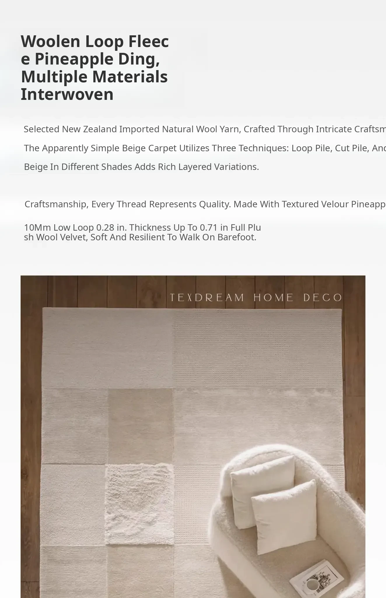 Texdream Attitude Imported Wool Handmade Carpet - Premium Area Rug for Living Room and Bedroom, Formaldehyde-Free, Perfect for Elevating Your Home Décor