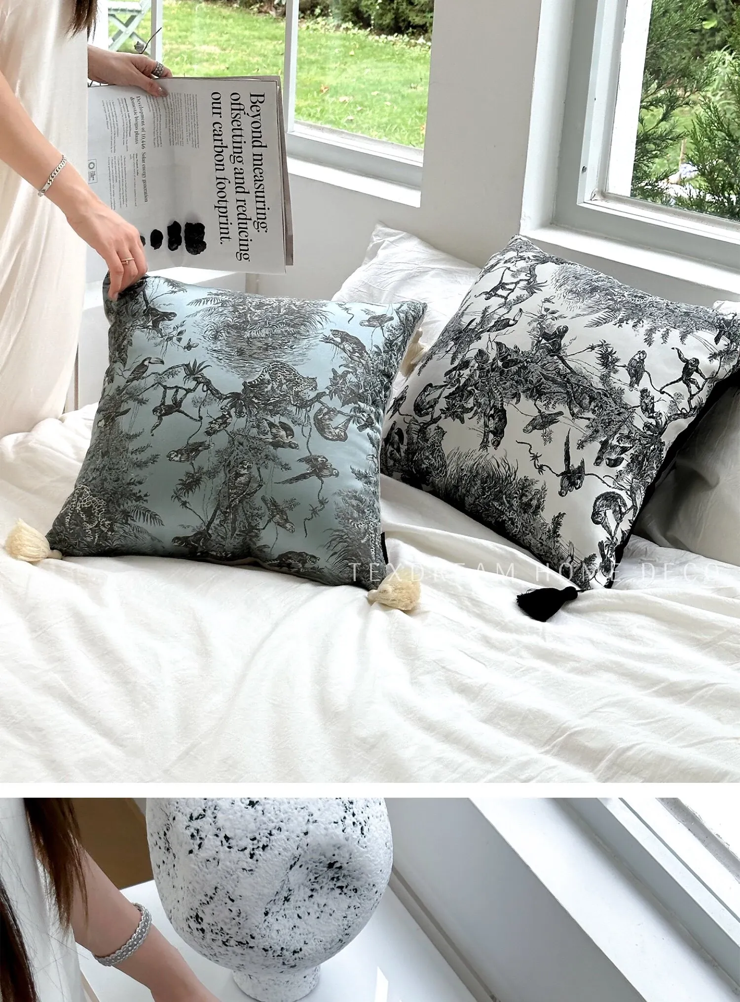 TEXDREAM Attitude Ink Wash Tassel Modern Luxury Sofa Cushion - Premium Satin Headboard Pillow & Window Seat Pad, Elevate Your Living Space with Elegance and Comfort