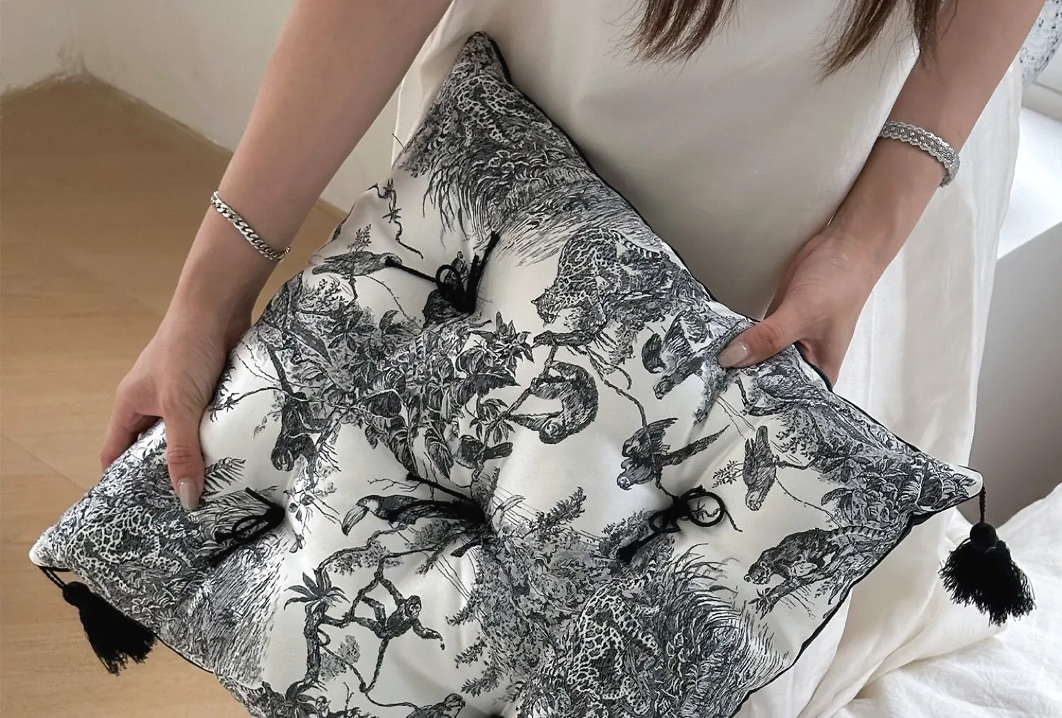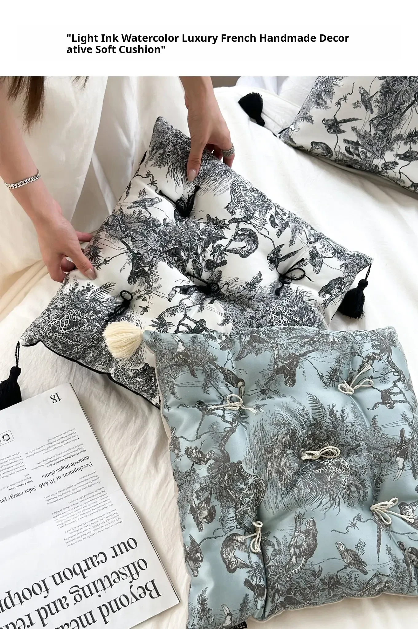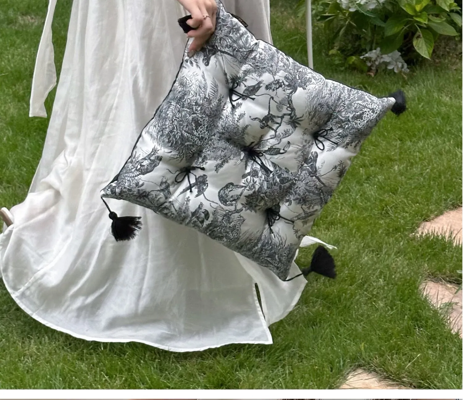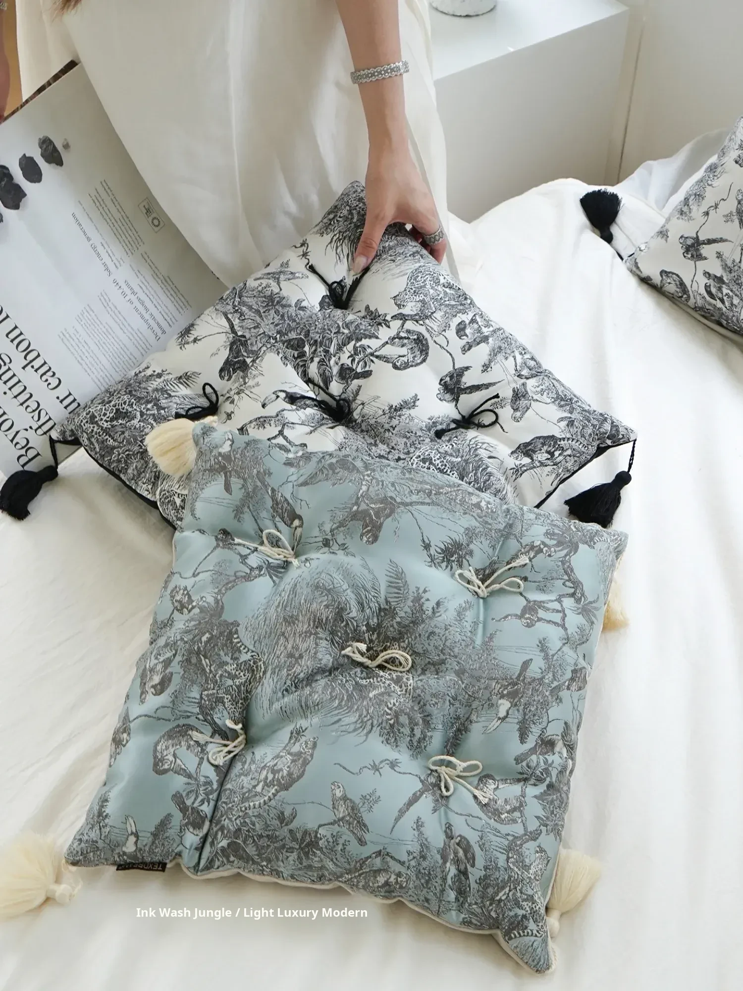 Ink Wash Tassel Satin Cushion| Black】