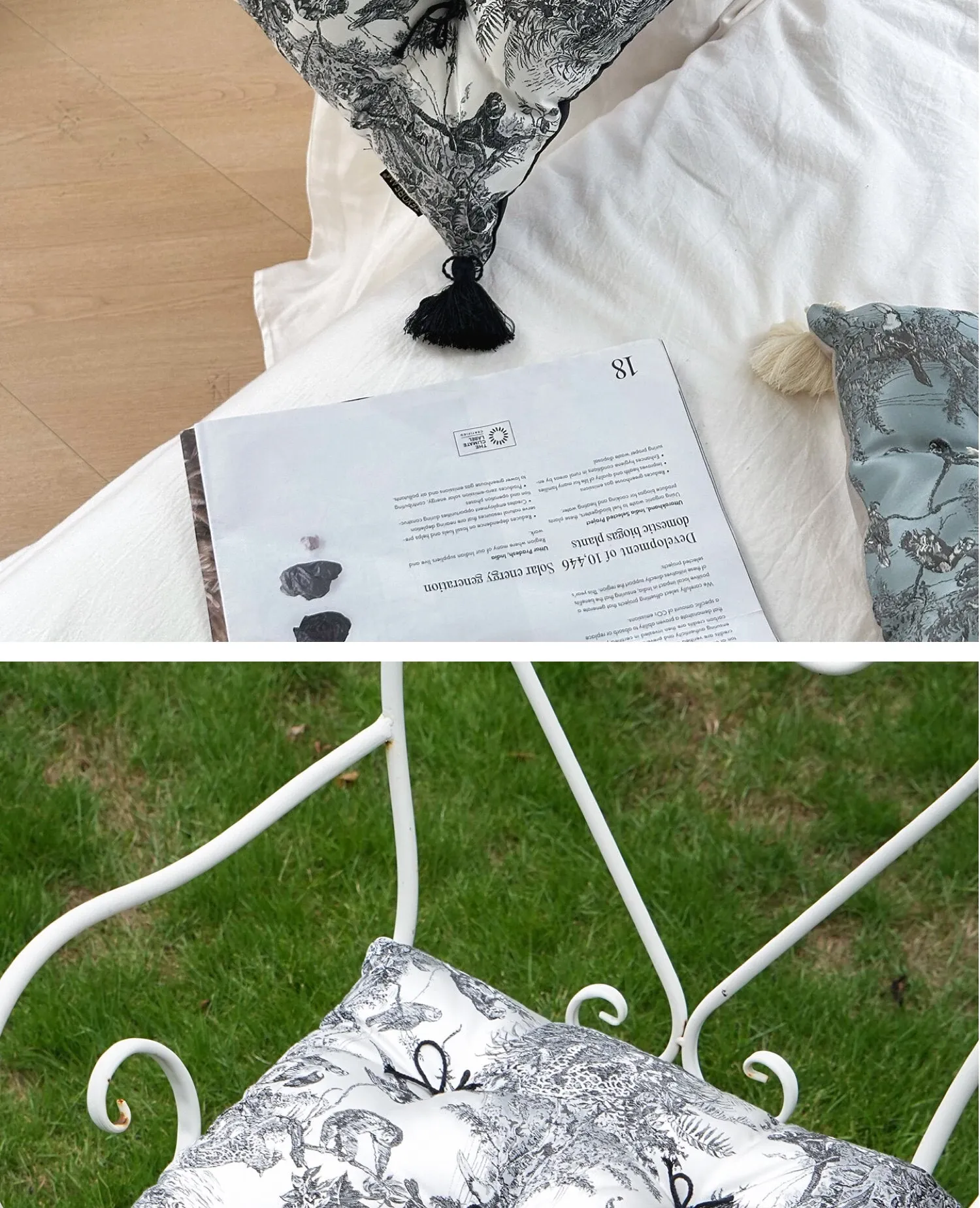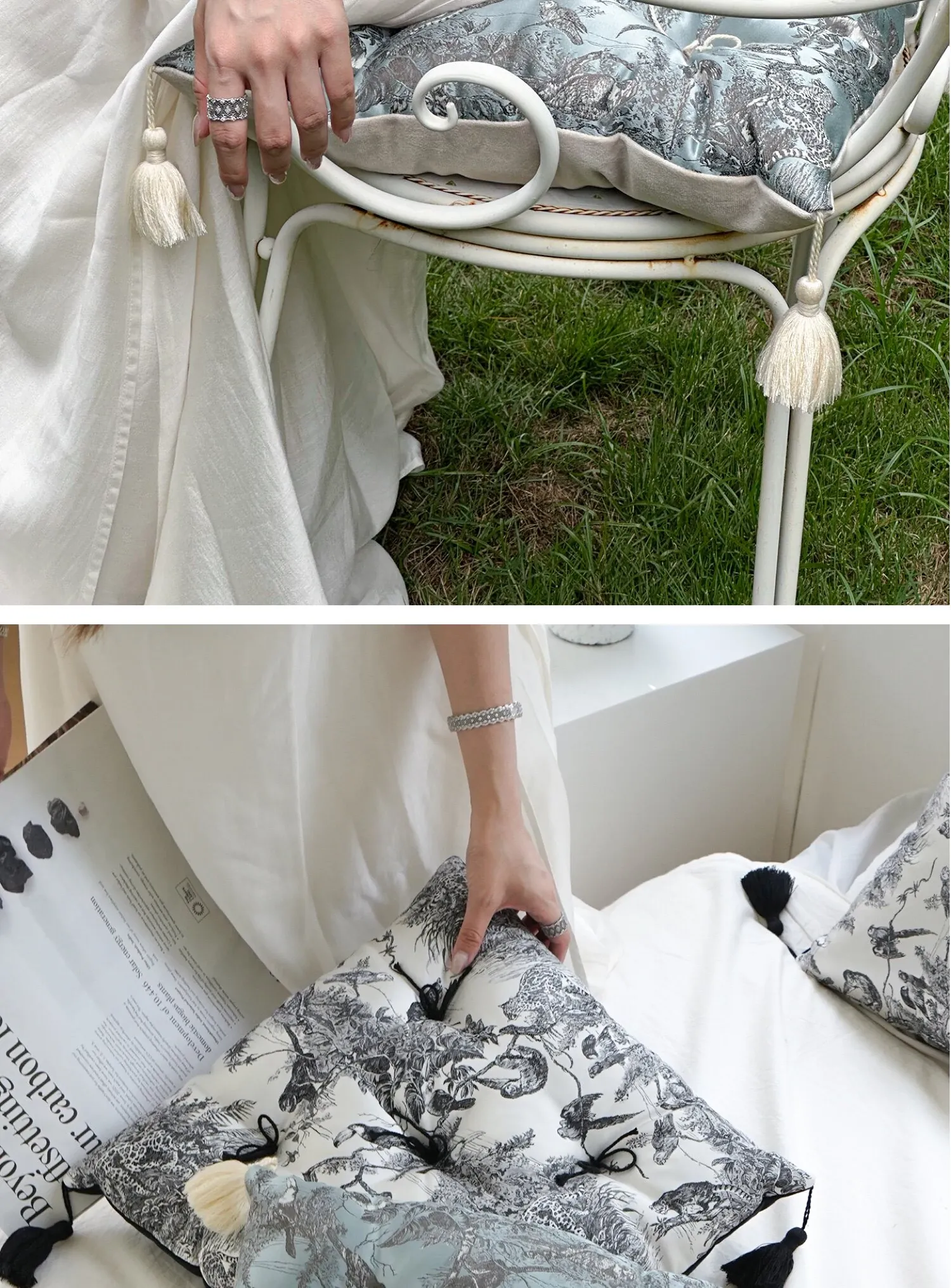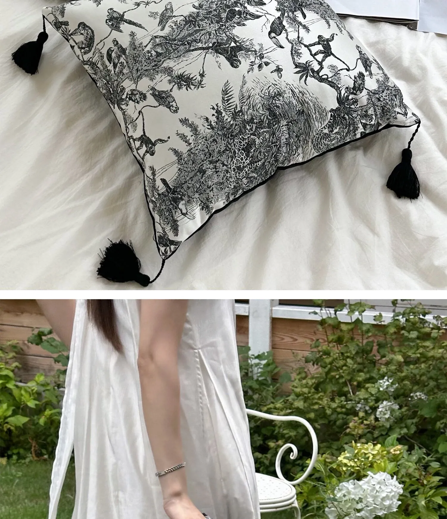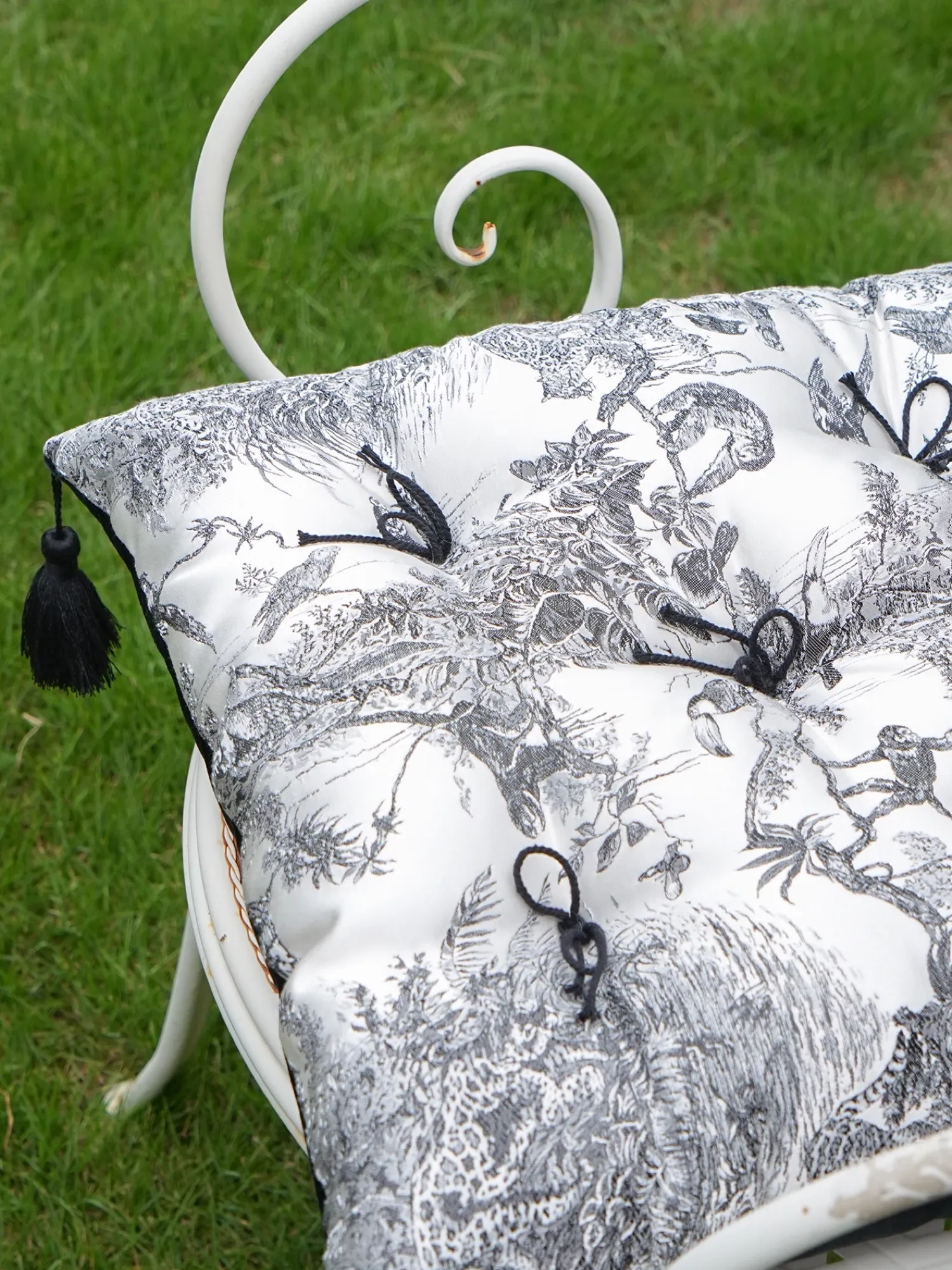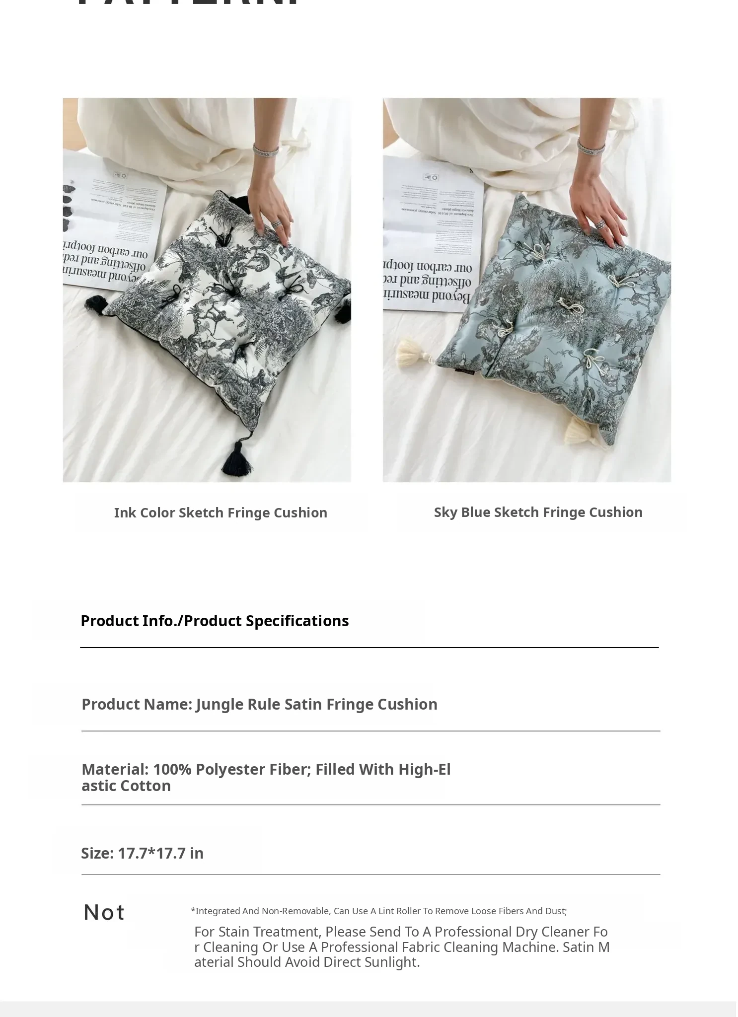 Ink Wash Tassel Satin Cushion| Black】