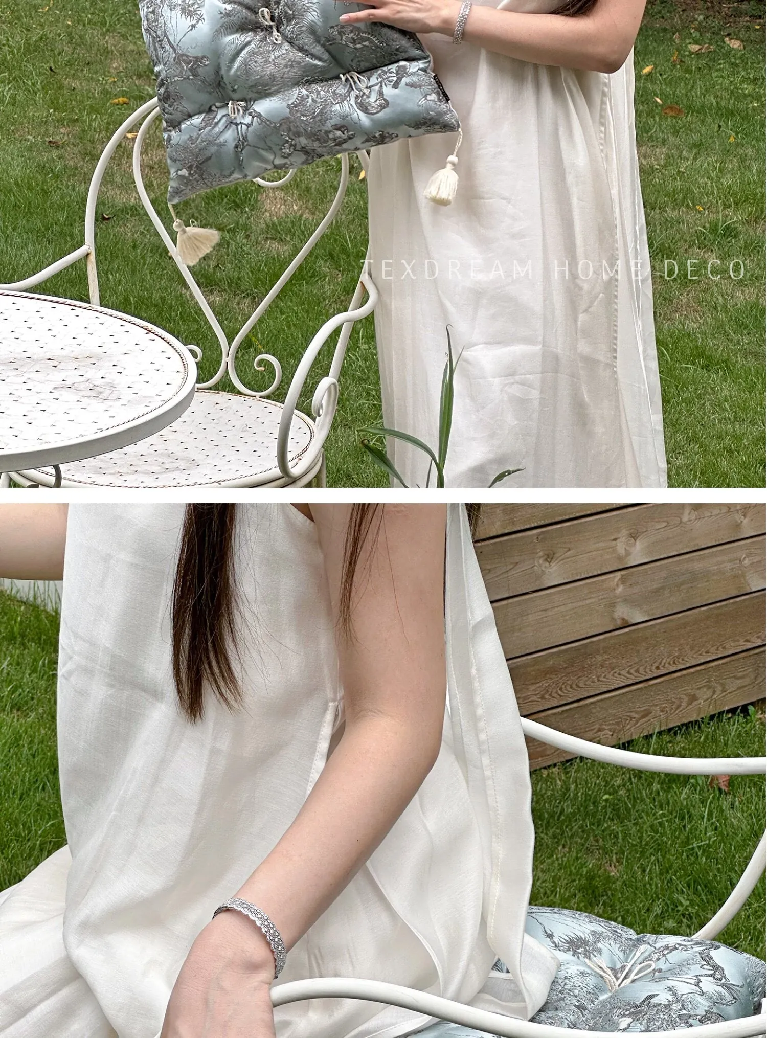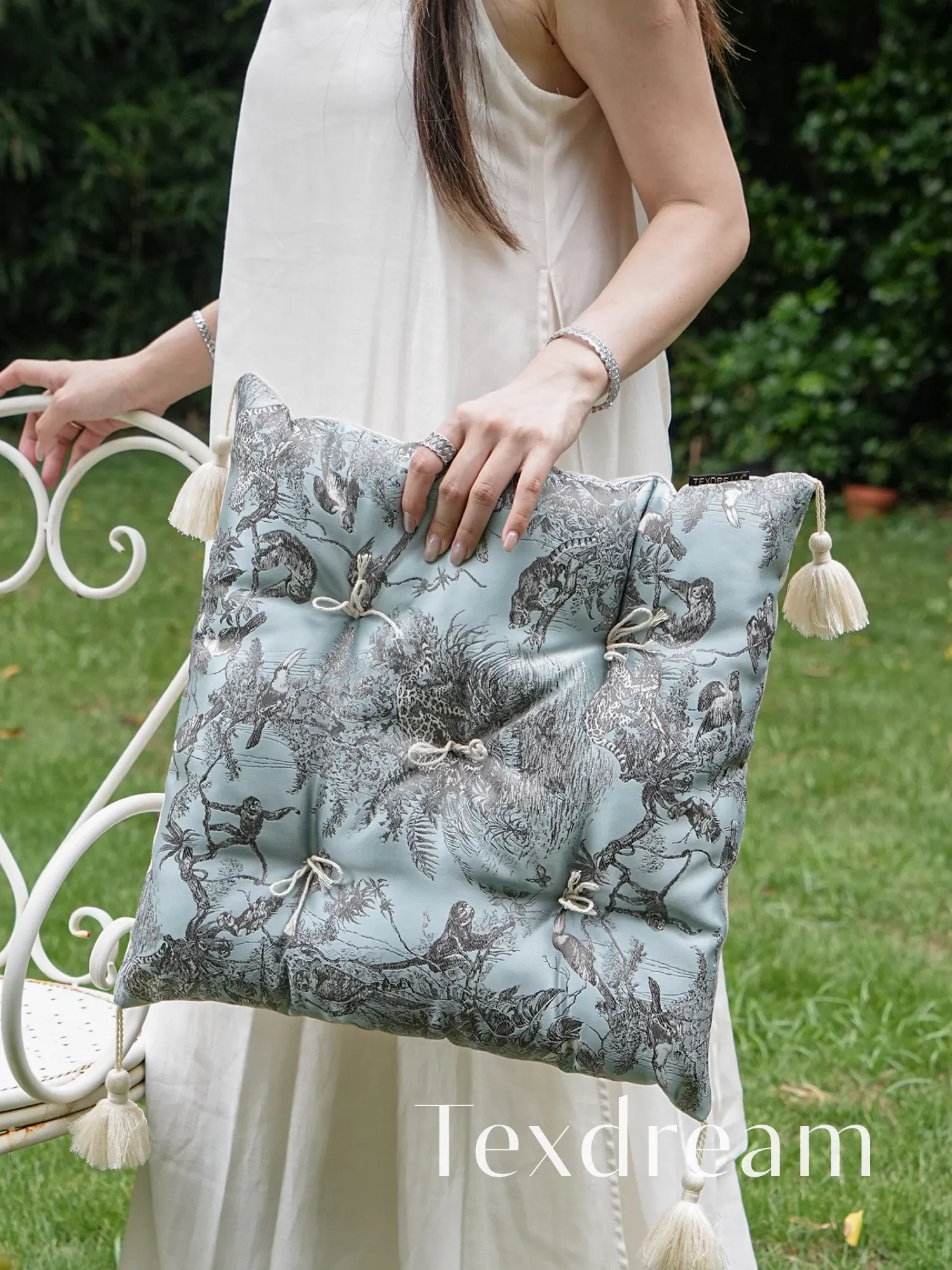 TEXDREAM Attitude Ink-Wash Satin Cushion – Vintage French Style Dining Chair Pad, Perfect for Office Chairs and Bay Window Seating