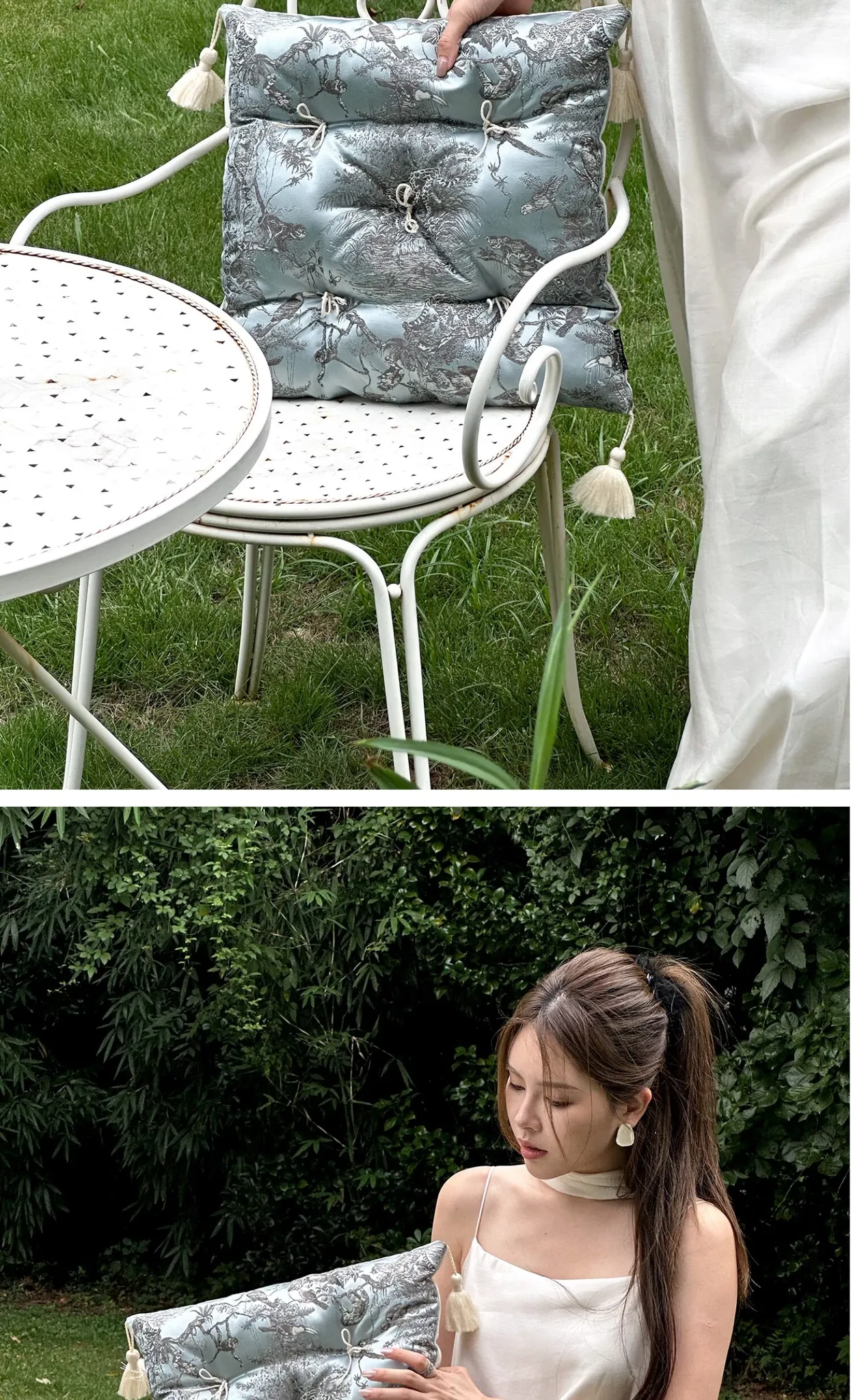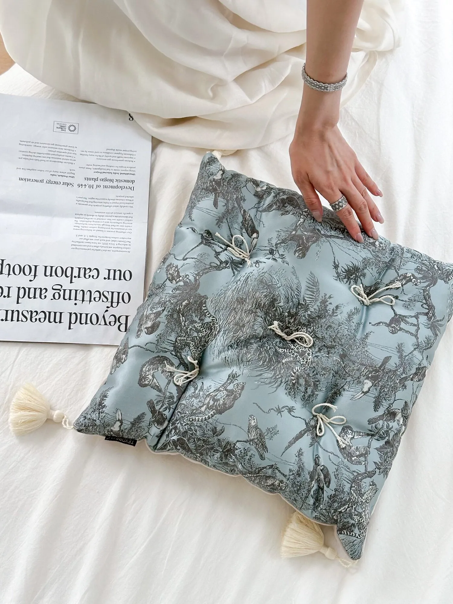 Ink Wash Tassel Satin Cushion| Green]