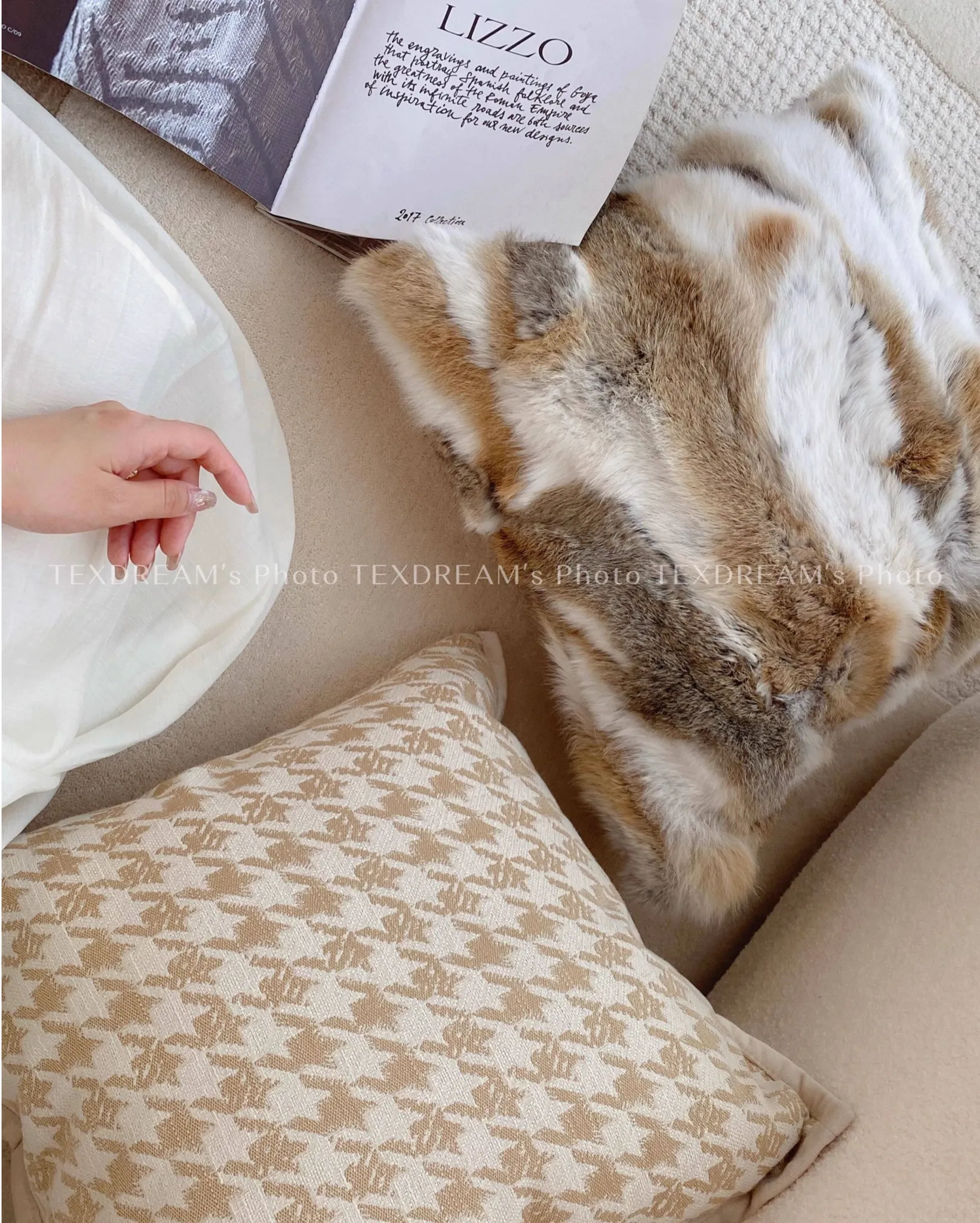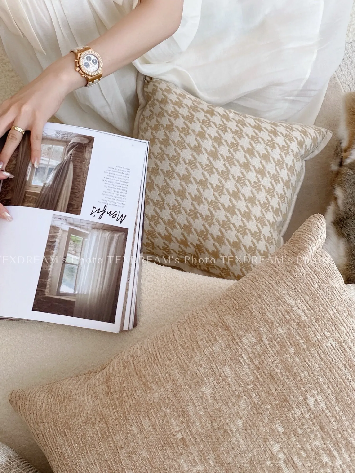 [Rice Color Houndstooth Pillow]