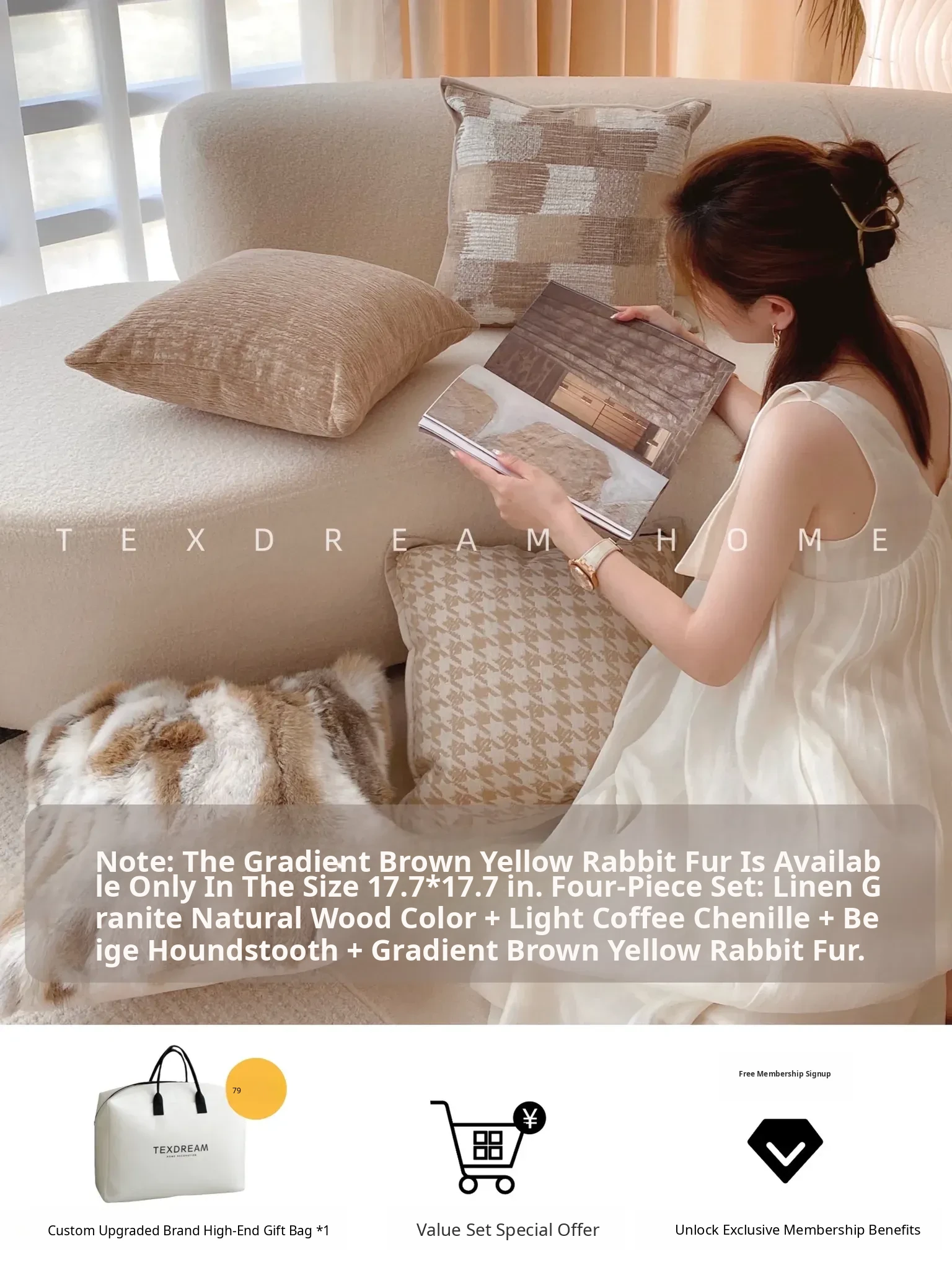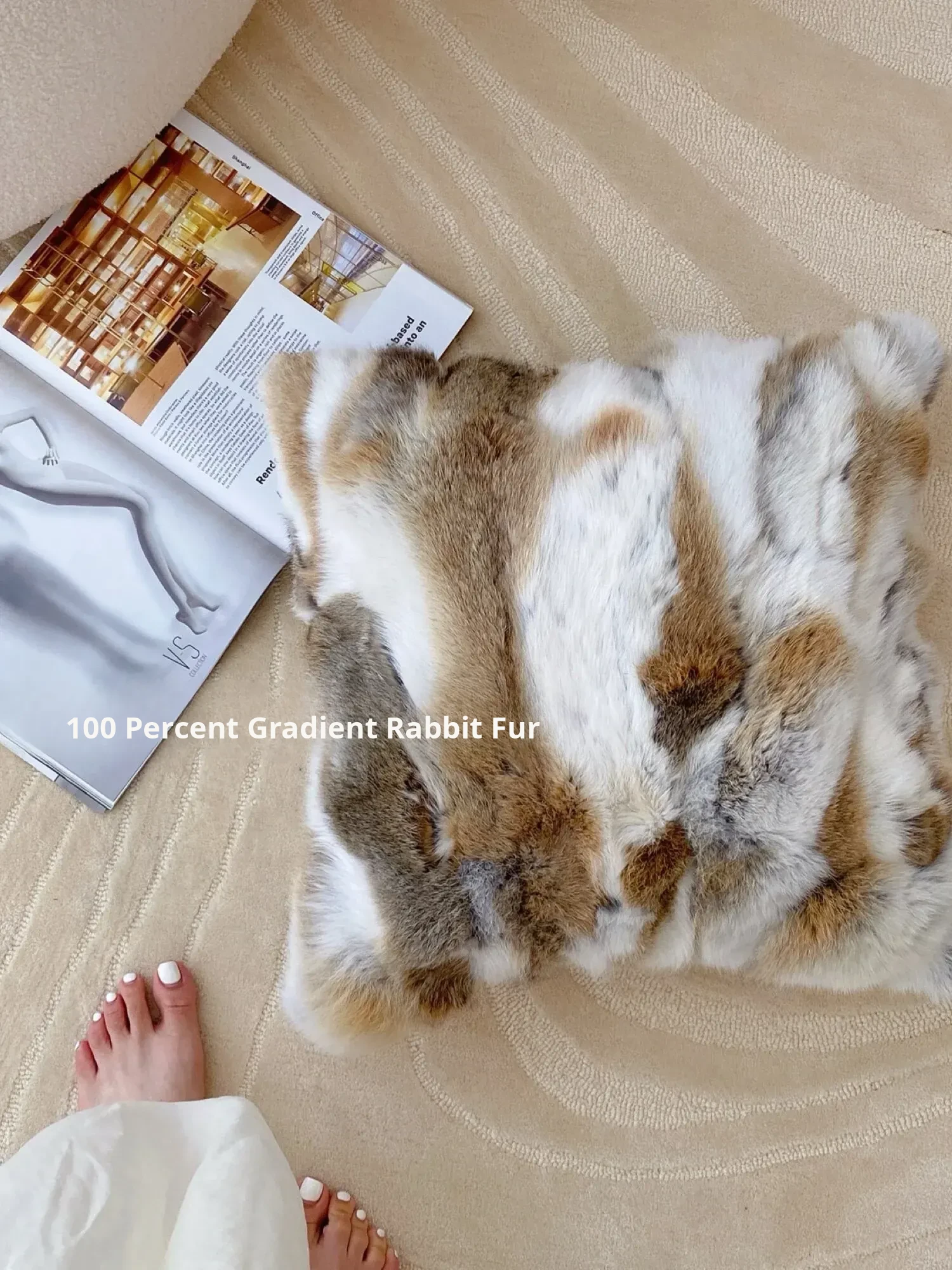 [17.72in*17.72in Rex Rabbit Fur-Gradient Brown]