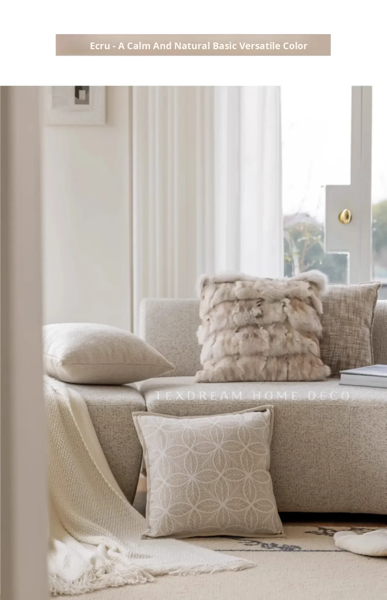 Texdream Attitude Linen Texture Cotton-Linen Throw Pillow - Nordic Minimalist Sofa Cushion with Lumbar Support and Insert Included