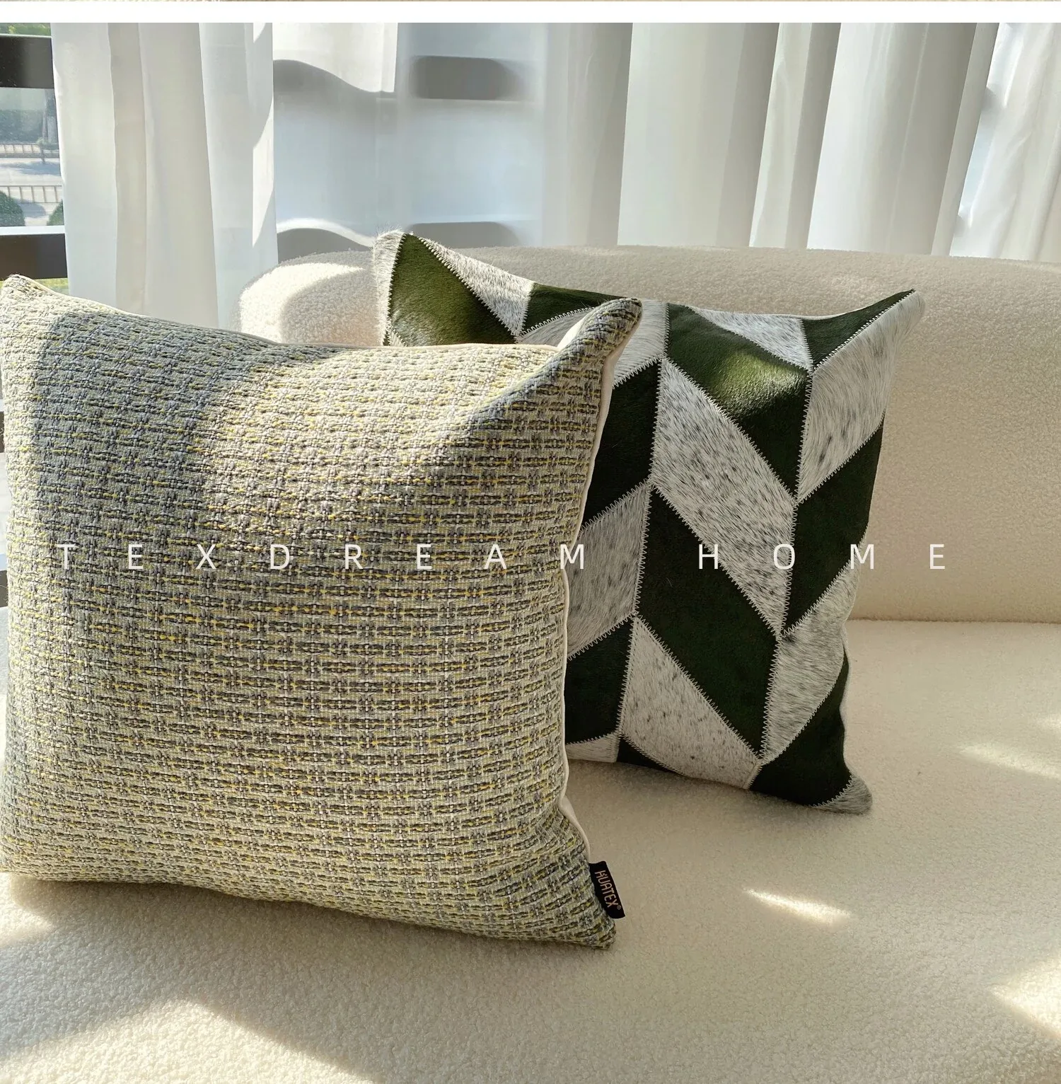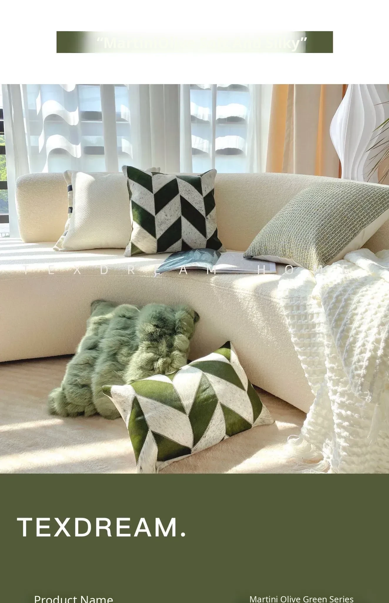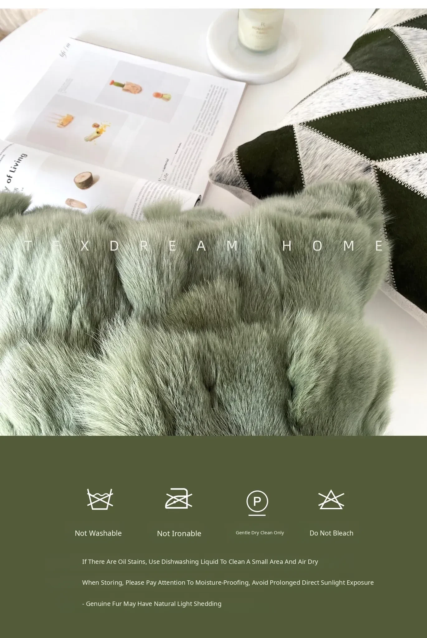 Texdream Attitude Martini Green Luxury Genuine Leather Fox Fur Sofa Pillow - Chic Cushion for Living Room Comfort