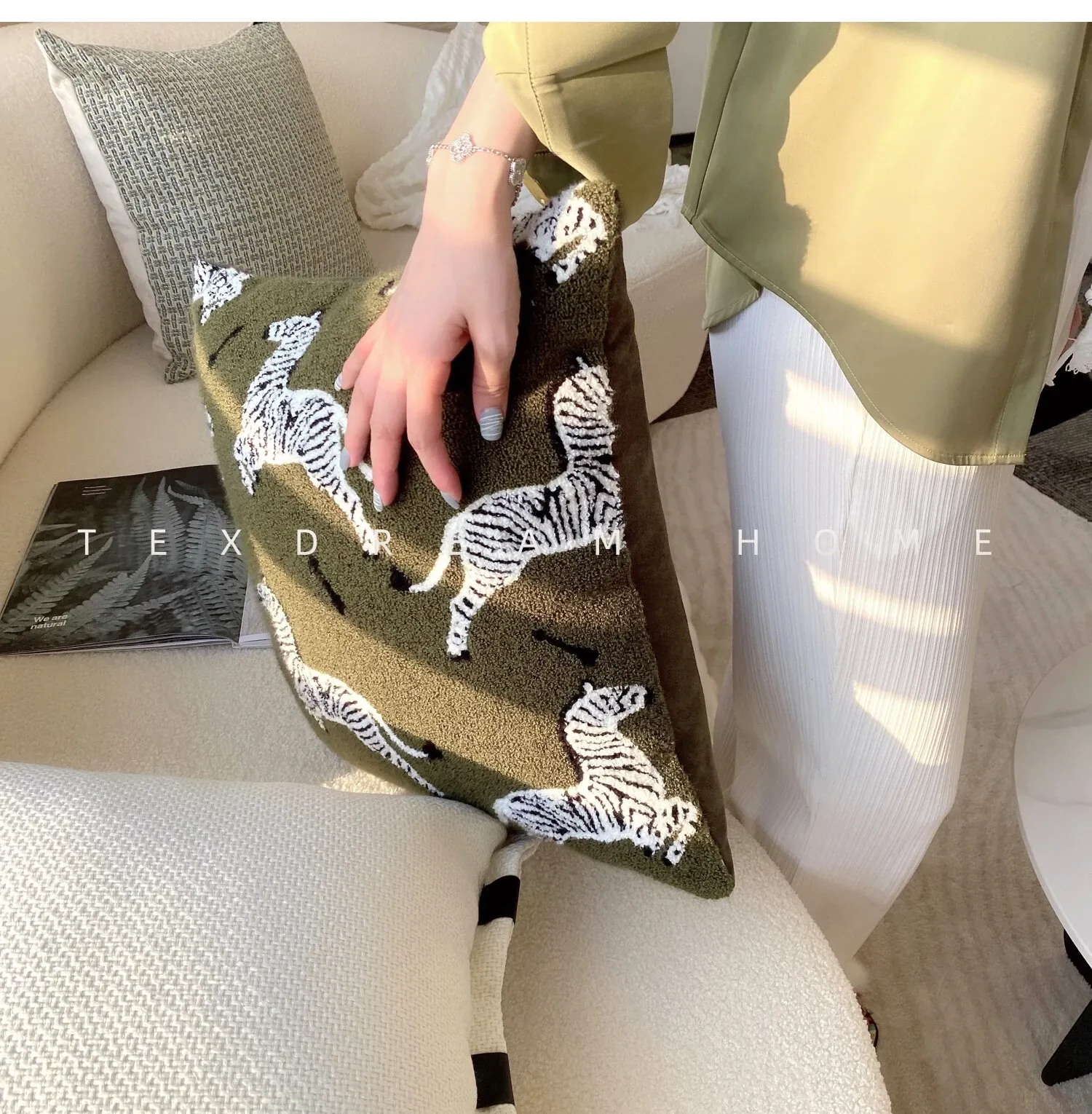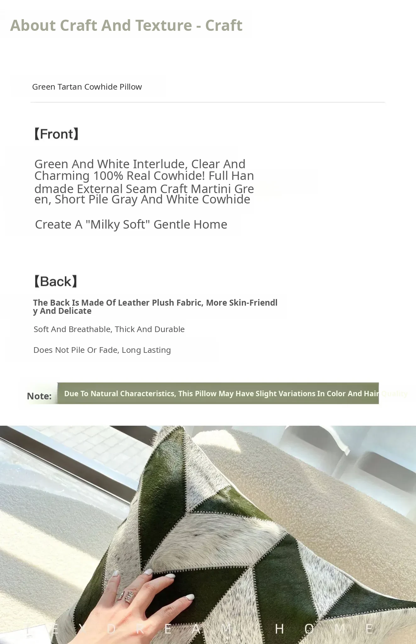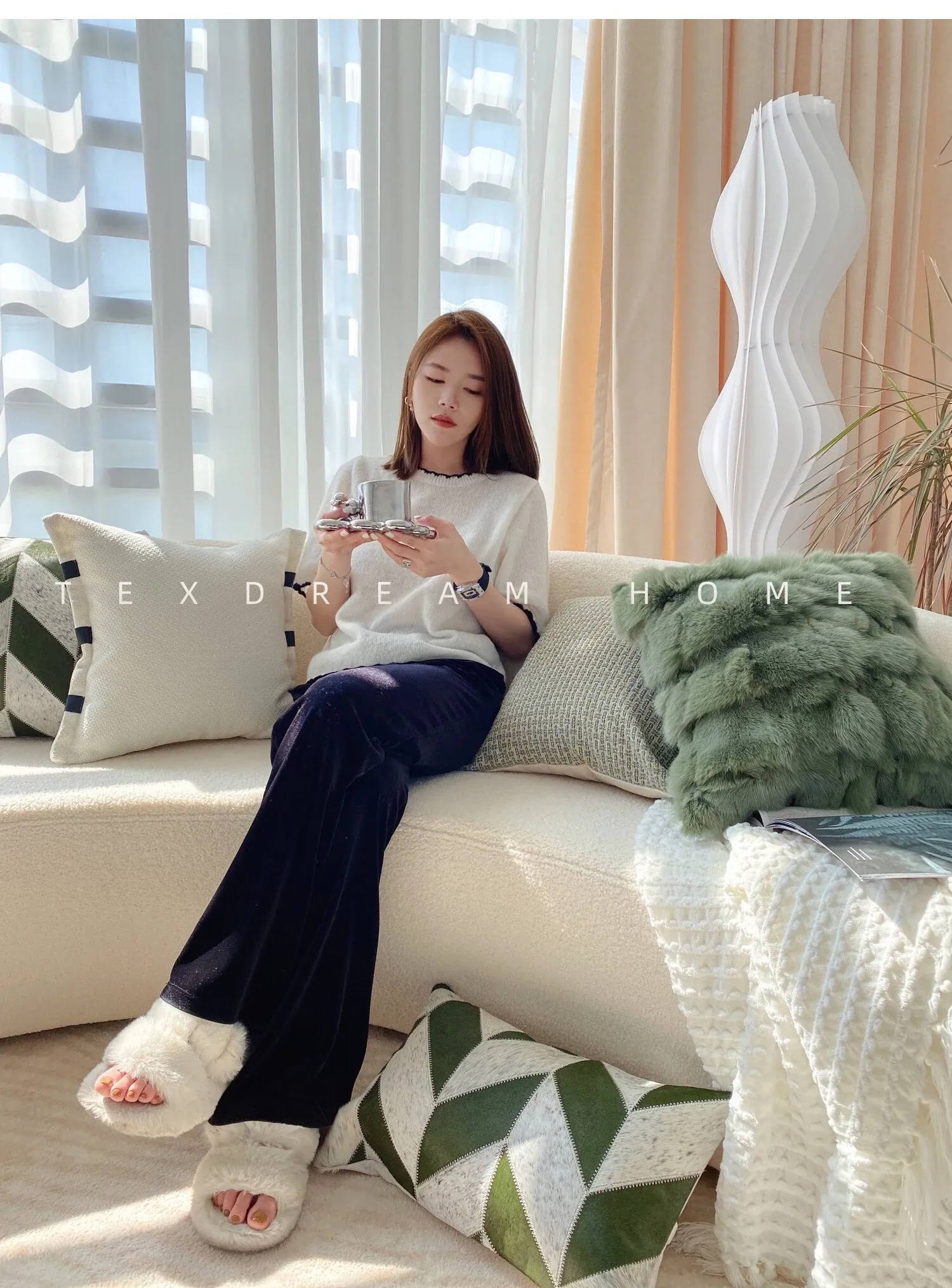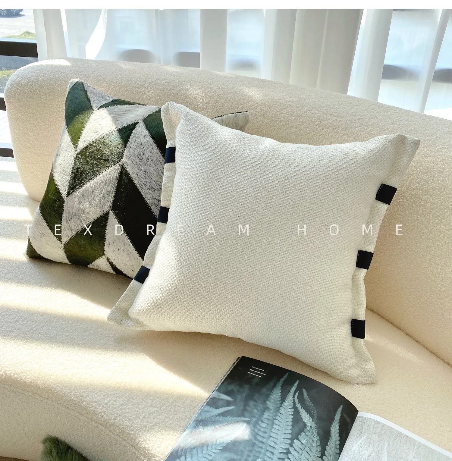 Texdream Attitude Martini Green Luxury Genuine Leather Fox Fur Sofa Pillow - Chic Cushion for Living Room Comfort