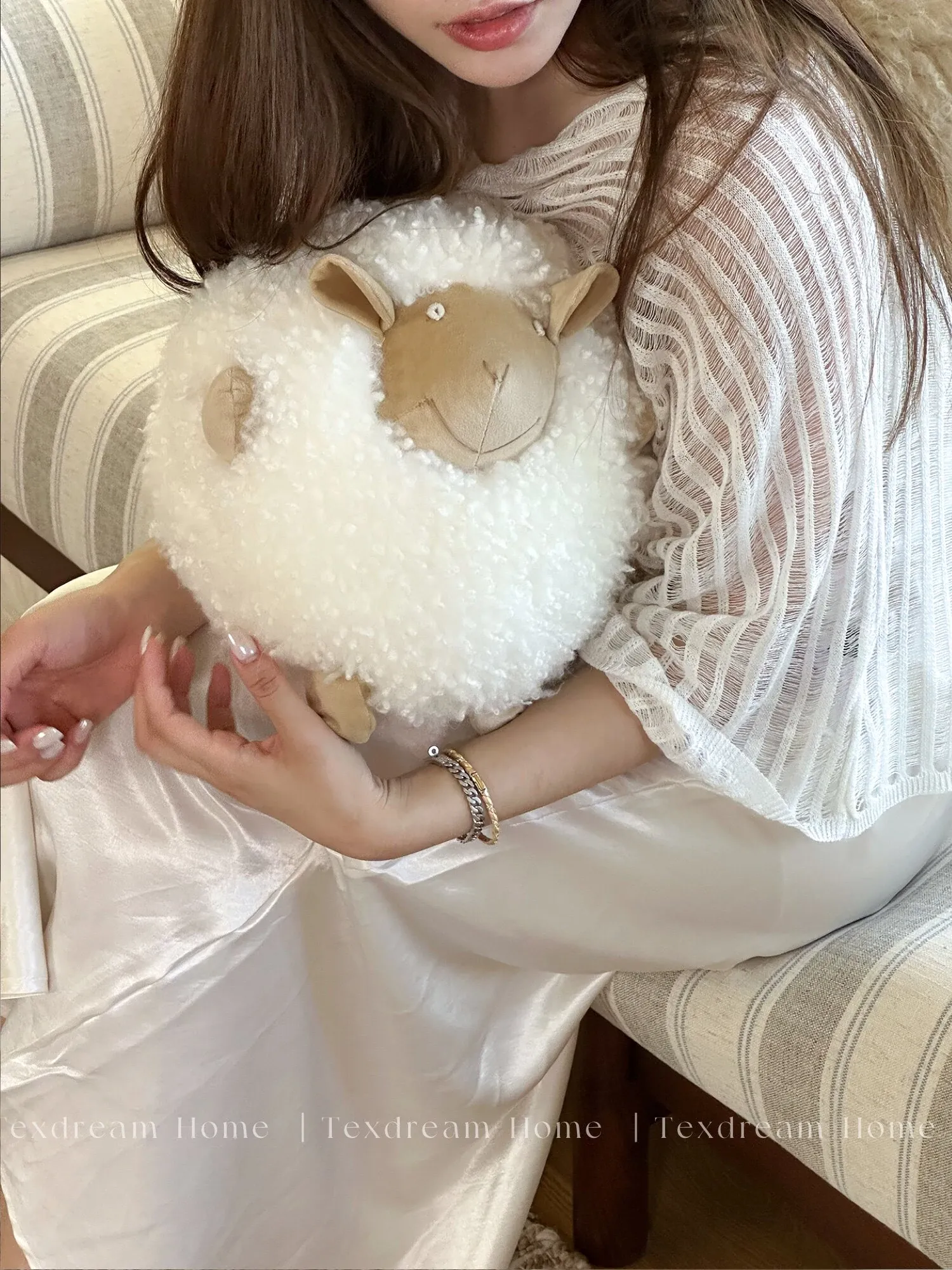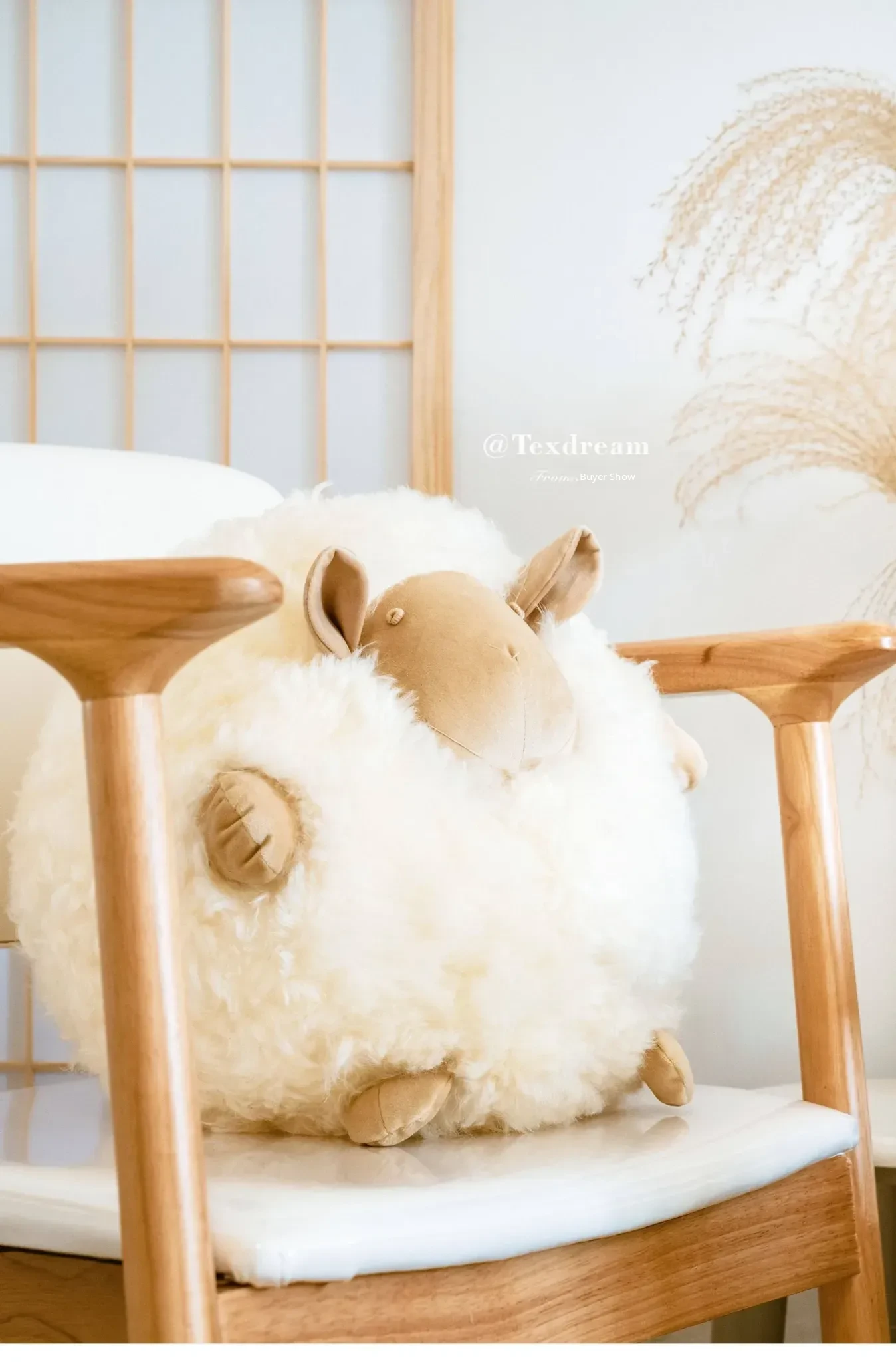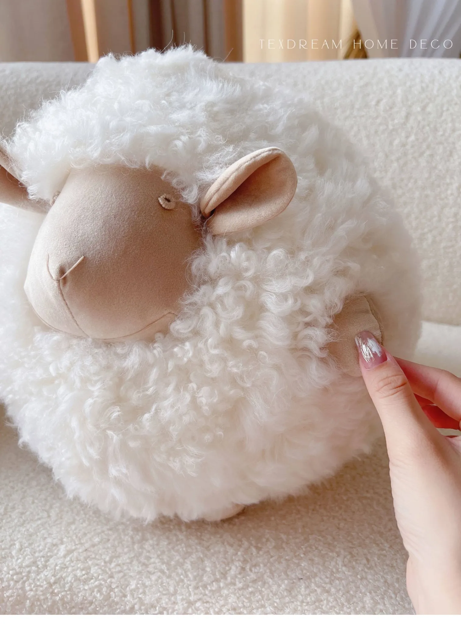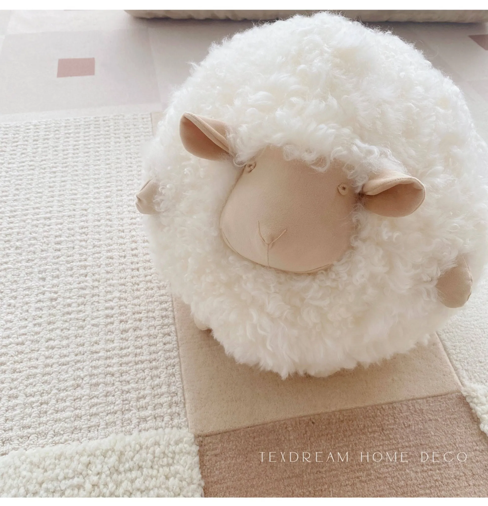 Texdream Attitude Mary’s Little Lamb Cute Cartoon Real Wool Round Pillow Stuffed Toy Decorative Cushion for Living Room