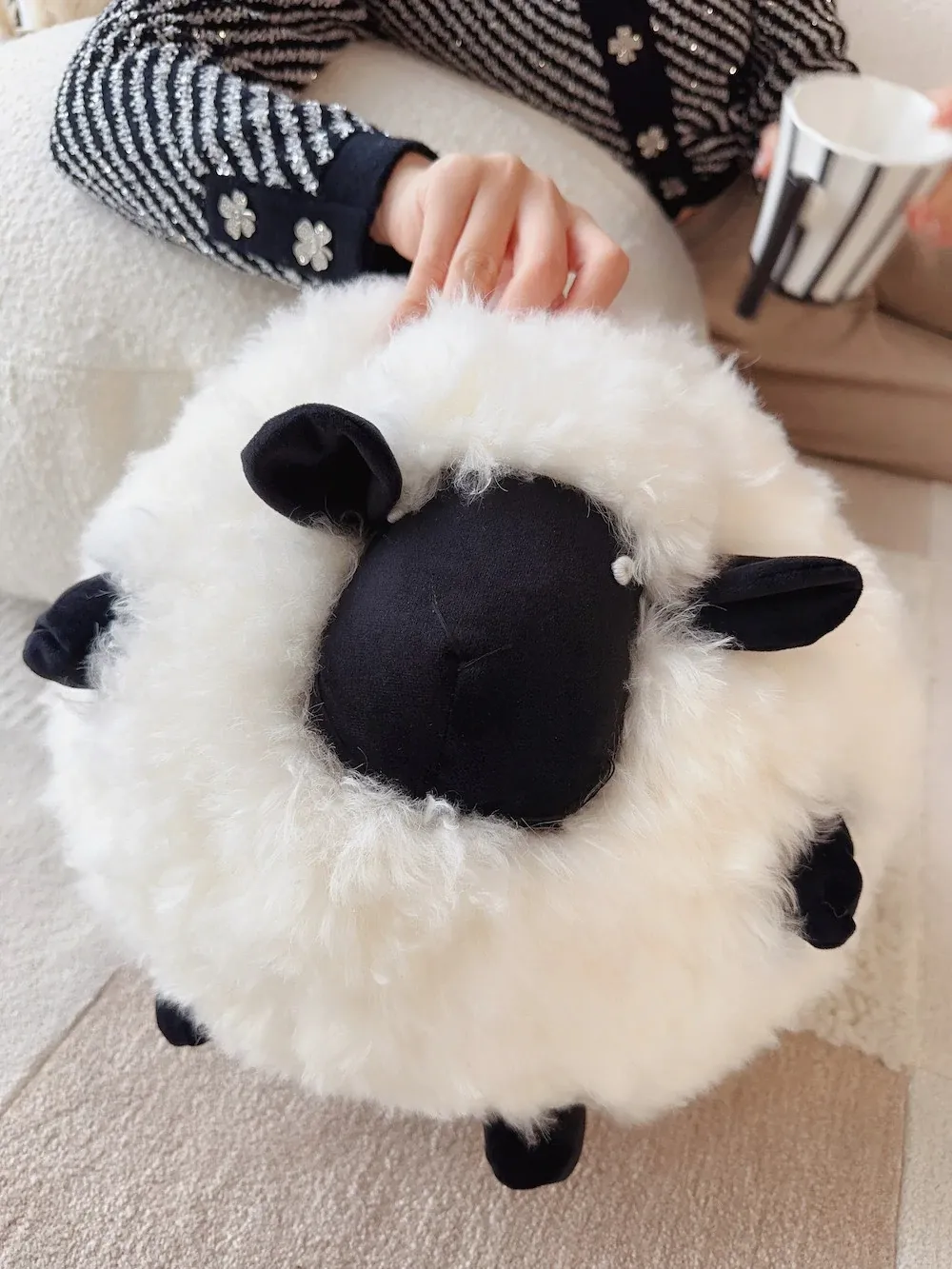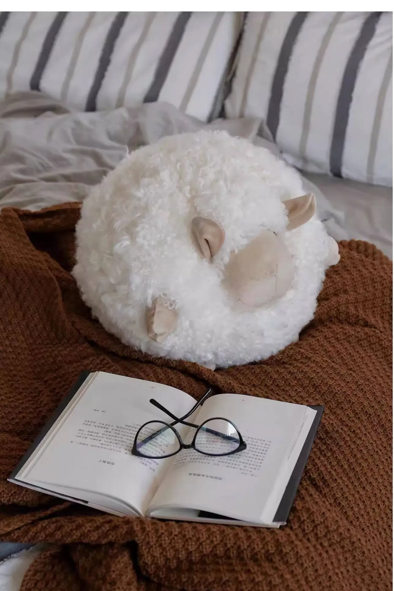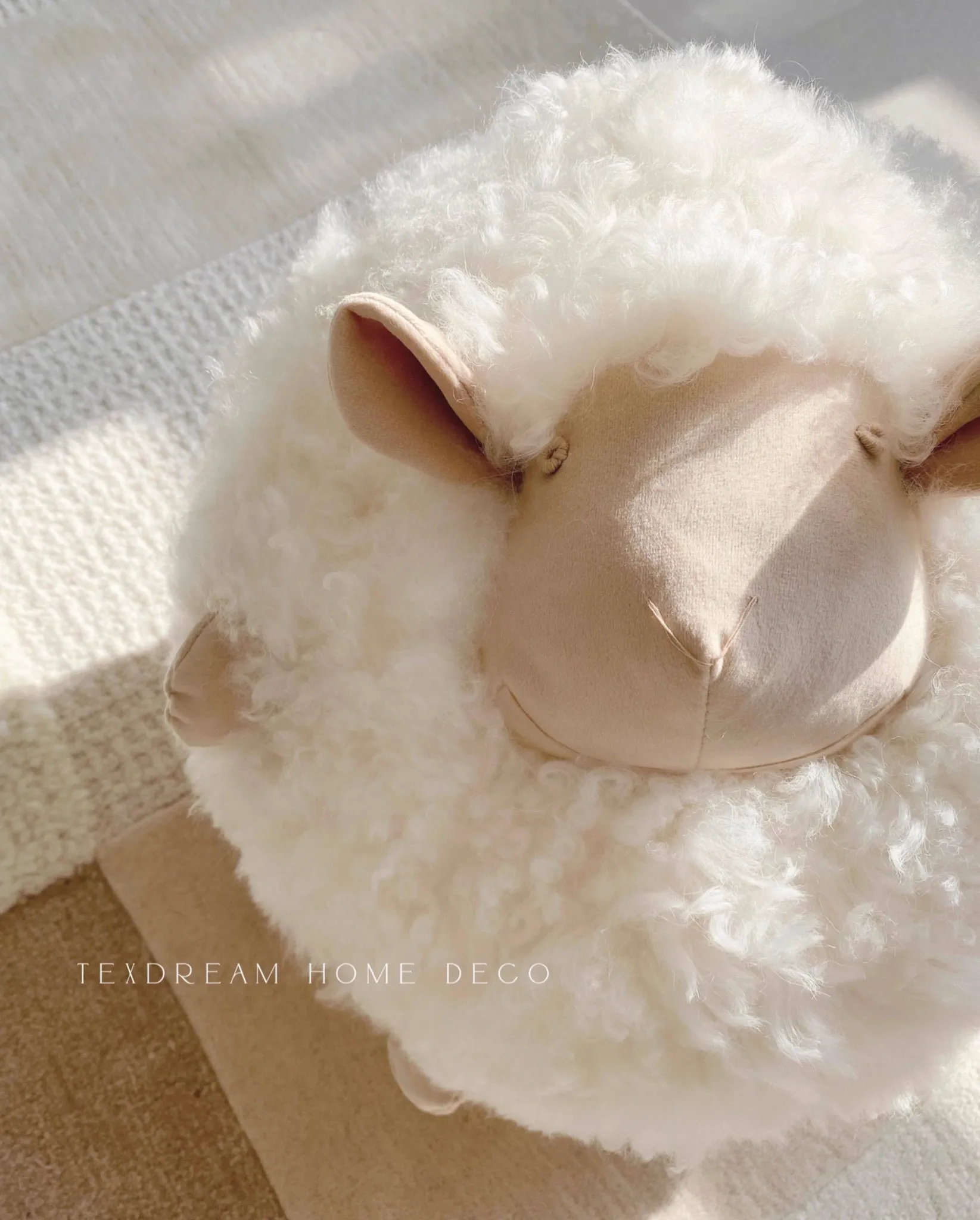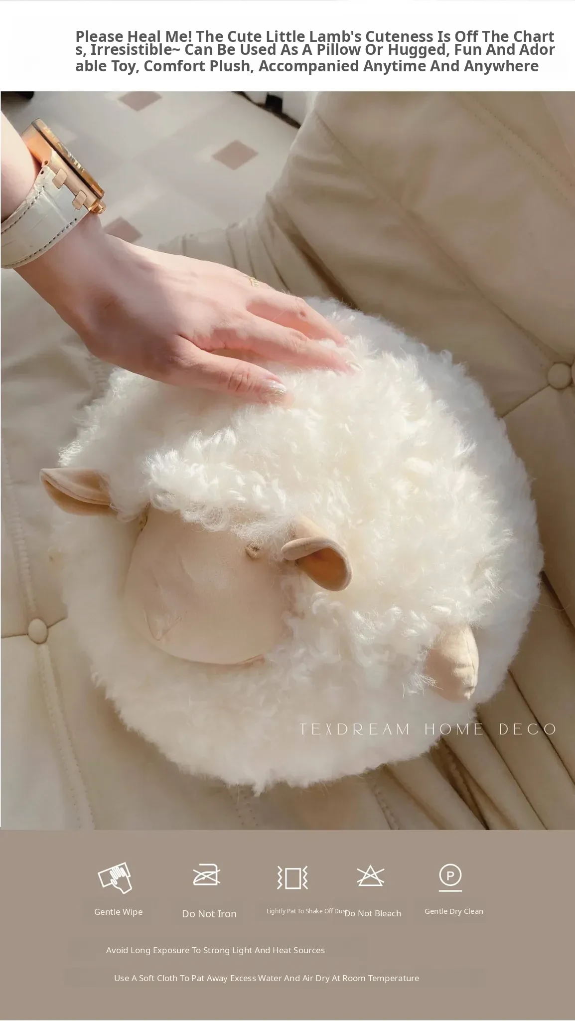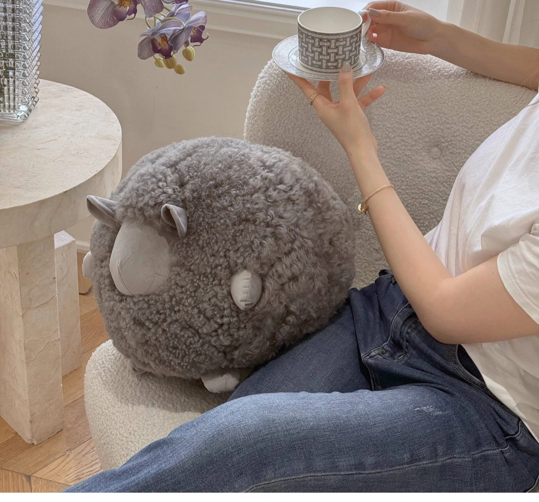 Texdream Attitude Mary’s Little Lamb Cute Cartoon Real Wool Round Pillow Stuffed Toy Decorative Cushion for Living Room