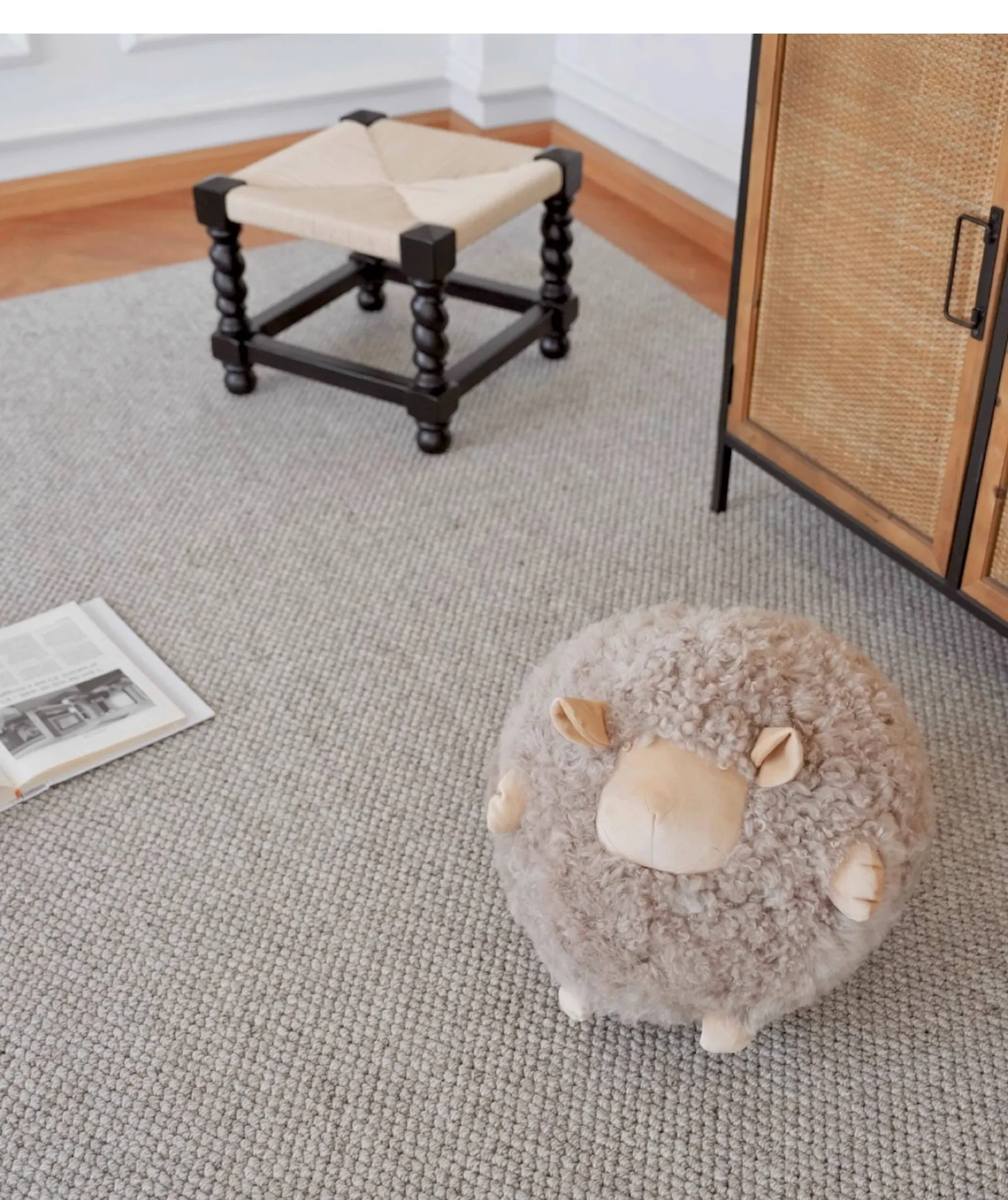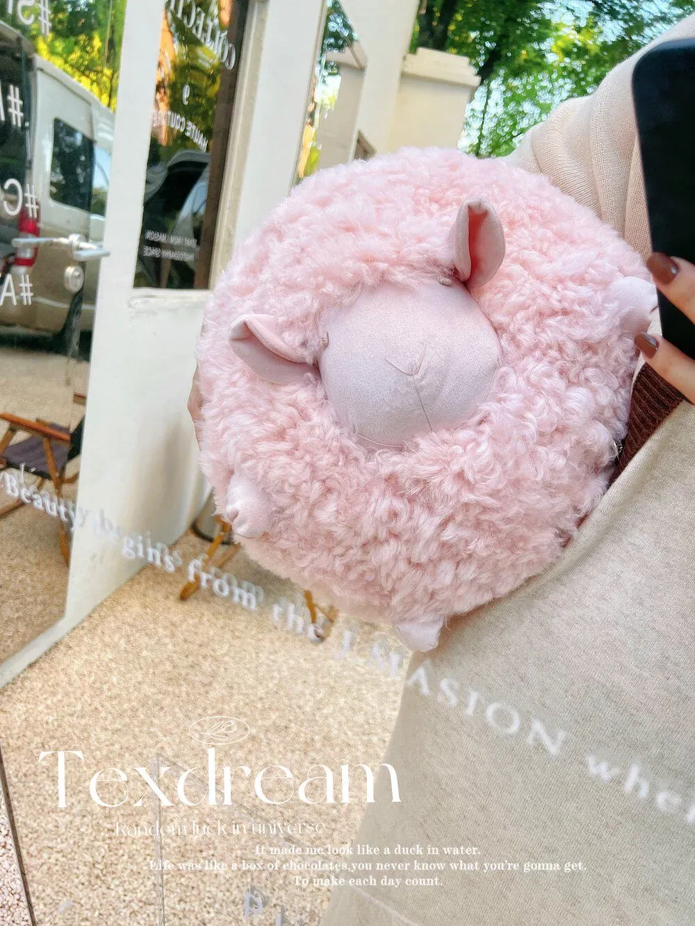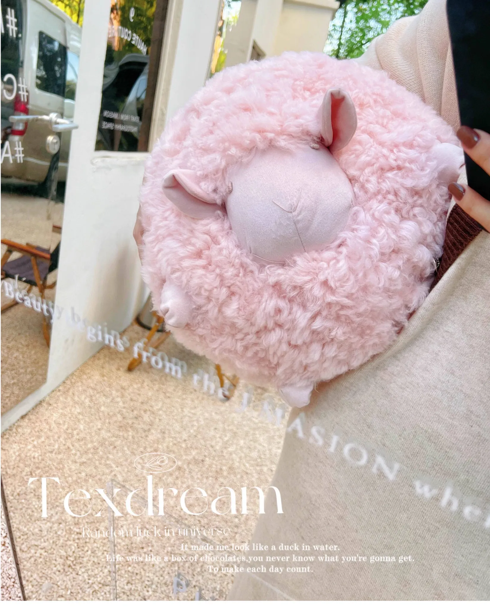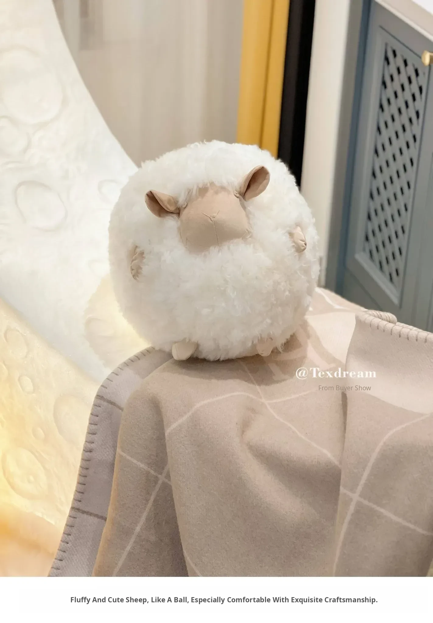 Texdream Attitude Mary’s Little Lamb Cute Cartoon Real Wool Round Pillow Stuffed Toy Decorative Cushion for Living Room