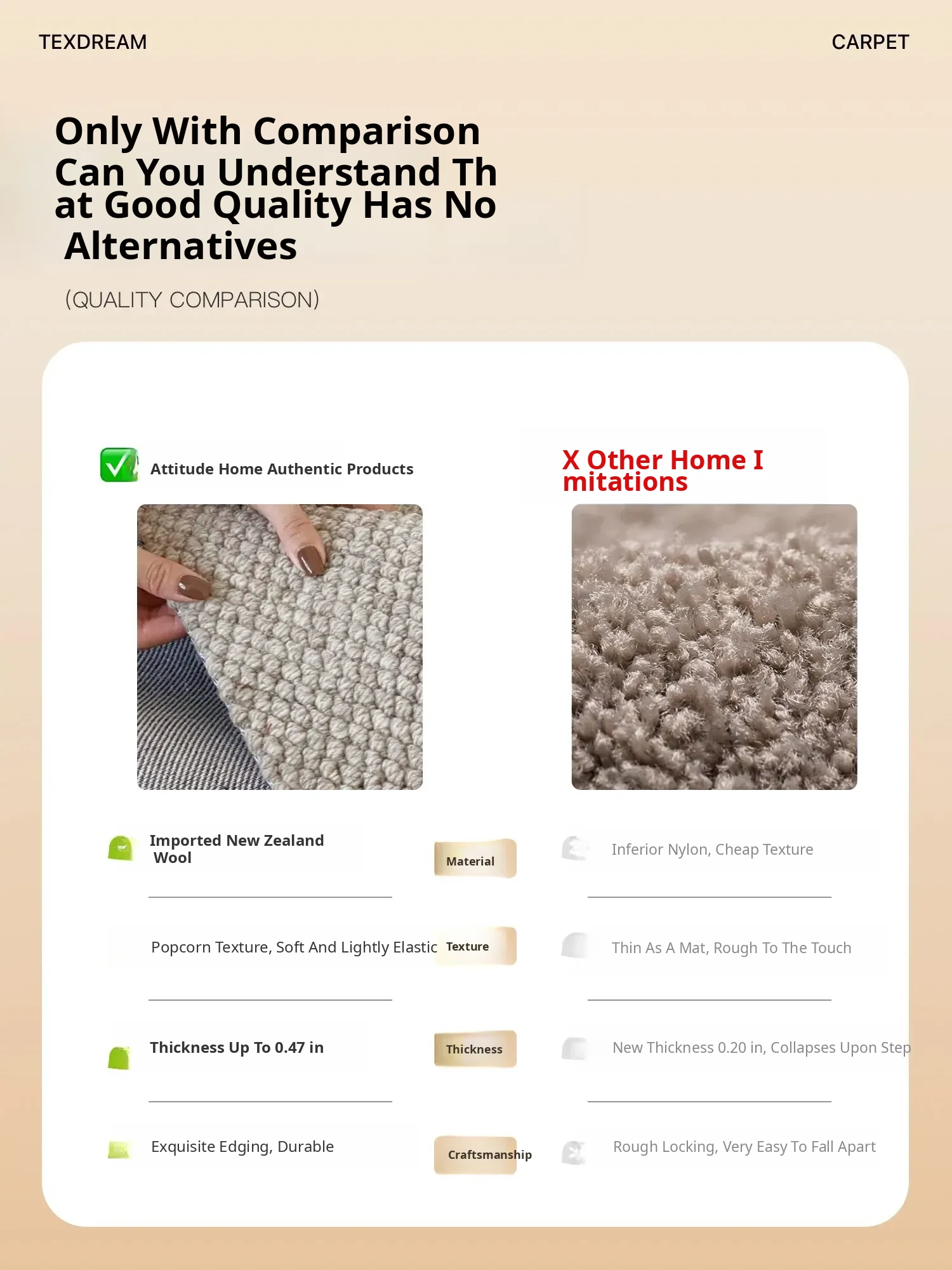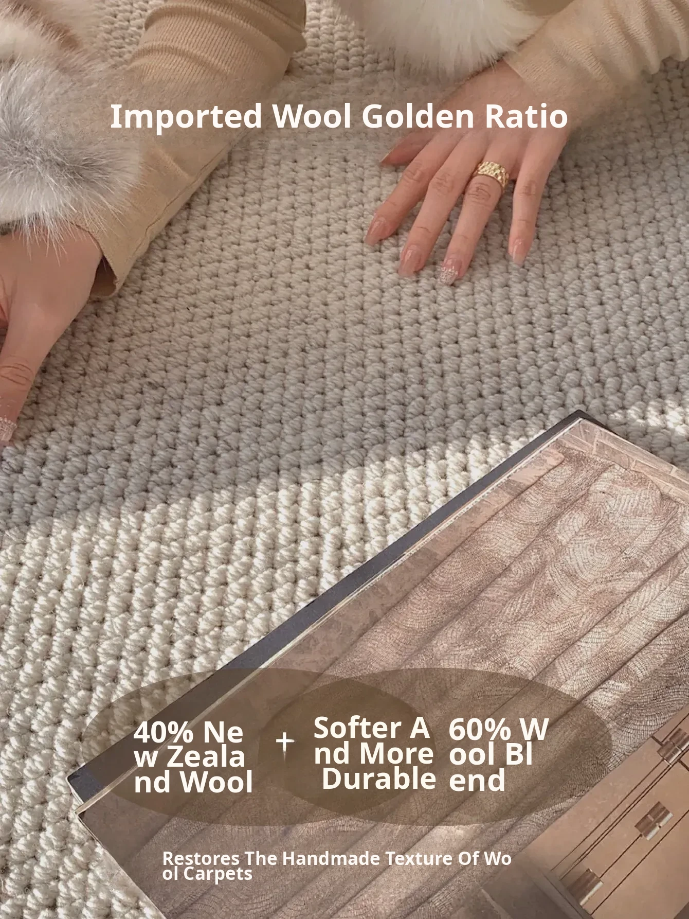 Texdream Attitude Minimalist Imported Wool Rug - Wabi-Sabi Style, Perfect for Living Room and Bedroom, Durable and Luxurious Feel