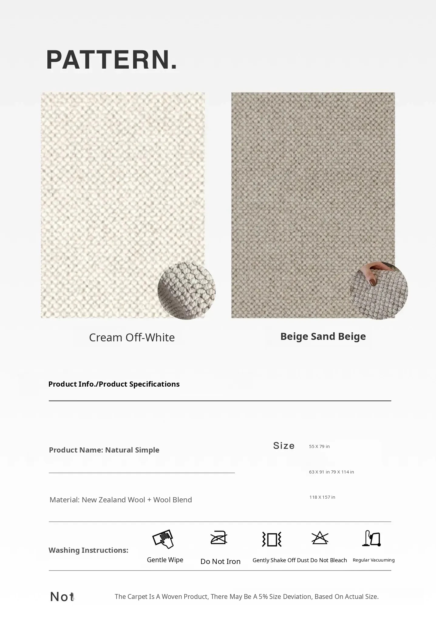 [Plain-Off-White| New Zealand Wool Natural Color Rug