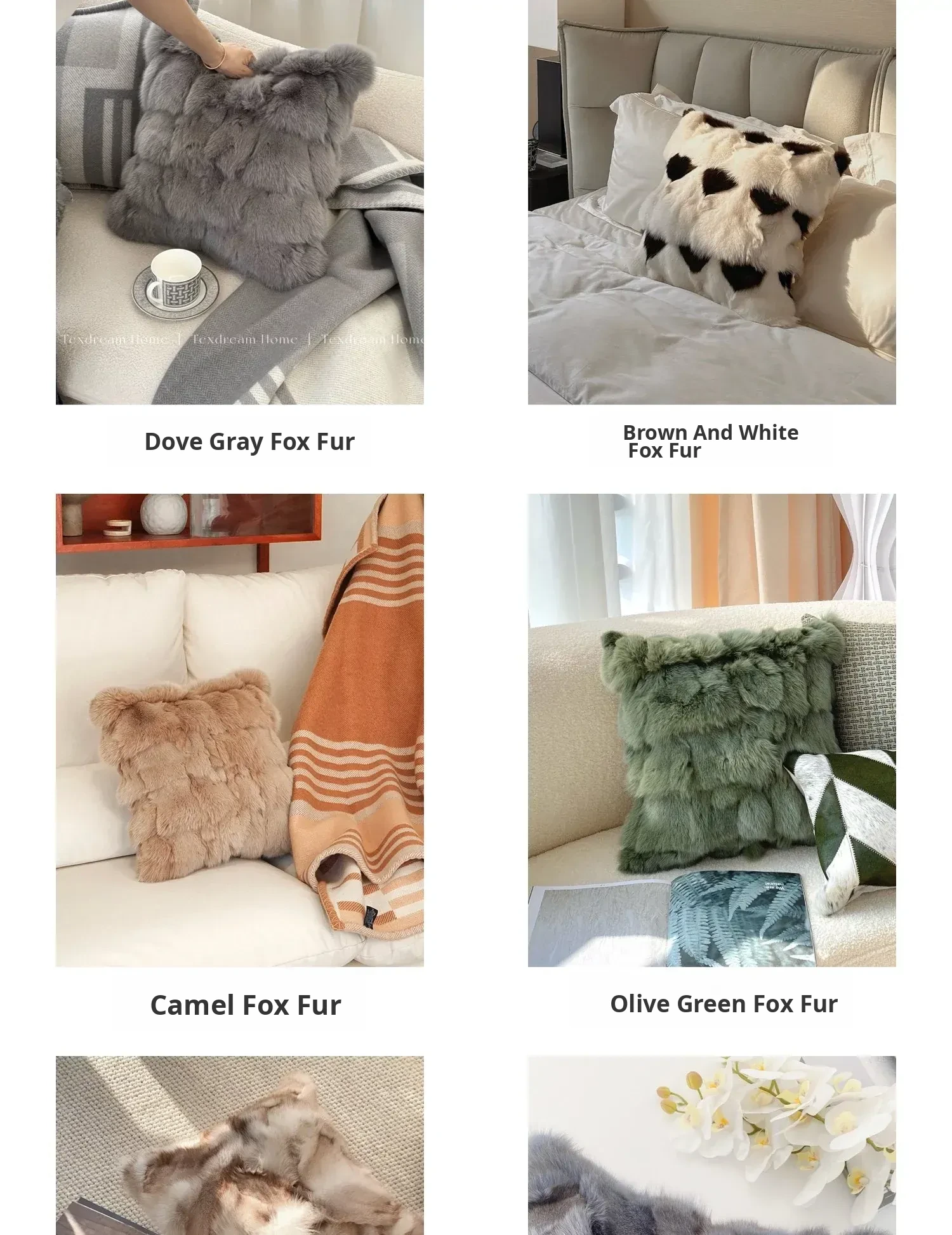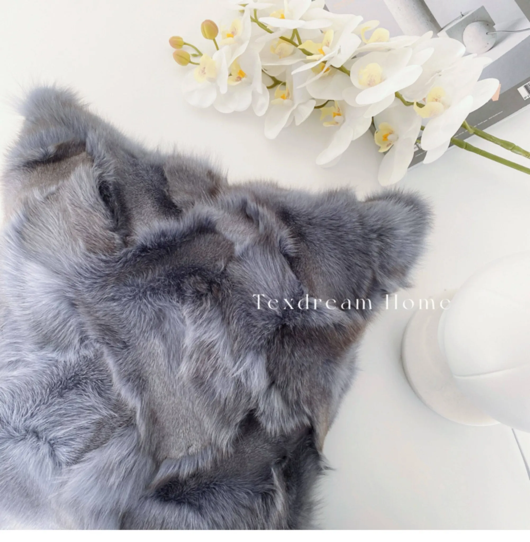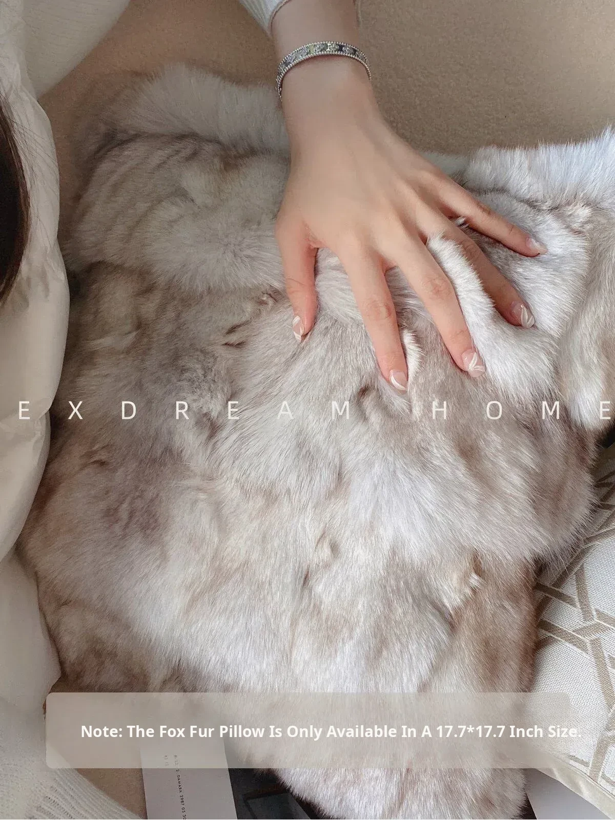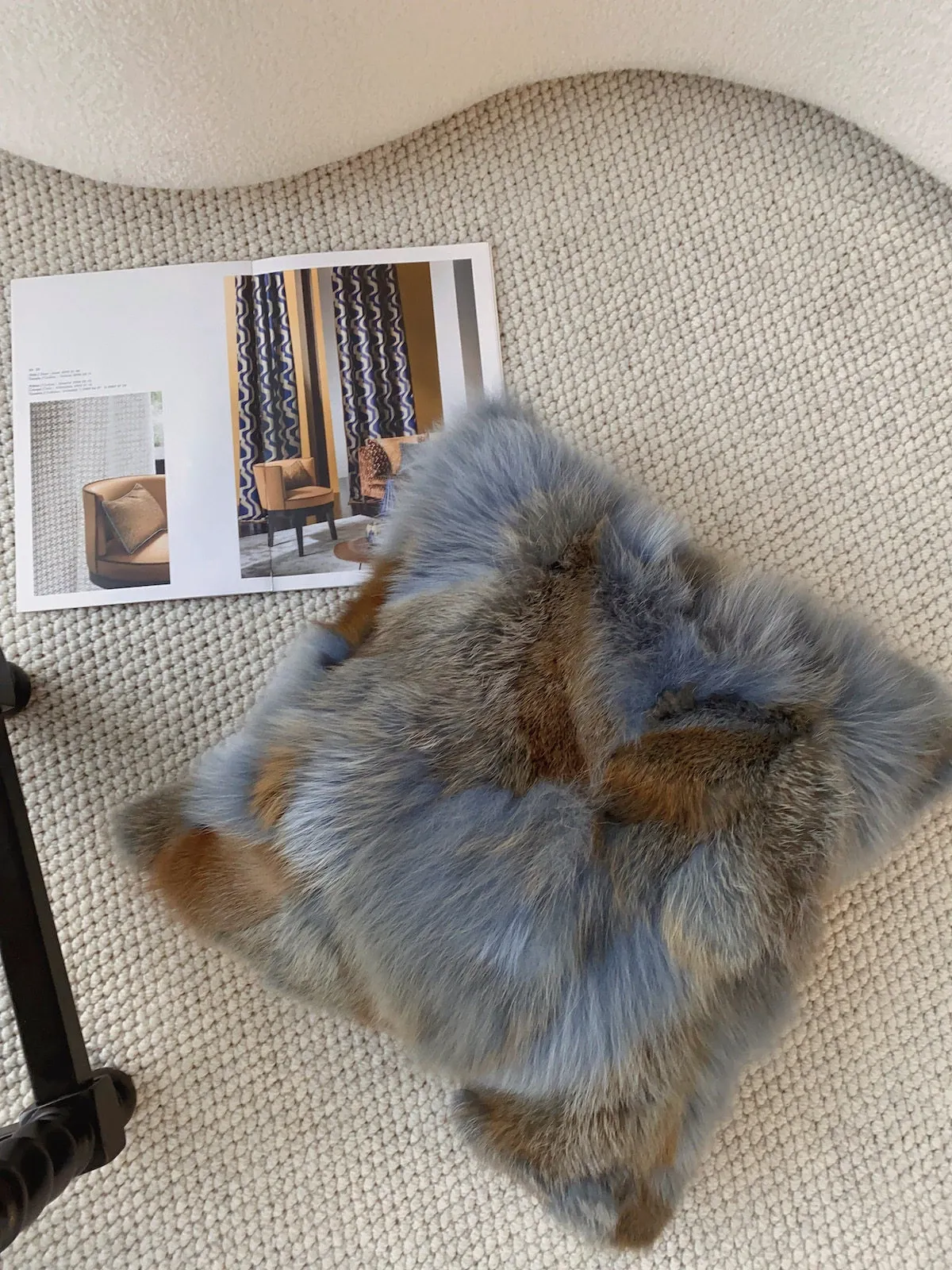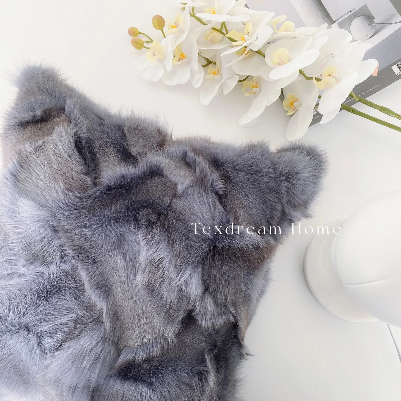 Texdream Attitude Modern Luxury Silver Blue Fox Fur Throw Pillow with Insert - Stylish Sofa Cushion for Living Room Décor
