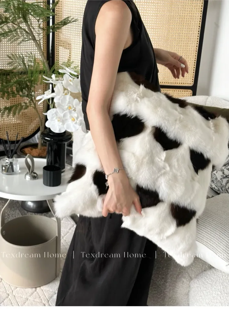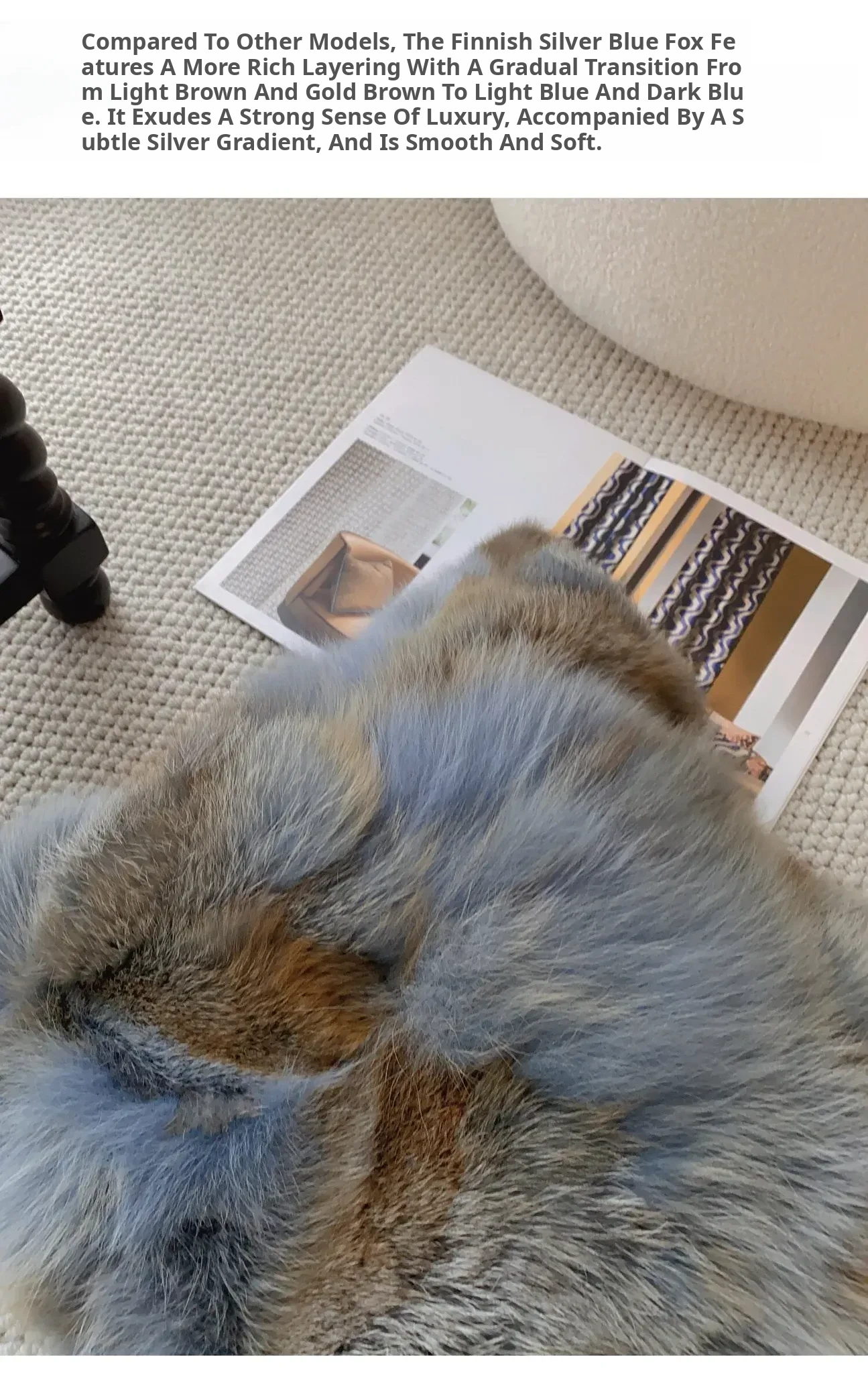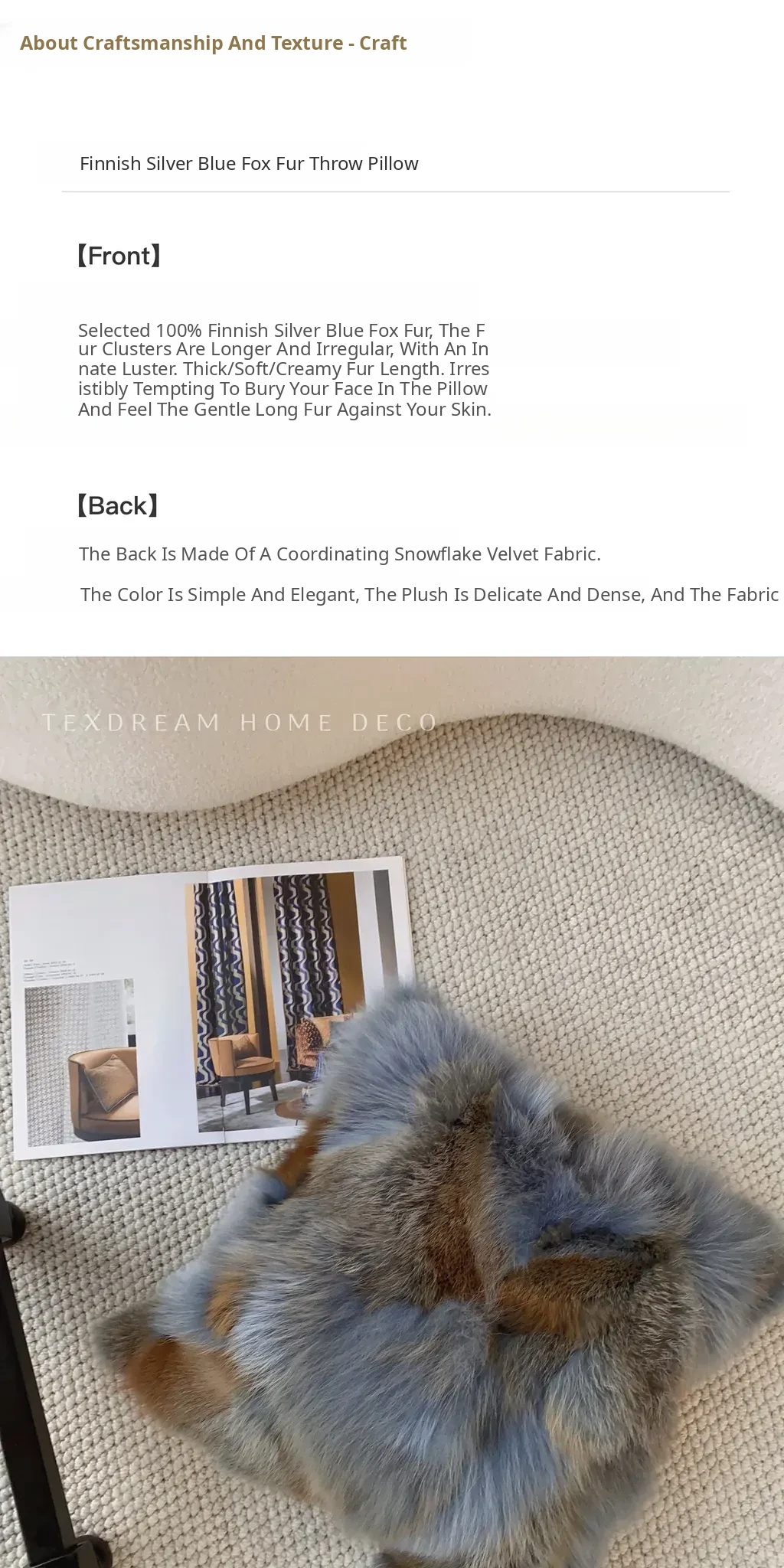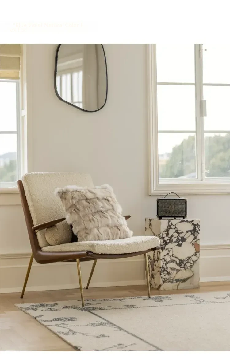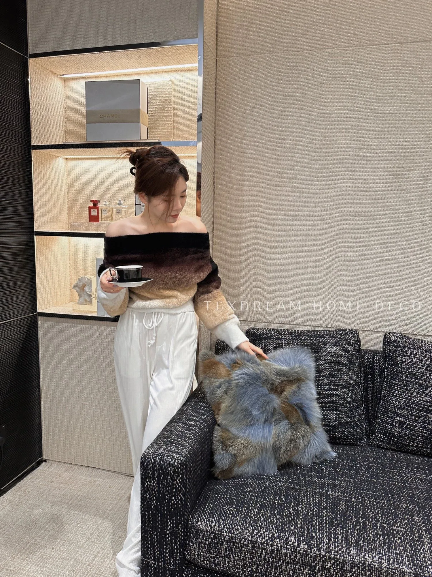 Texdream Attitude Modern Luxury Silver Blue Fox Fur Throw Pillow with Insert - Stylish Sofa Cushion for Living Room Décor