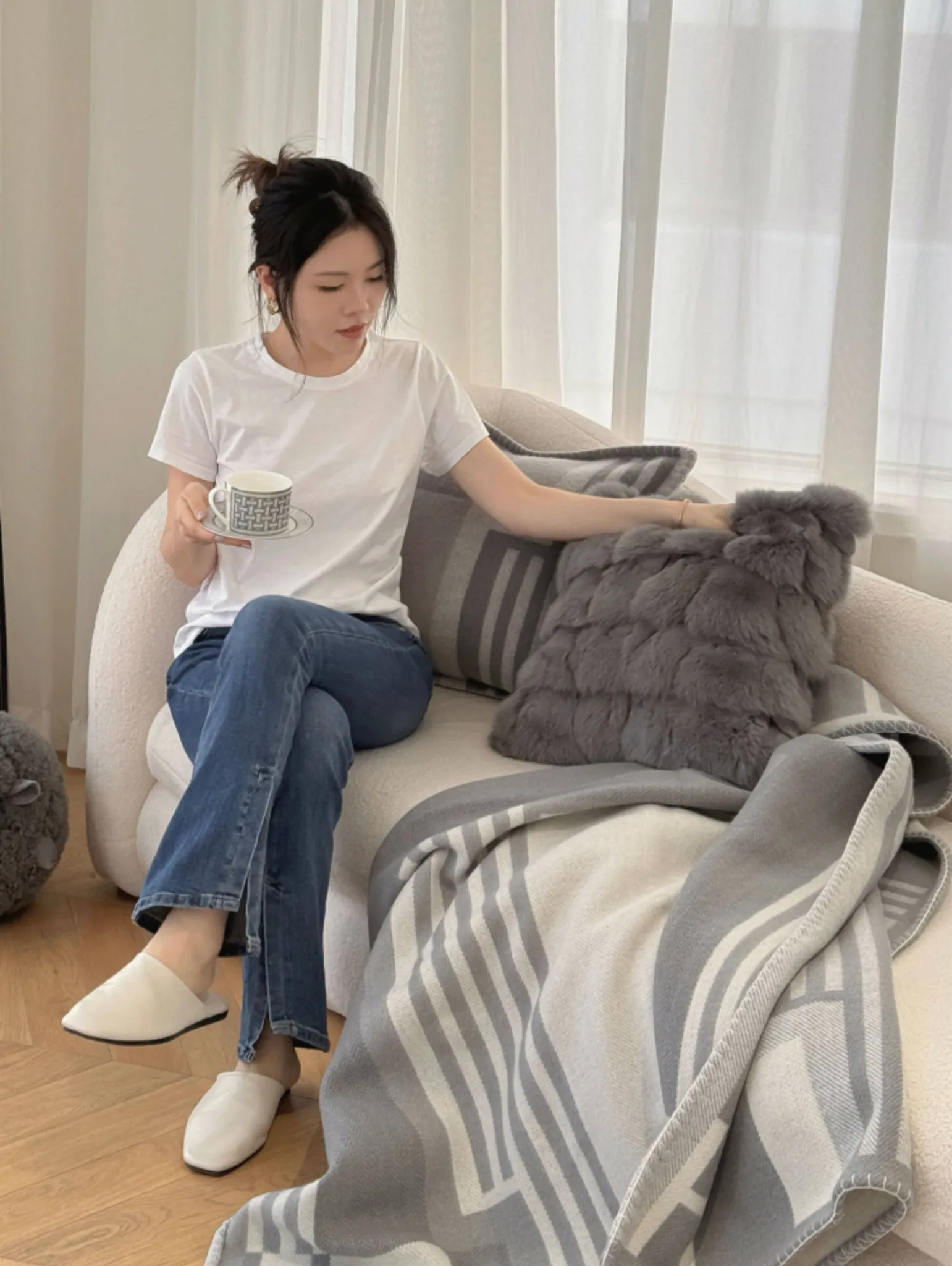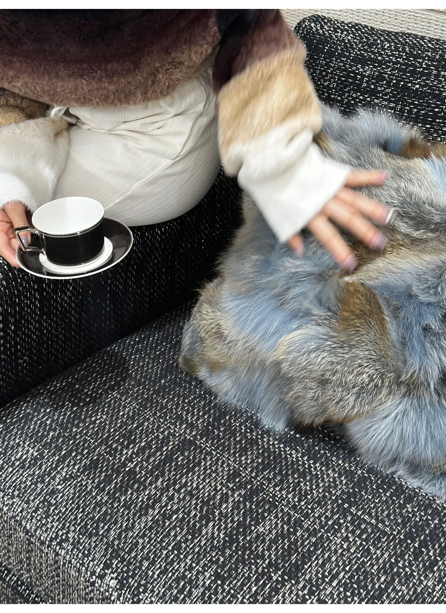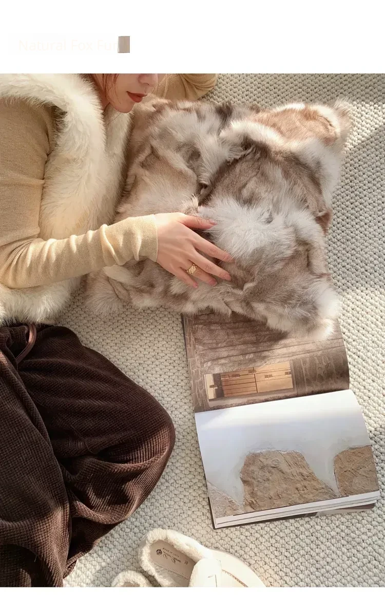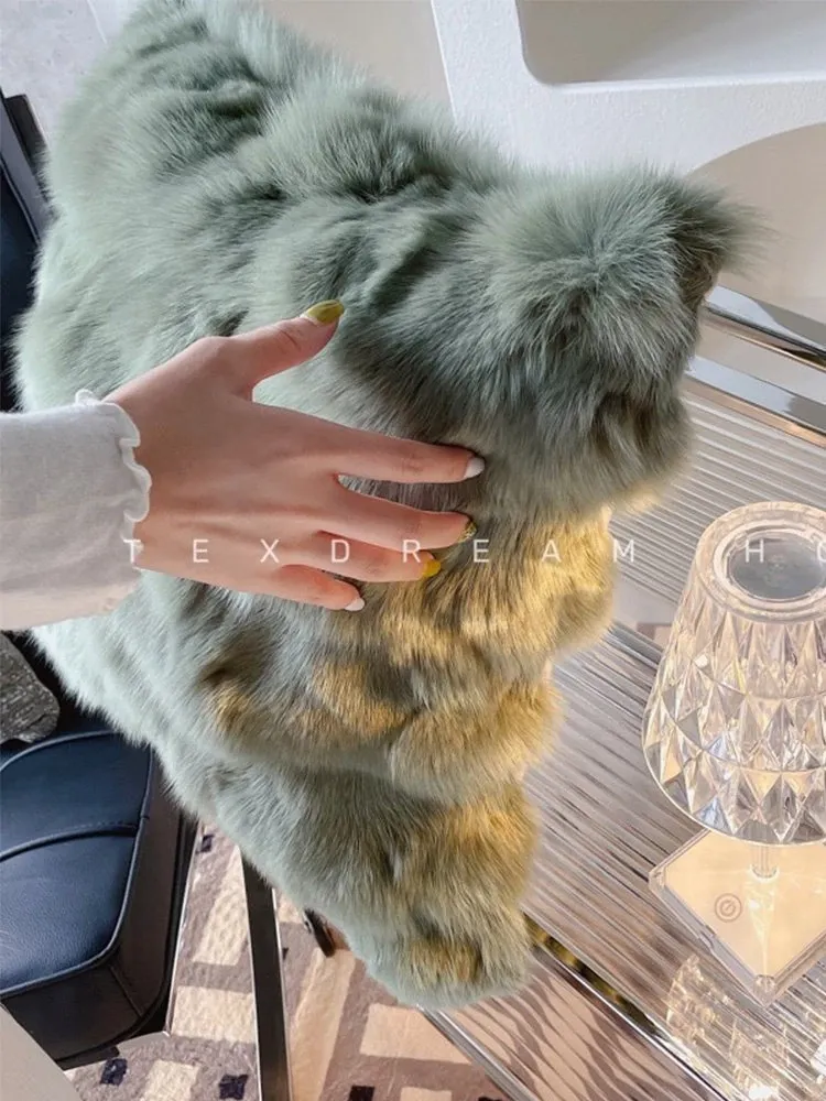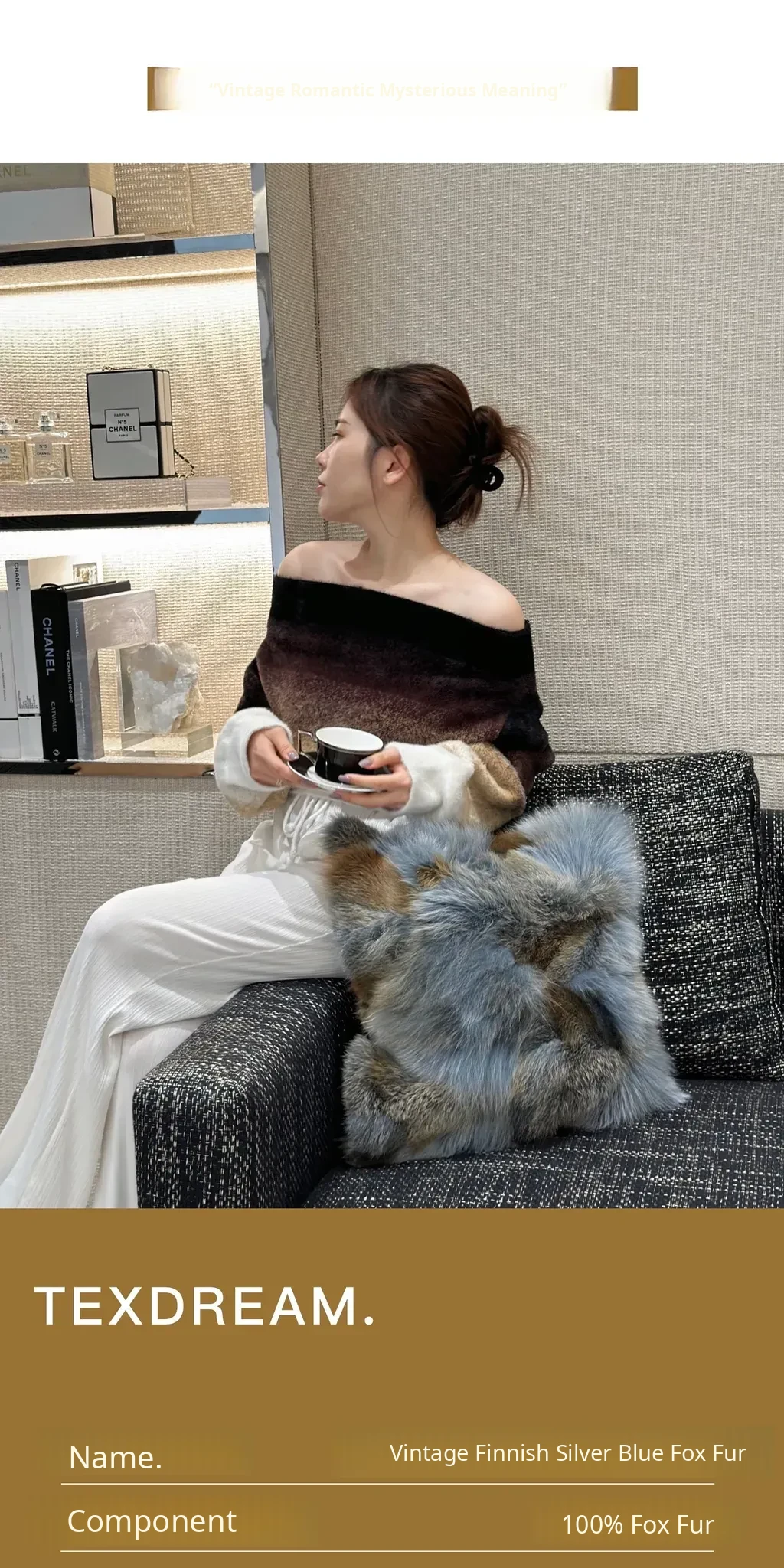 Texdream Attitude Modern Luxury Silver Blue Fox Fur Throw Pillow with Insert - Stylish Sofa Cushion for Living Room Décor