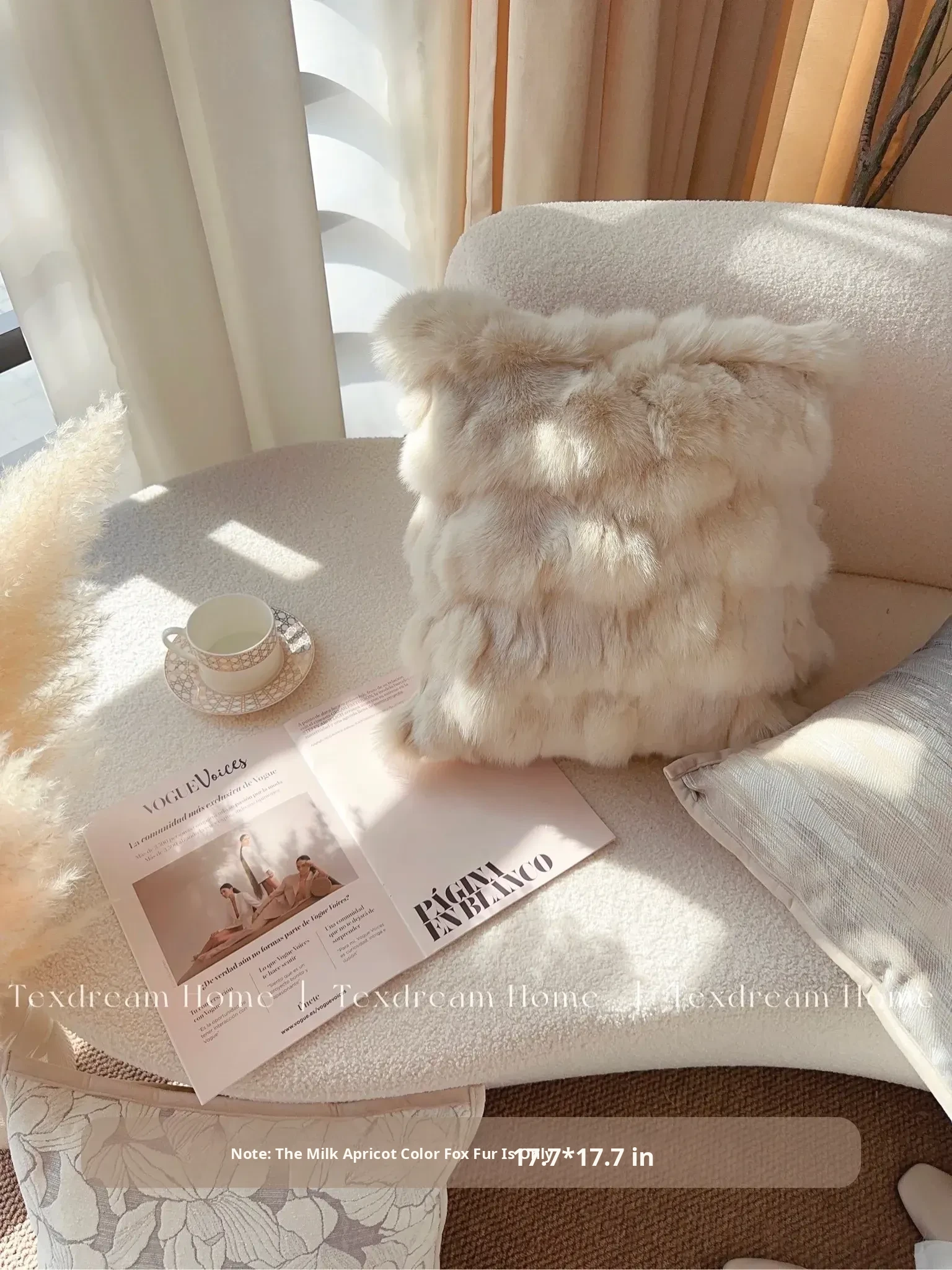 [17.72in*17.72in Milk Apricot Fox Fur]