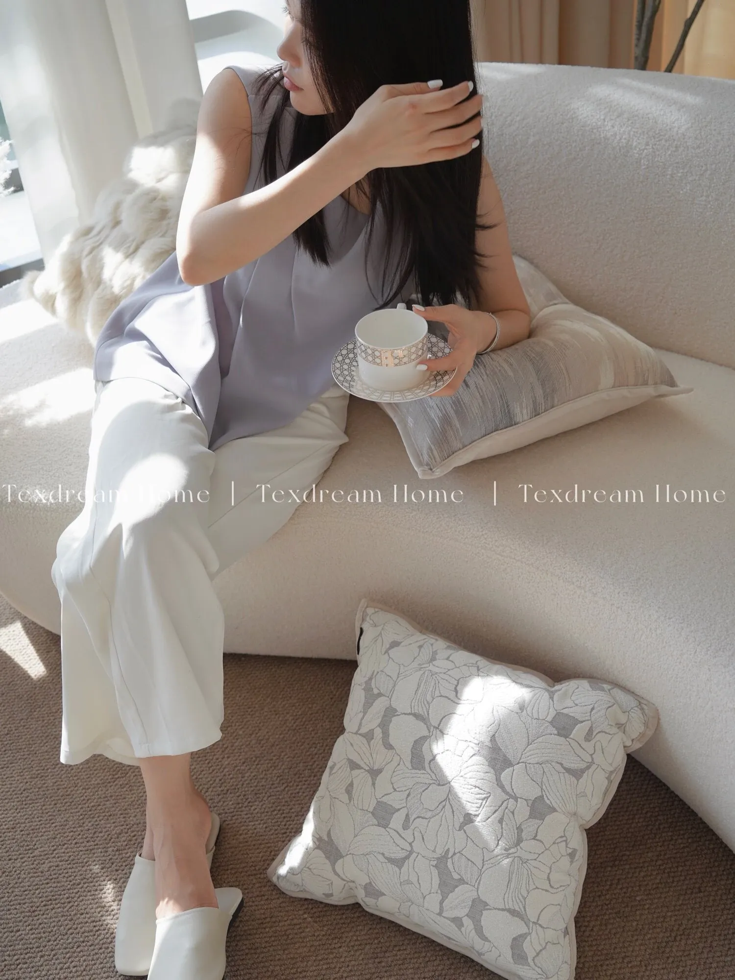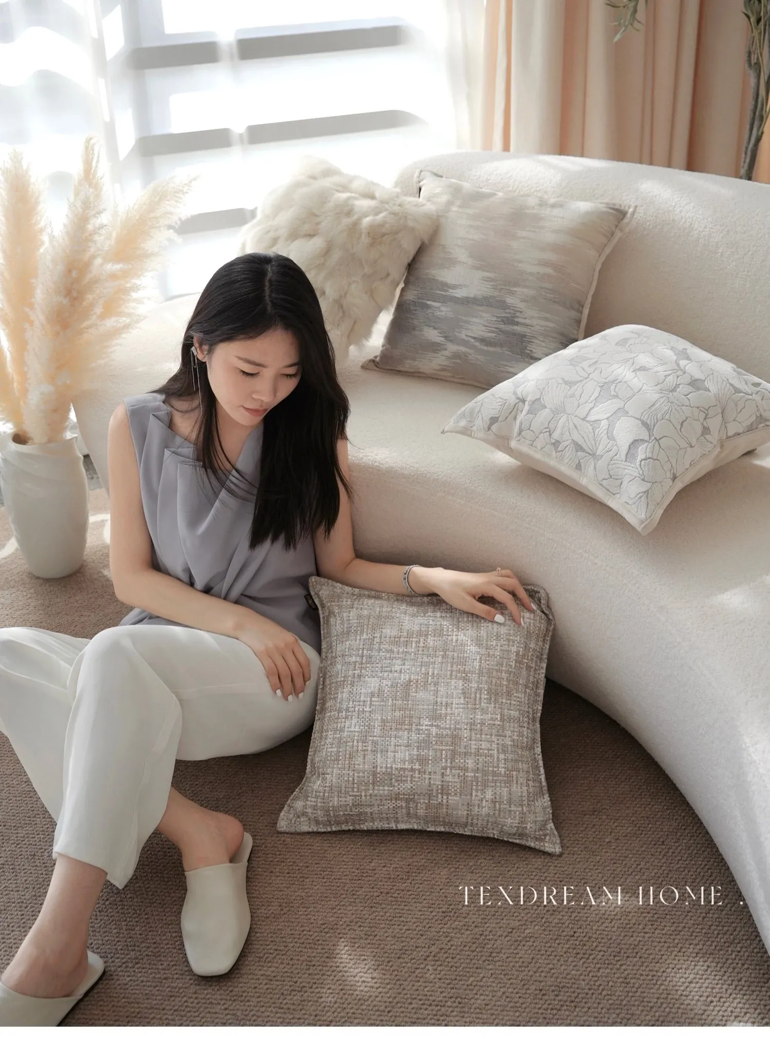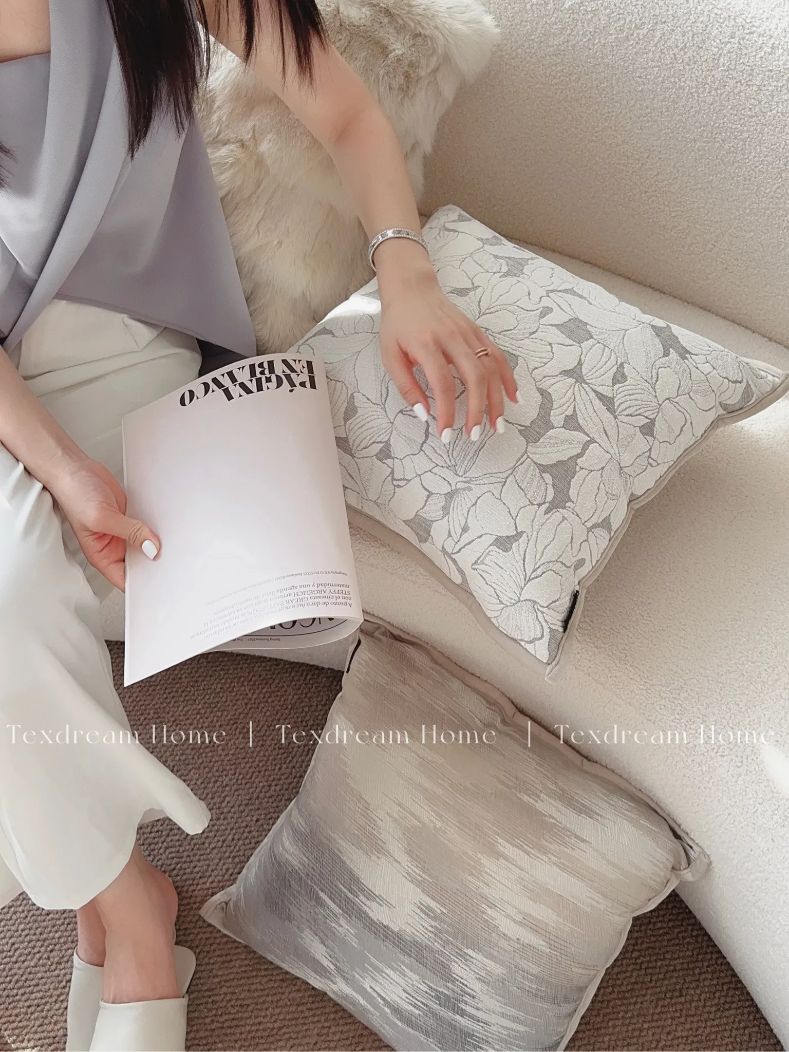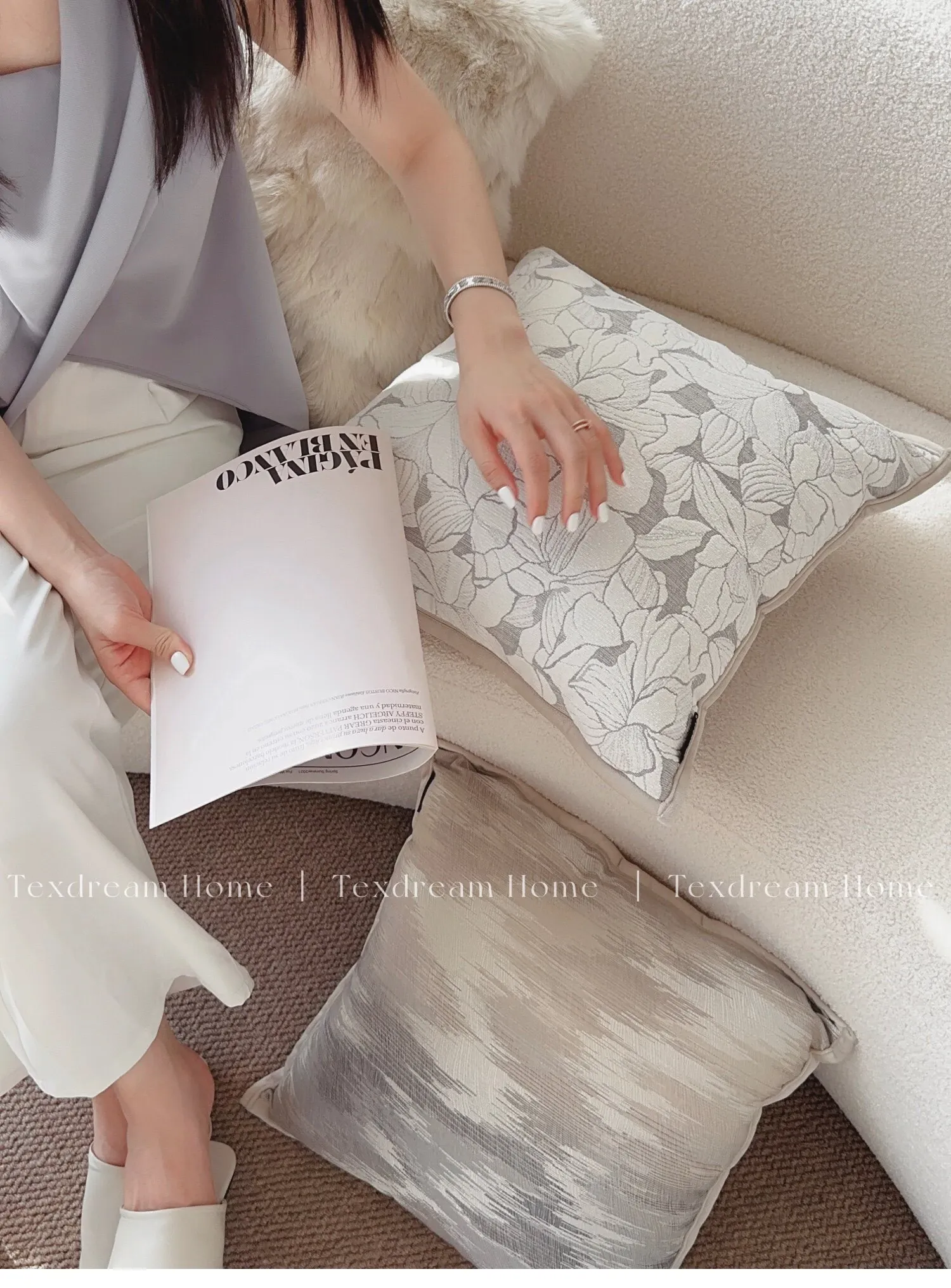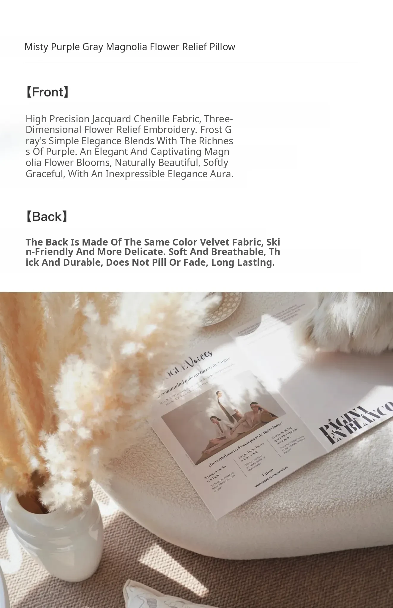 Magnolia Embossed Throw Pillow| Mist Purple Gray】