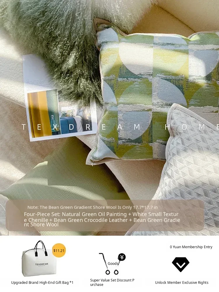 Square Pillow 17.72in*17.72in [Pillowcase + Feather Silk Cotton Pillow Core]