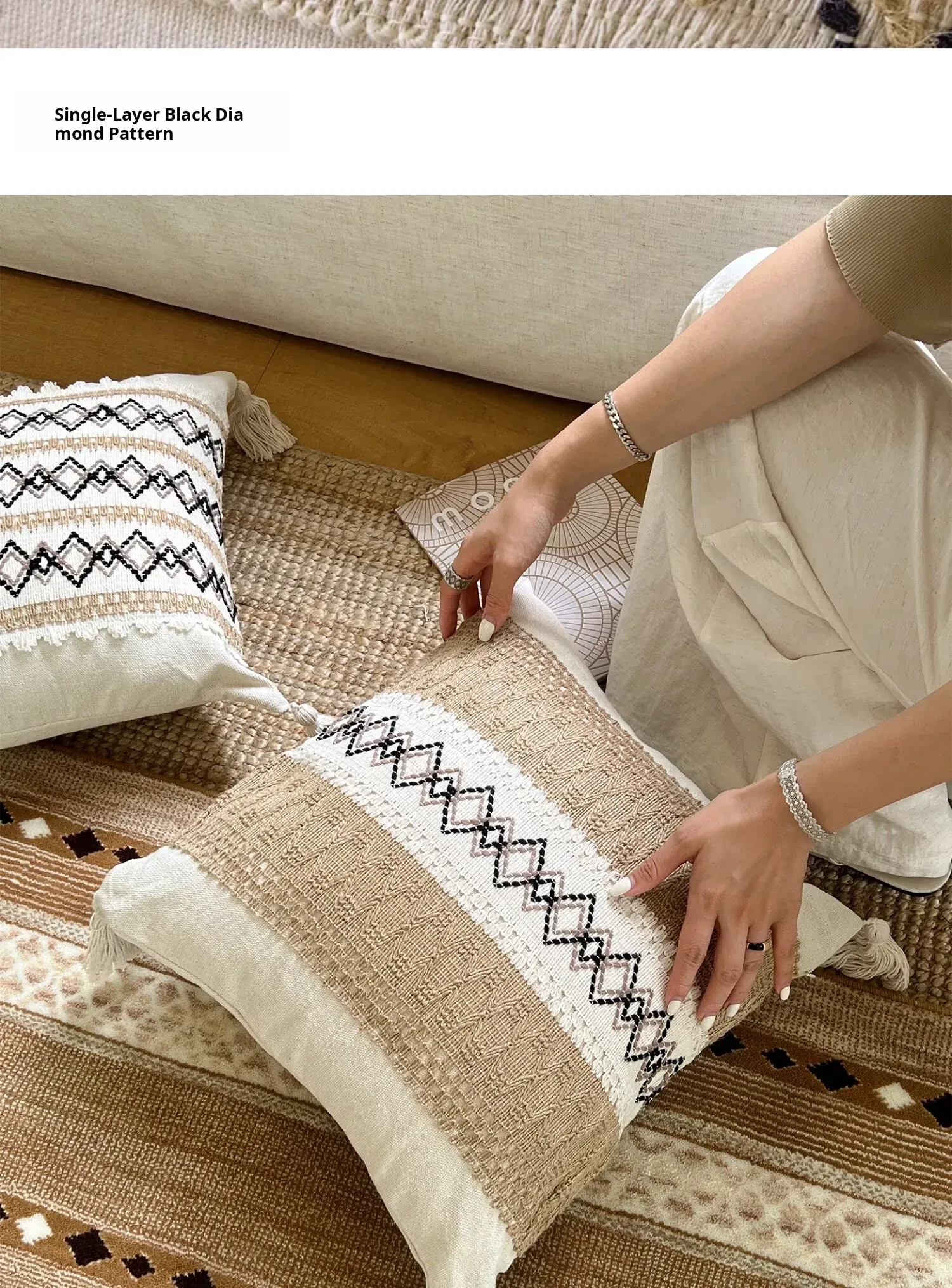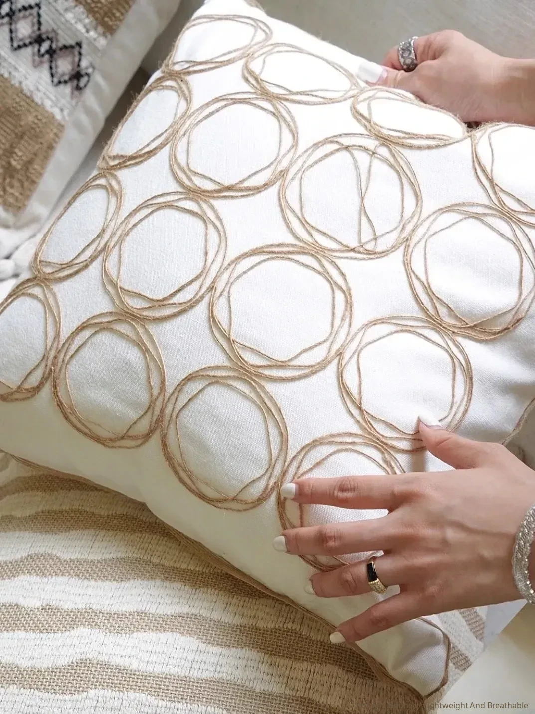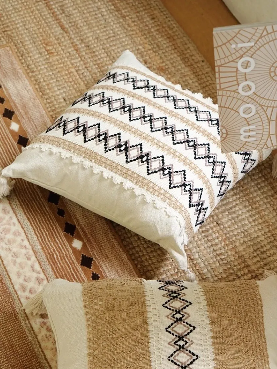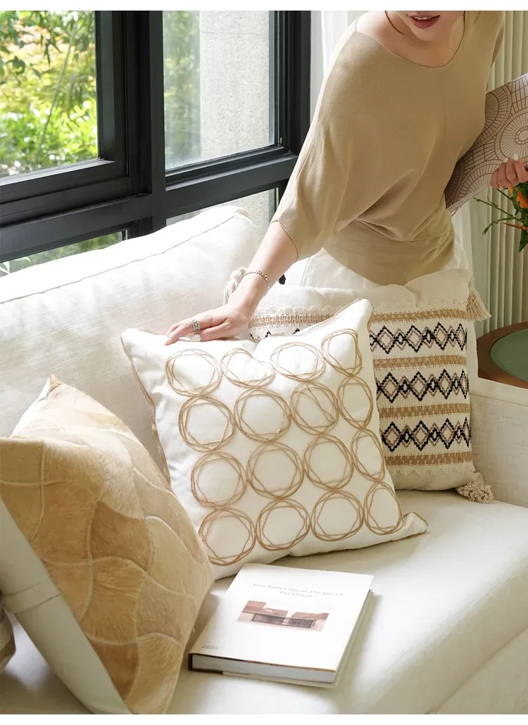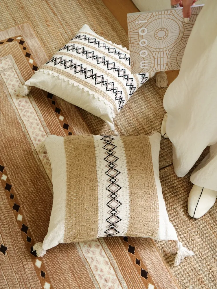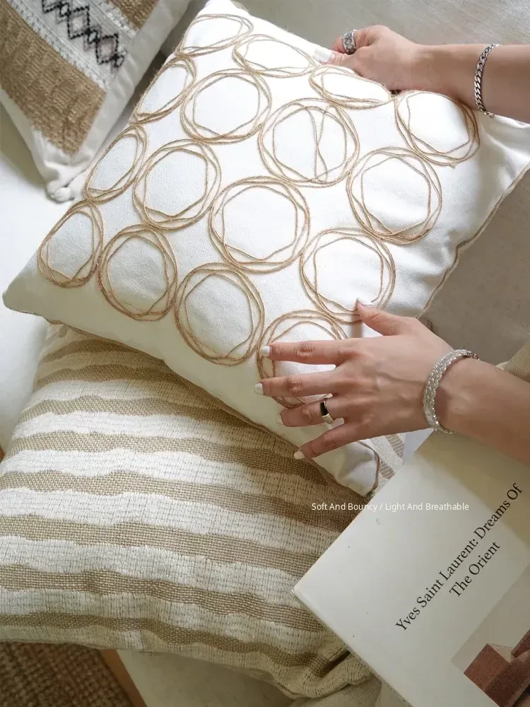 [Cotton and Linen Ring Woven Pillow]