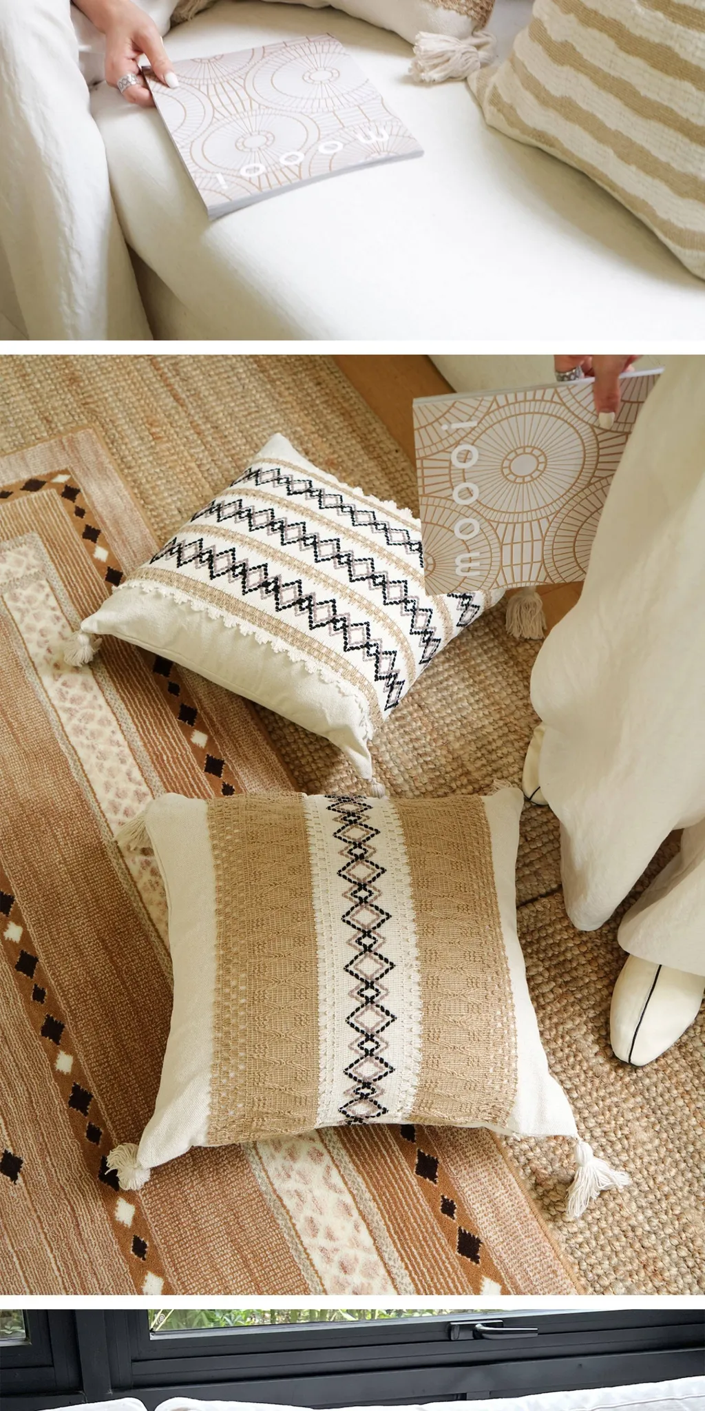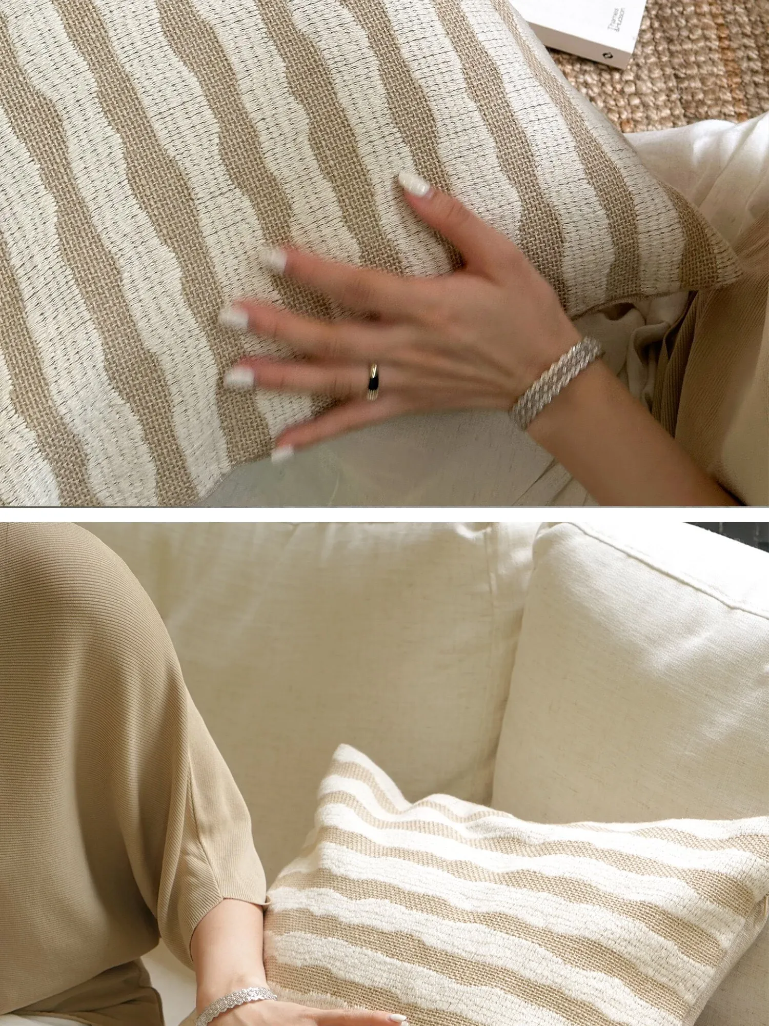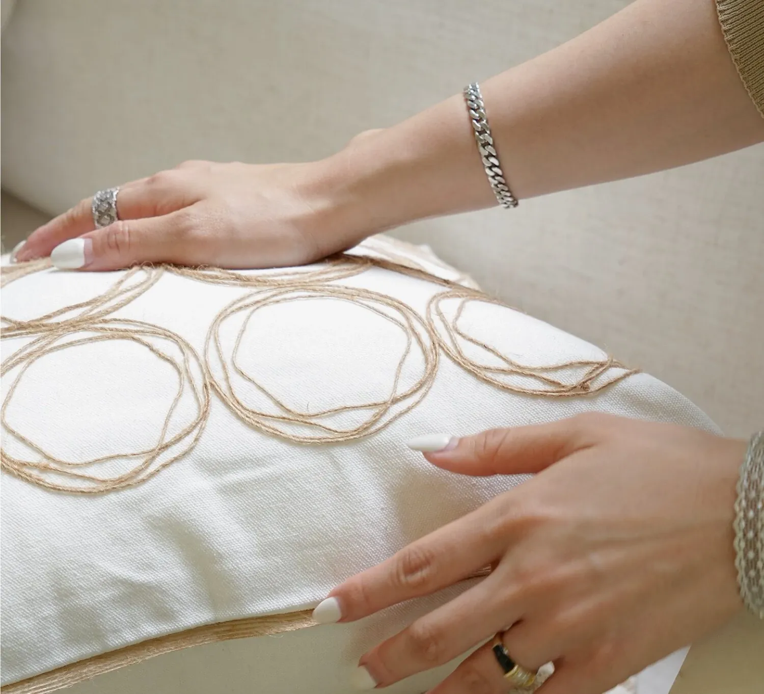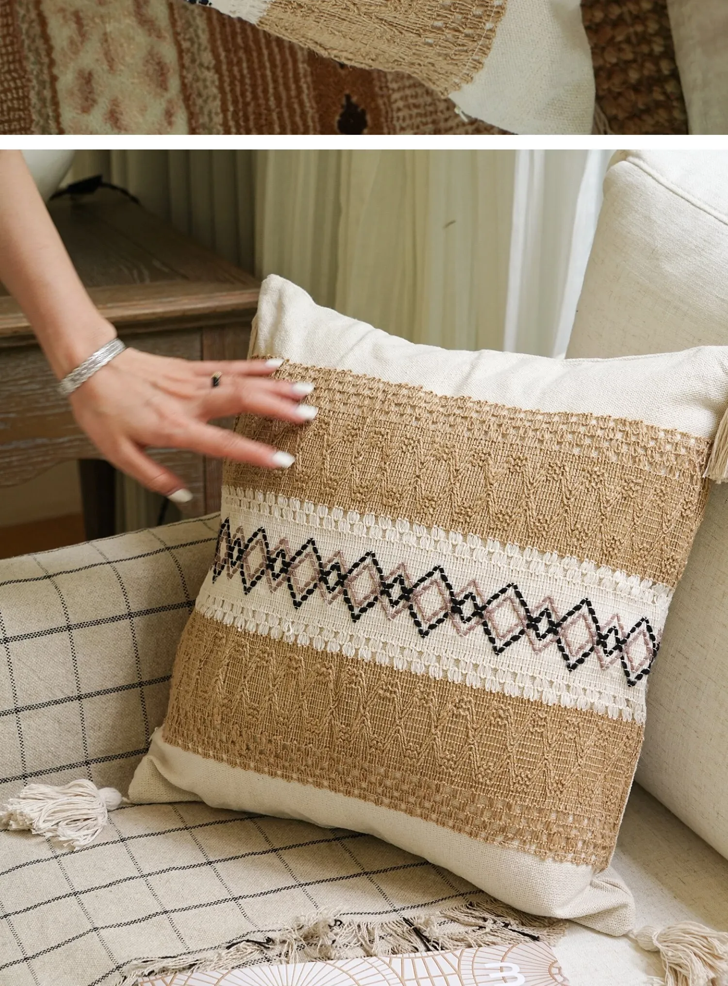 [Cotton and Linen Ring Woven Pillow]