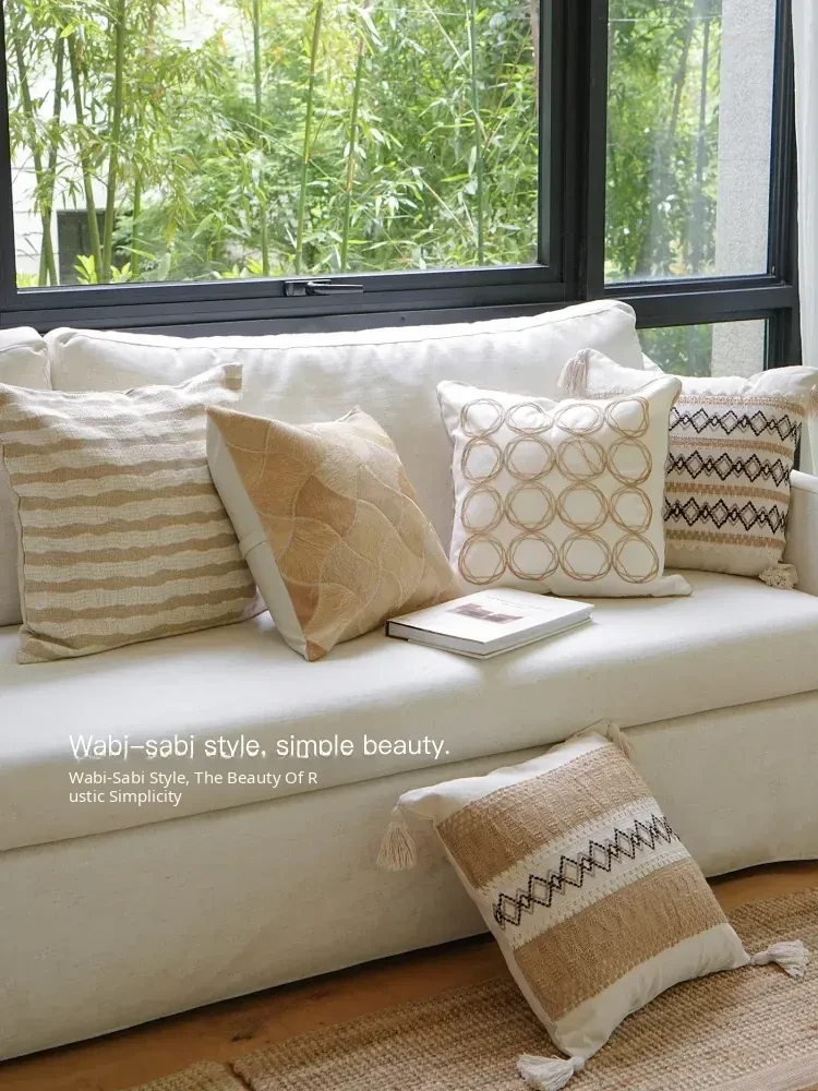Texdream Attitude Natural Cotton Linen Series Sofa Throw Pillow - Scandinavian Modern Minimalist Living Room INS Cushion