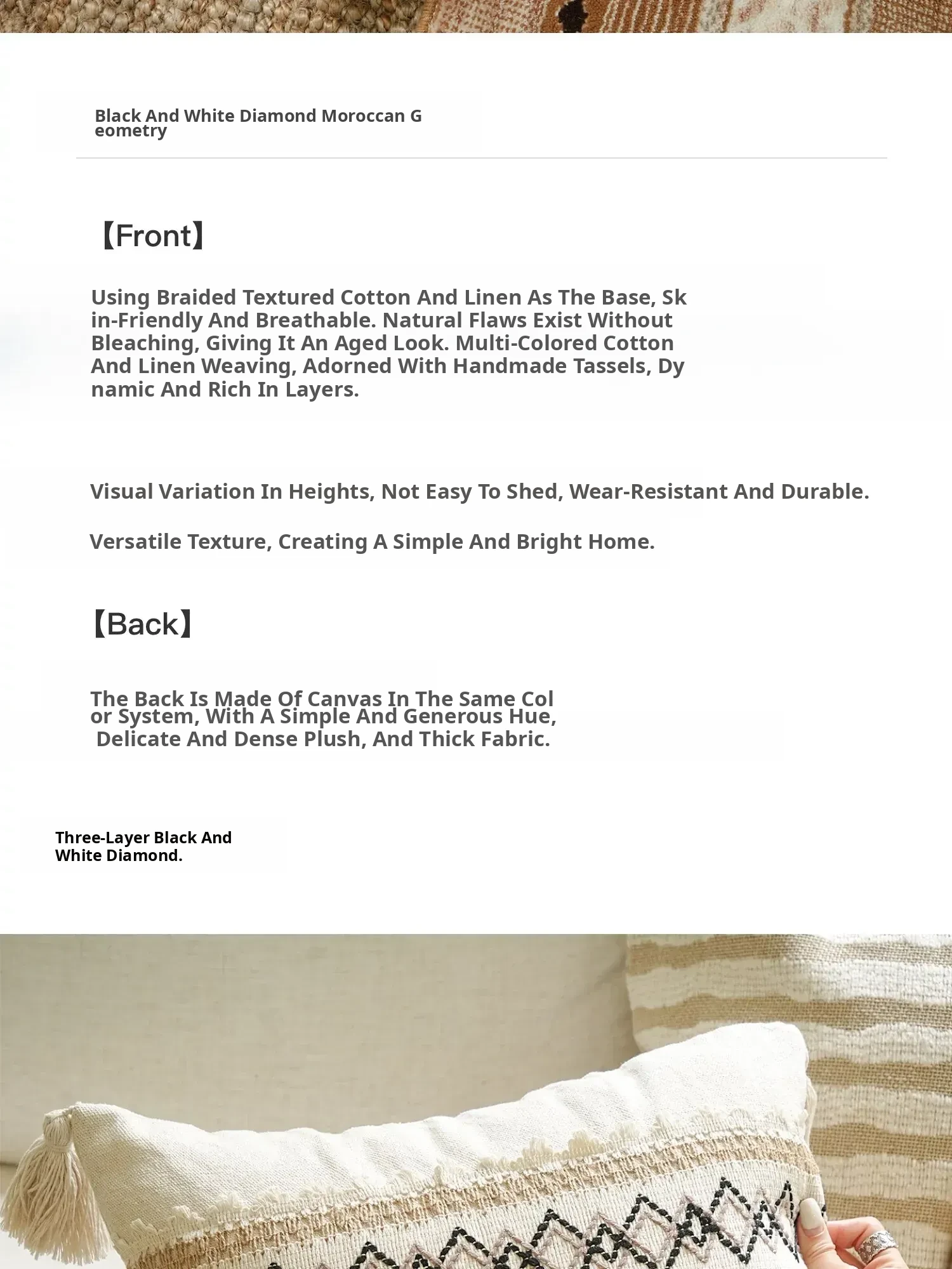 [Cotton and Linen White Diamond-Shaped Pillow]