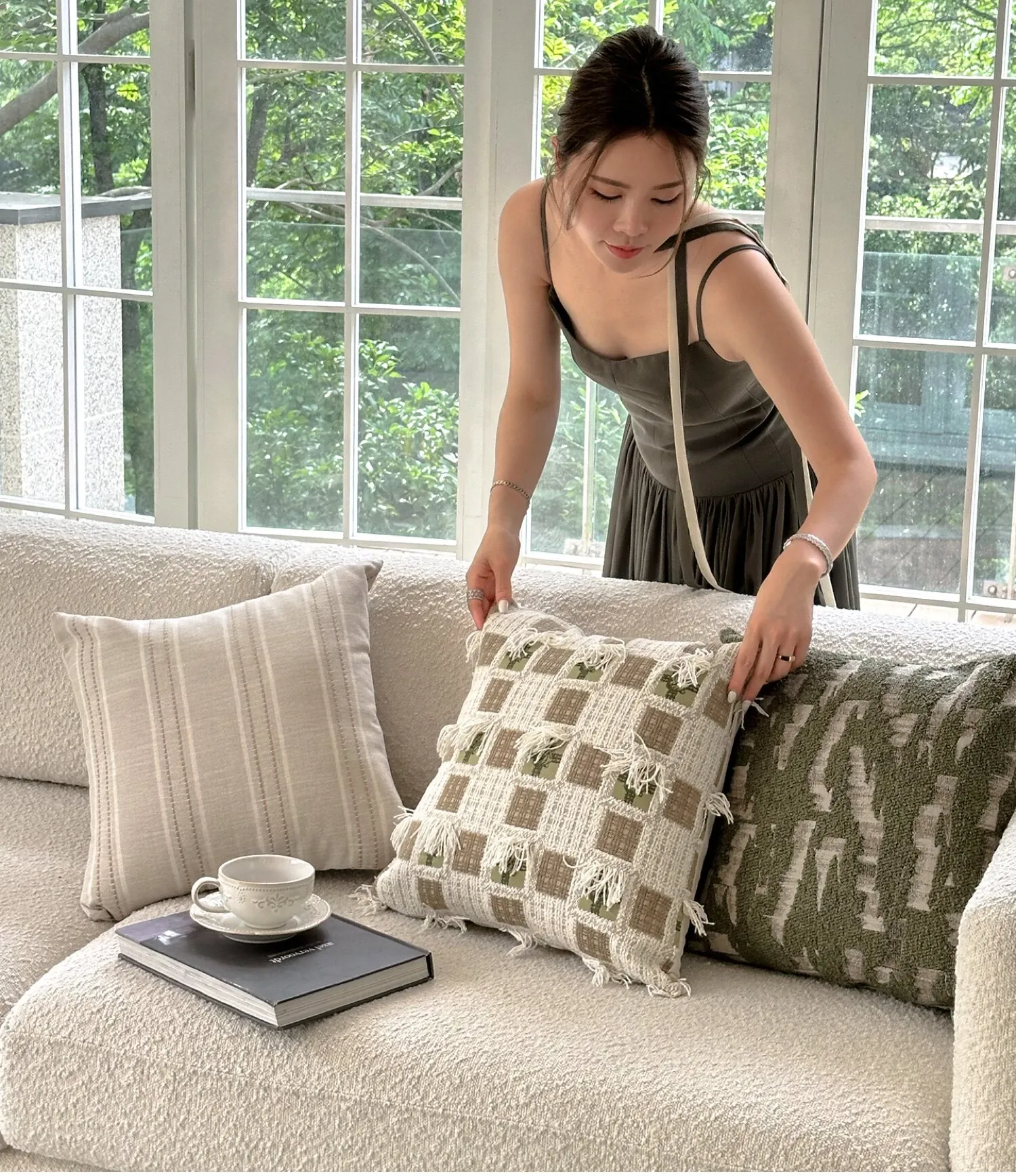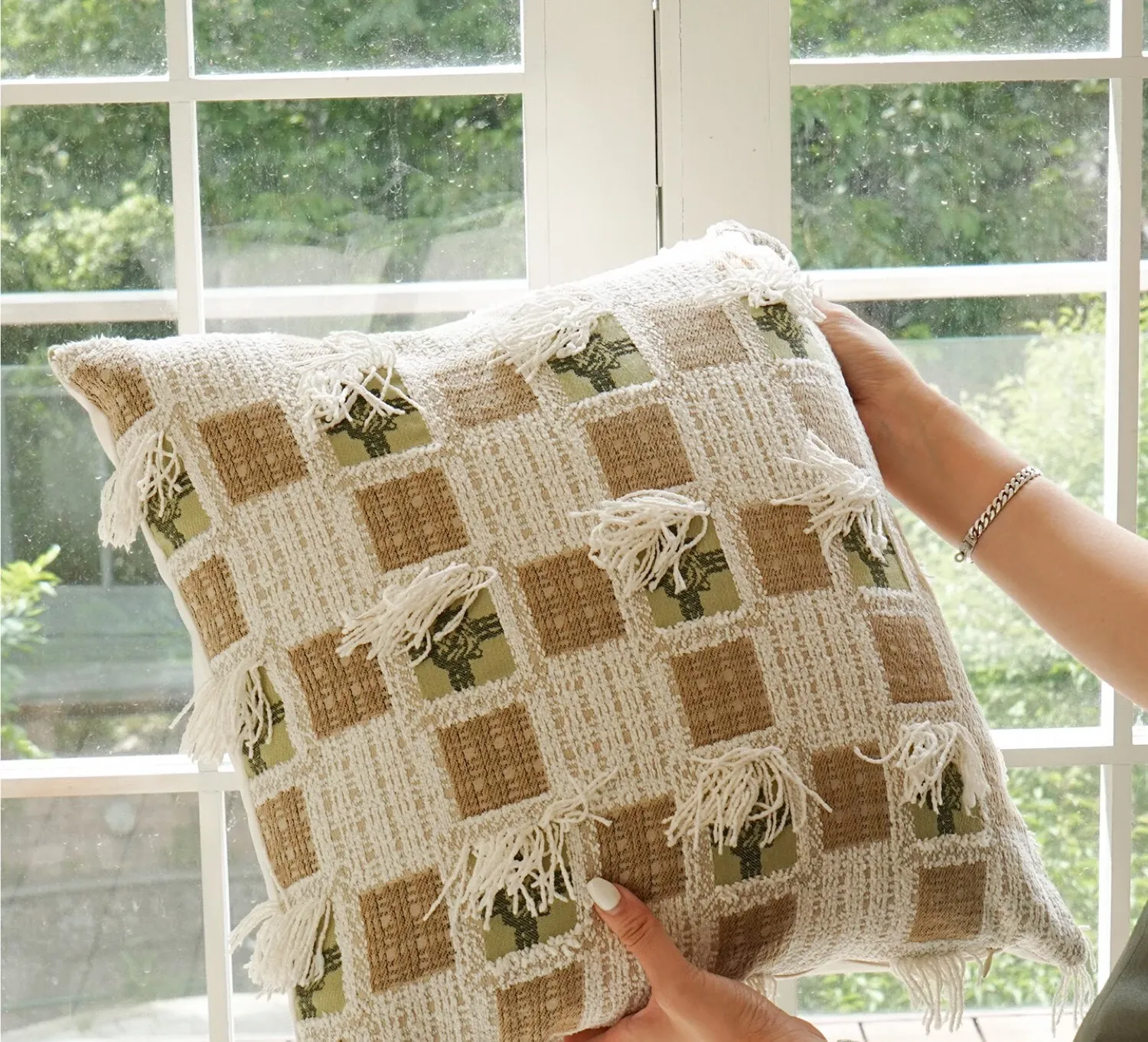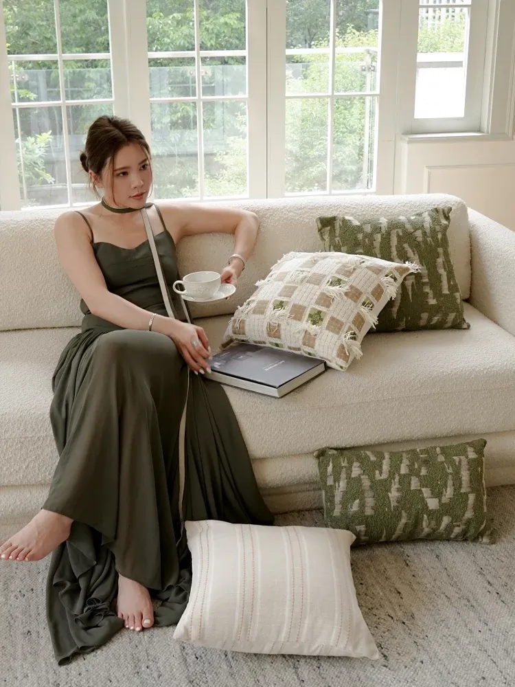TEXDREAM Attitude Natural Green Throw Pillow - French Style Fresh Living Room Sofa Cushion, Cozy Bed Lumbar Support Pillow for Ultimate Comfort