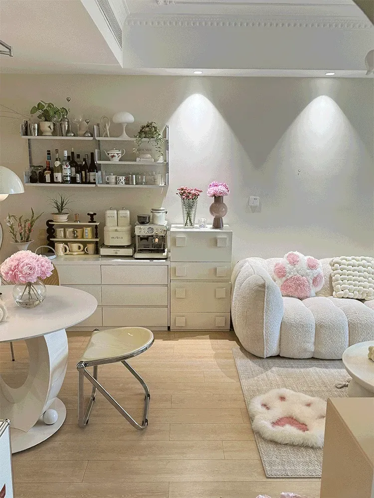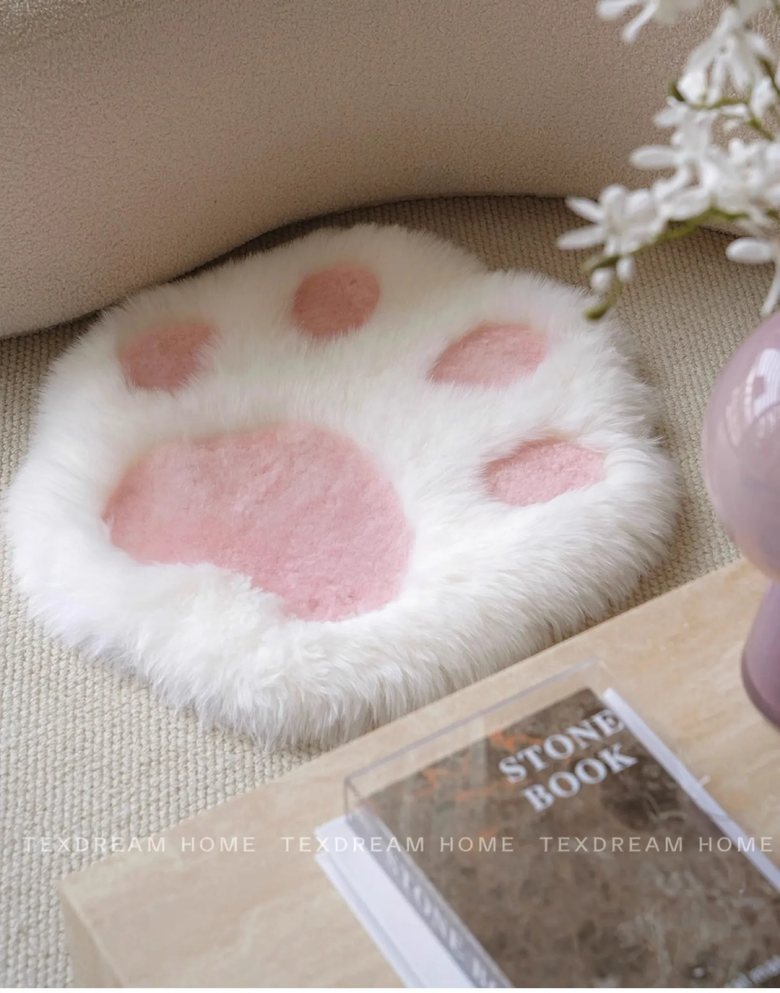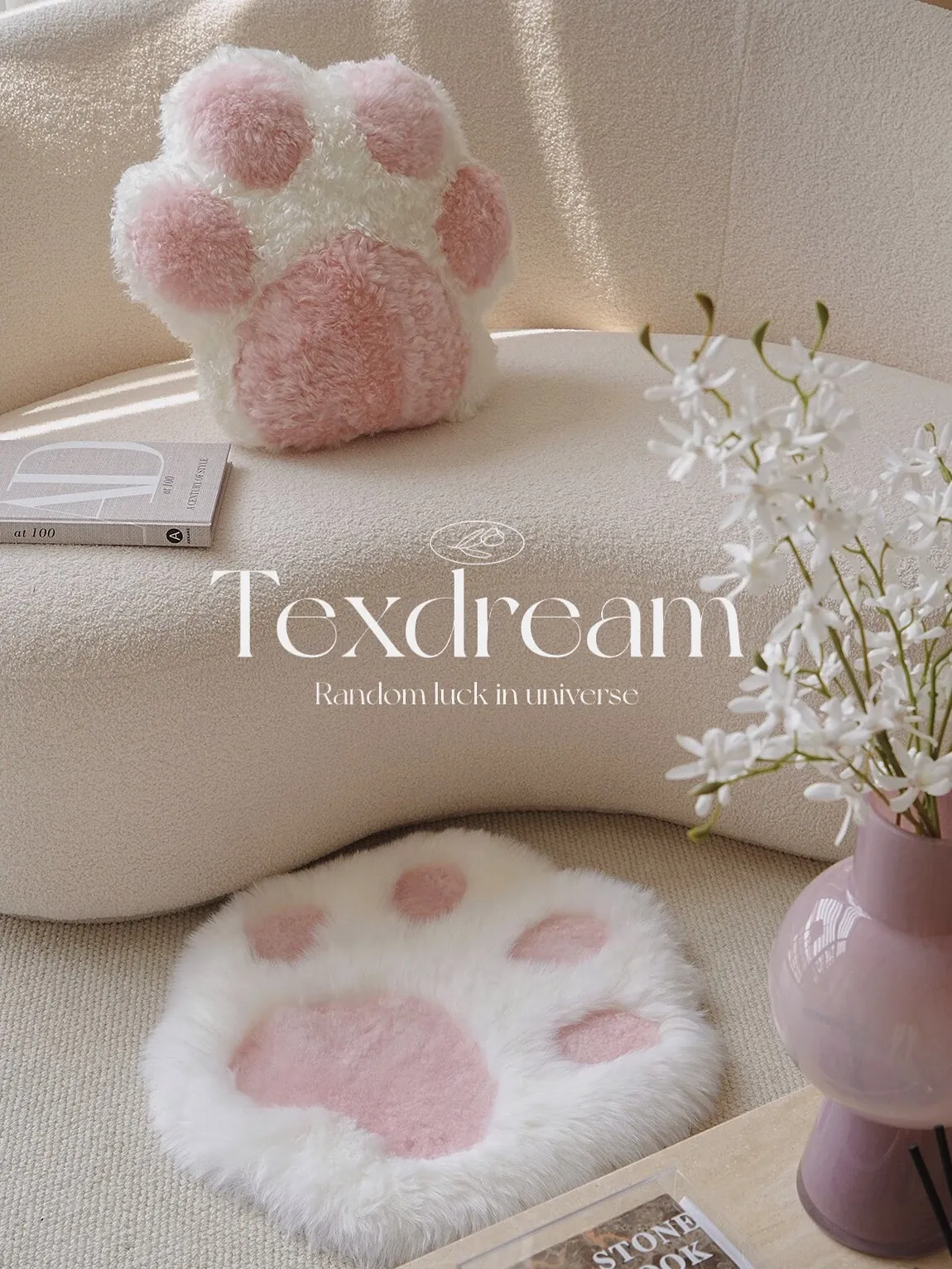 [Pink and white Meow claw 2-piece set | Pillow + floor mat]]