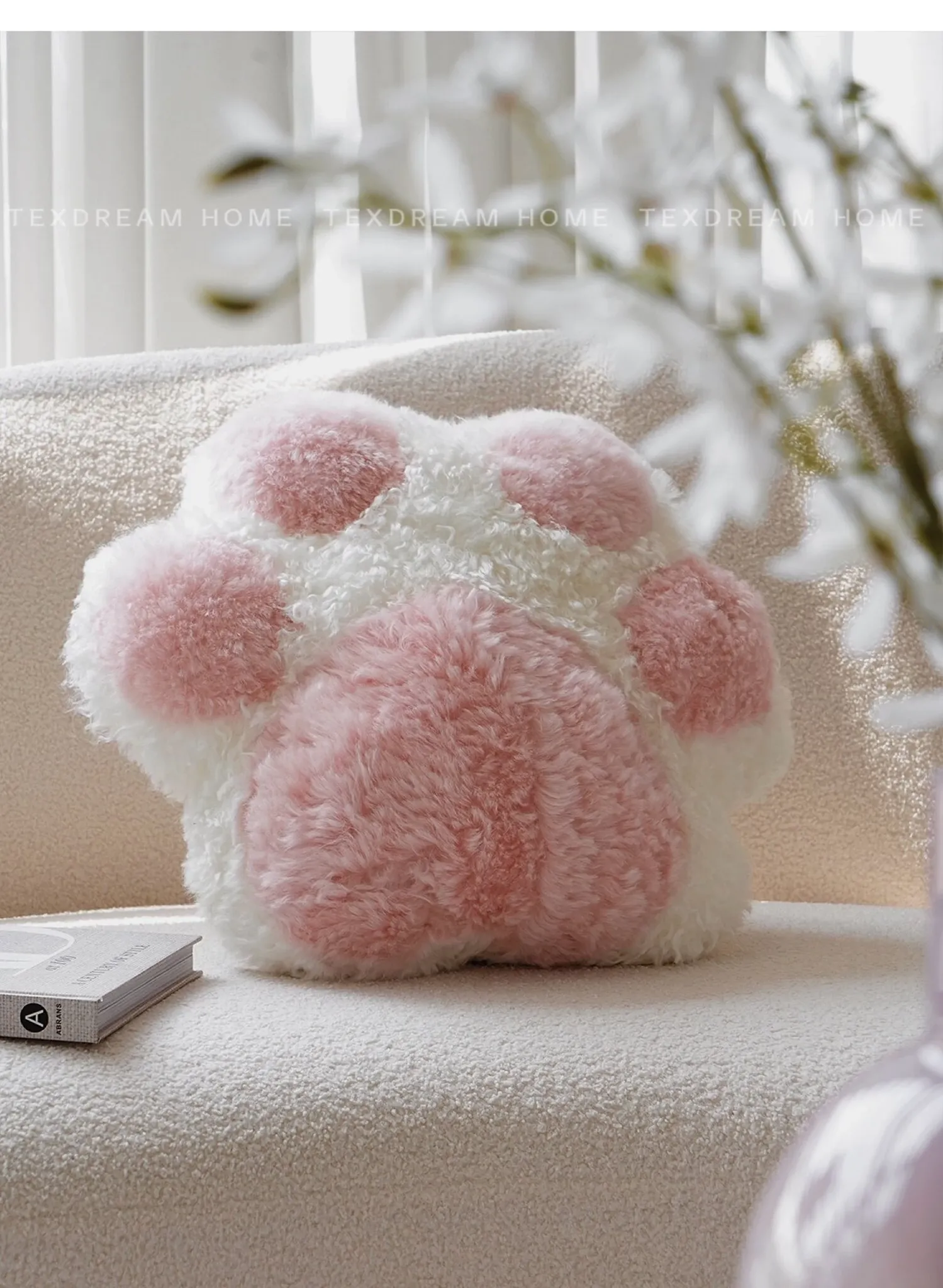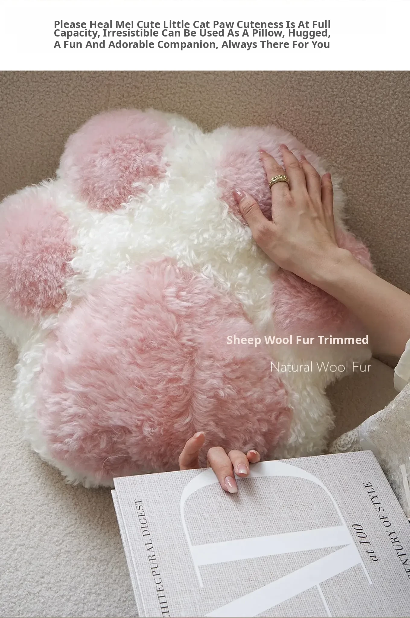 Texdream Attitude Natural Sheepskin Cat Paw Cushion - Plush Throw Pillow for Sofa and Kids' Room, Adorable Decorative Pillow and Seat Cushion.